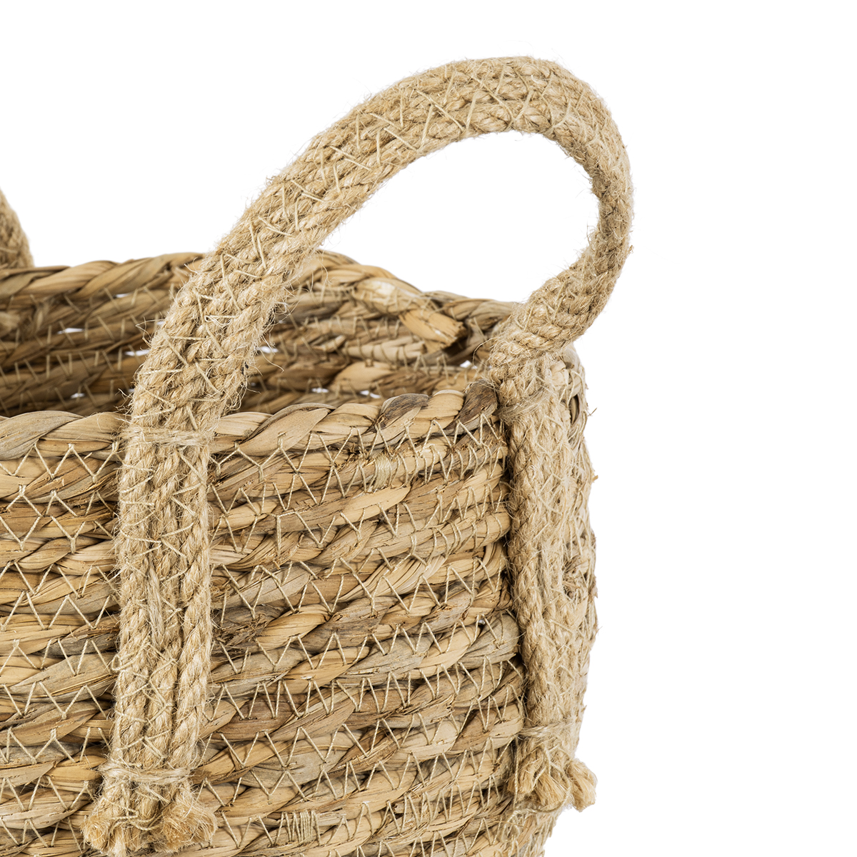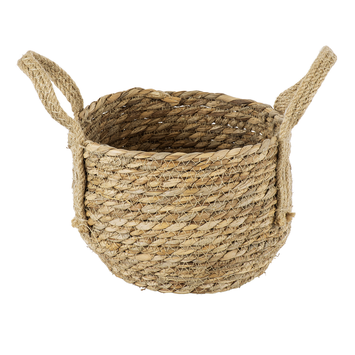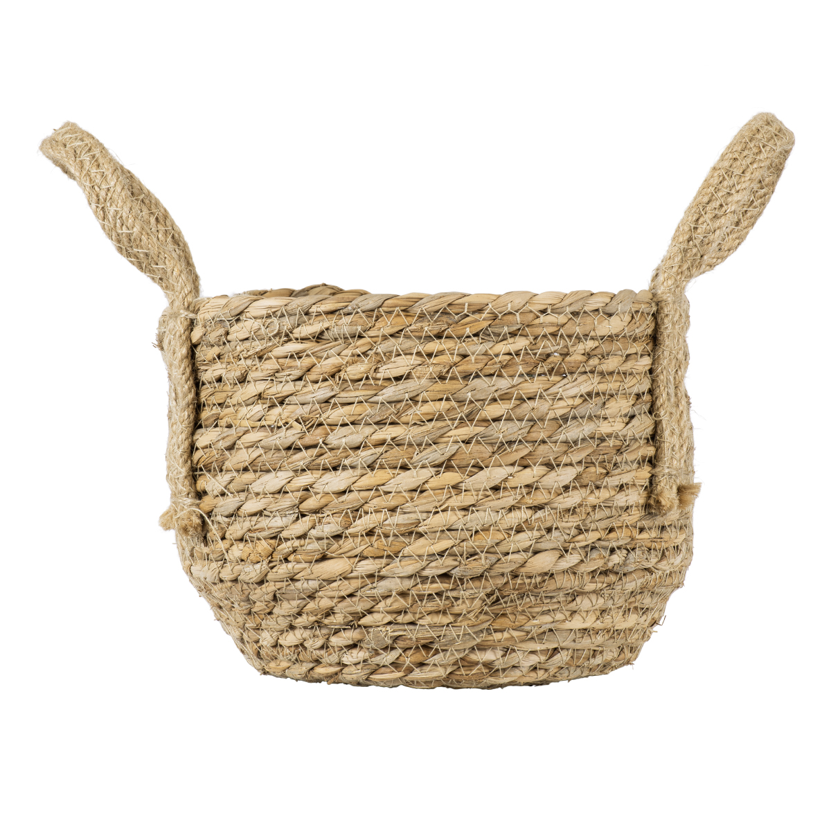 GloboStar® Artificial Garden PAROS 20275 Διακοσμητικό Πλεκτό Καλάθι - Κασπώ Γλάστρα - Flower Pot Μπεζ Φ19cm x Υ15cm