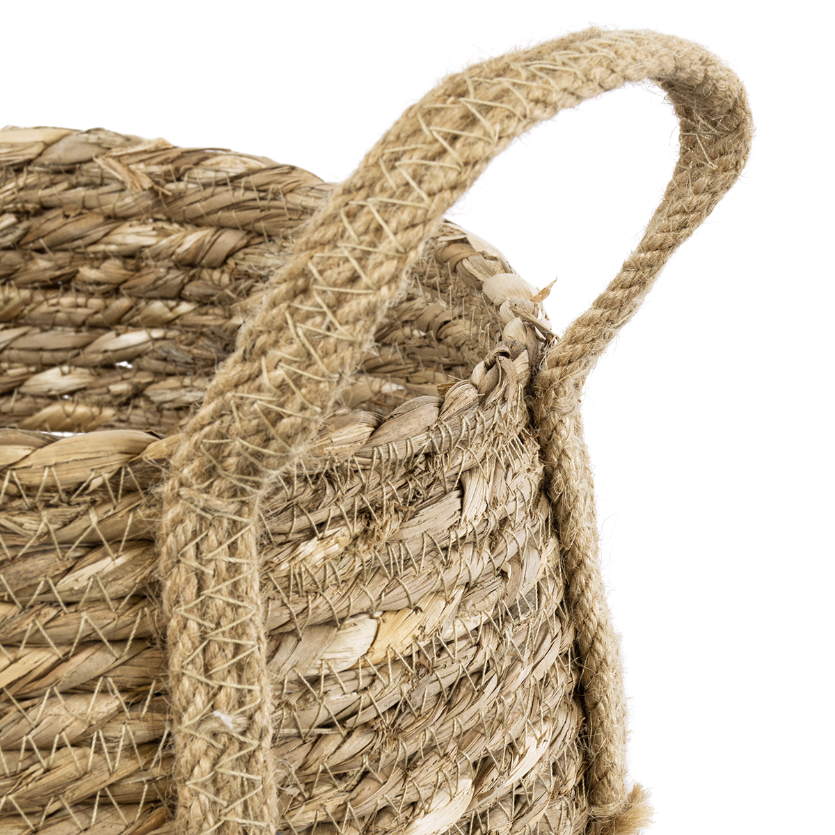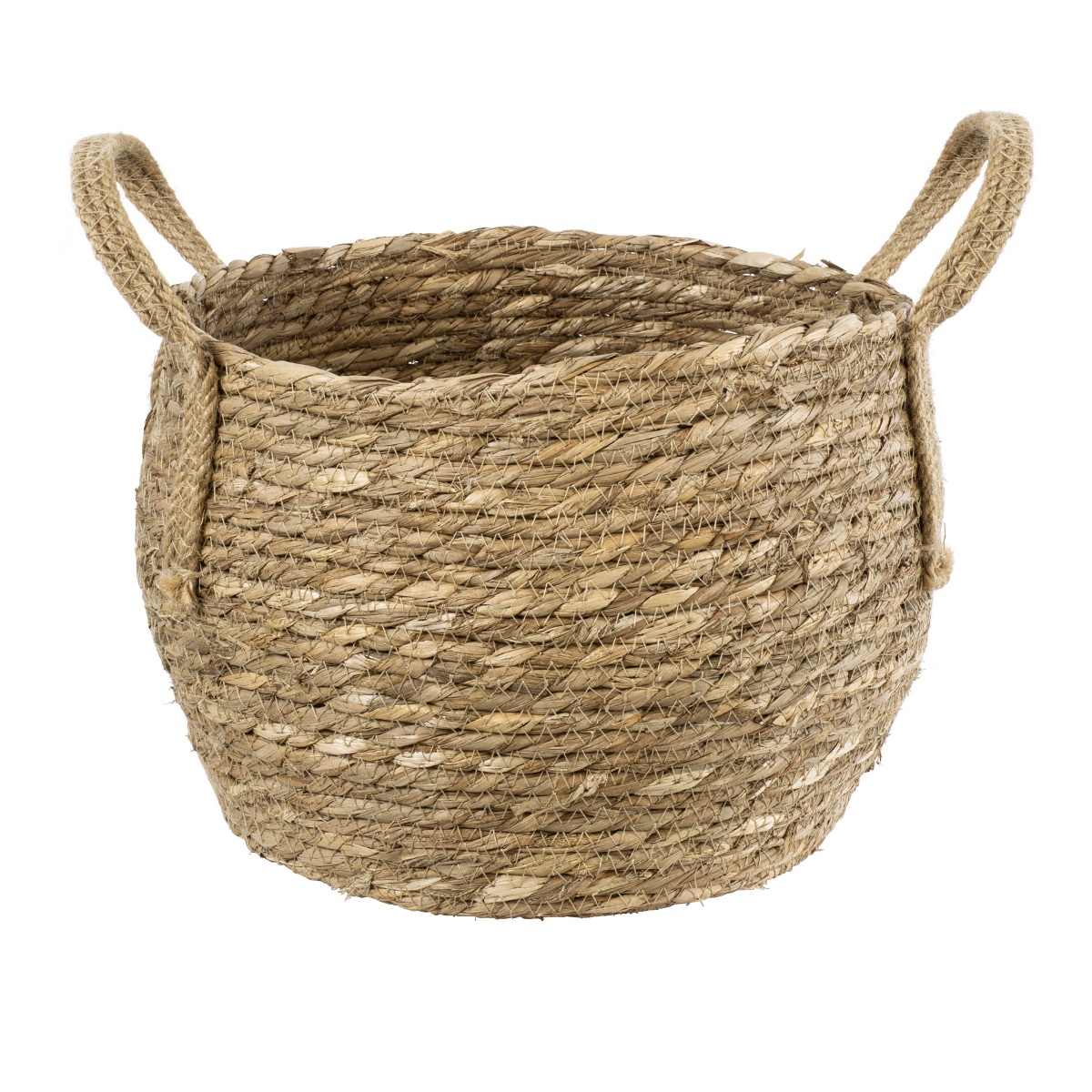 GloboStar® Artificial Garden PAROS 20276 Διακοσμητικό Πλεκτό Καλάθι - Κασπώ Γλάστρα - Flower Pot Μπεζ Φ24cm x Υ19cm