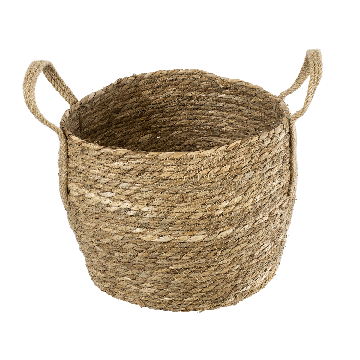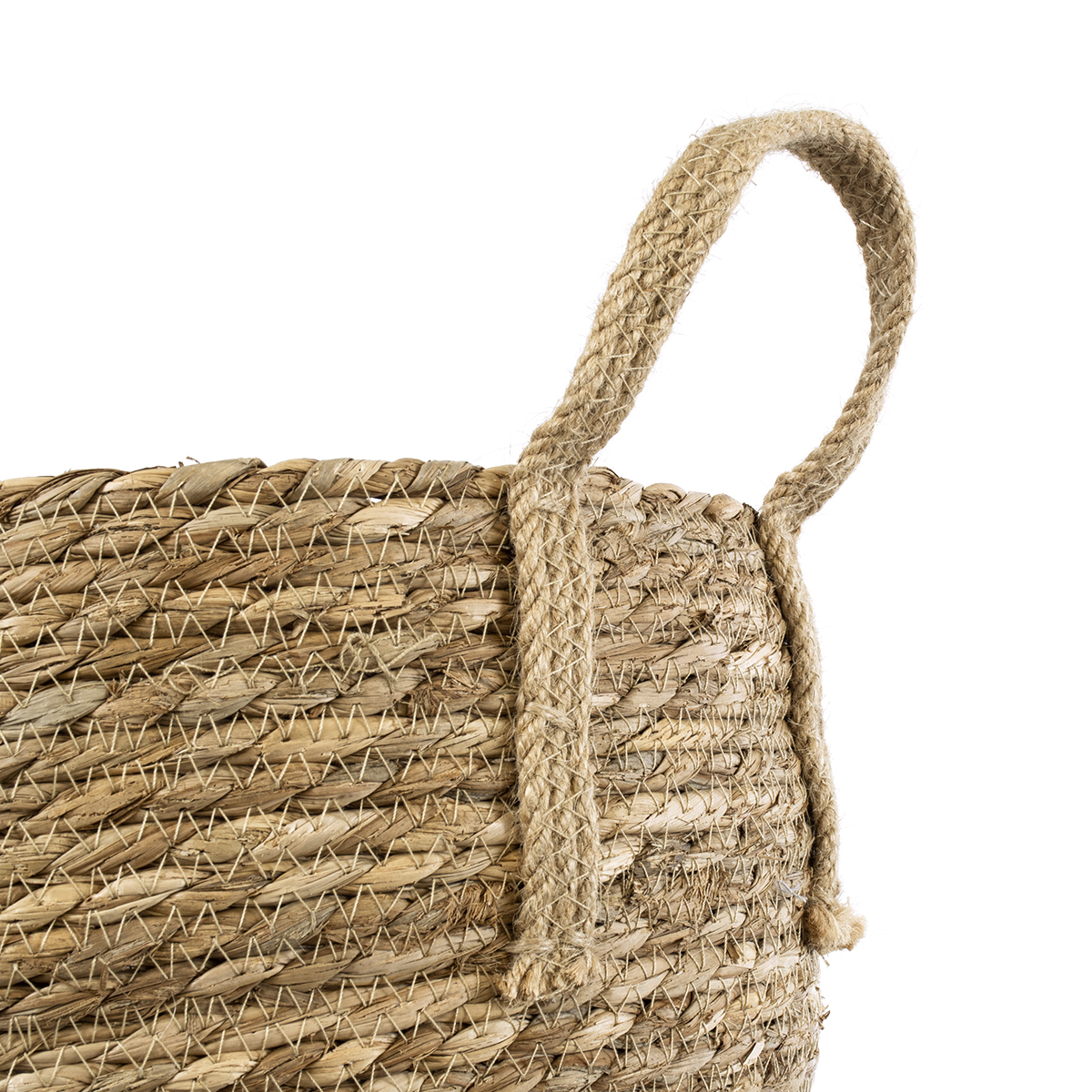 GloboStar® Artificial Garden PAROS 20277 Διακοσμητικό Πλεκτό Καλάθι - Κασπώ Γλάστρα - Flower Pot Μπεζ Φ29cm x Υ25cm