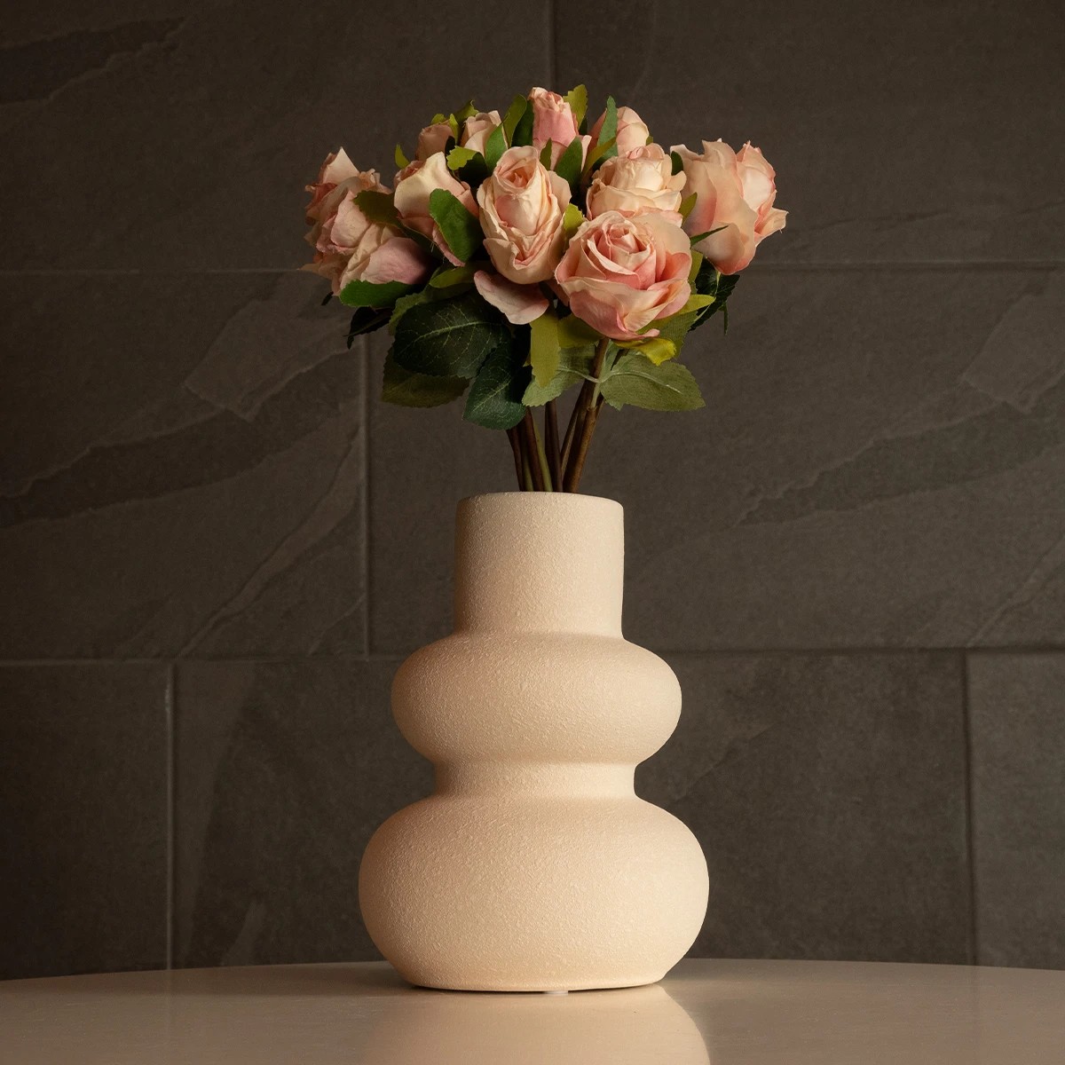 GloboStar® Artificial Garden QUARTZ 21254 Διακοσμητικό Κεραμικό Βάζo Μπεζ Π15 x Μ15 x Υ20 cm