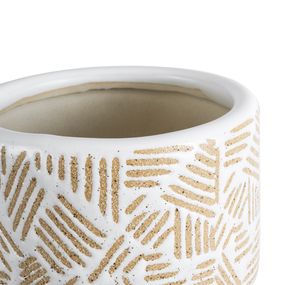 GloboStar® Artificial Garden RAFFAELO 20544 Διακοσμητικό Κεραμικό Κασπώ Γλάστρα - Flower Pot Μπεζ με Λευκό Φ11 x Υ11cm