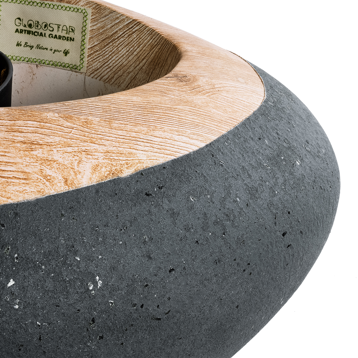 GloboStar® Artificial Garden RAVELLO 20746 Επιδαπέδιο Πολυεστερικό Τσιμεντένιο Κασπώ Γλάστρα - Flower Pot Μαύρο με Καφέ Μ82 x Π62 x Υ45cm