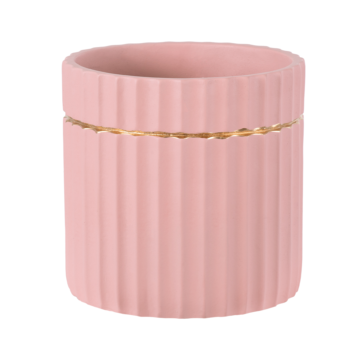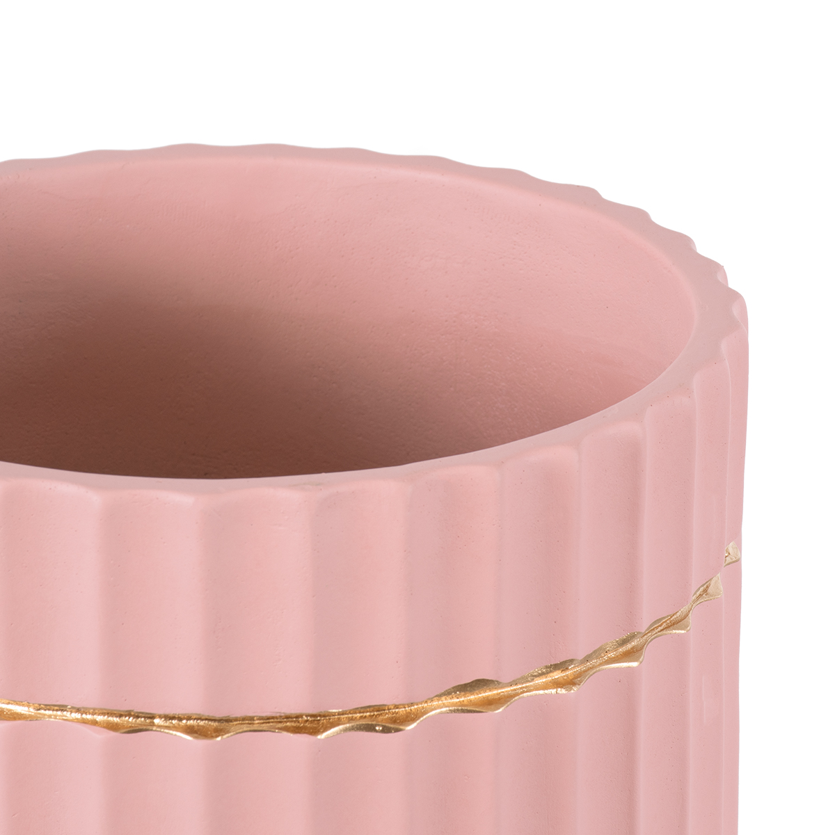 GloboStar® Artificial Garden RETHYMNO 20456 Πήλινο Κεραμικό Κασπώ Γλάστρα - Flower Pot Ροζ με Χρυσό Φ17cm x Υ17cm