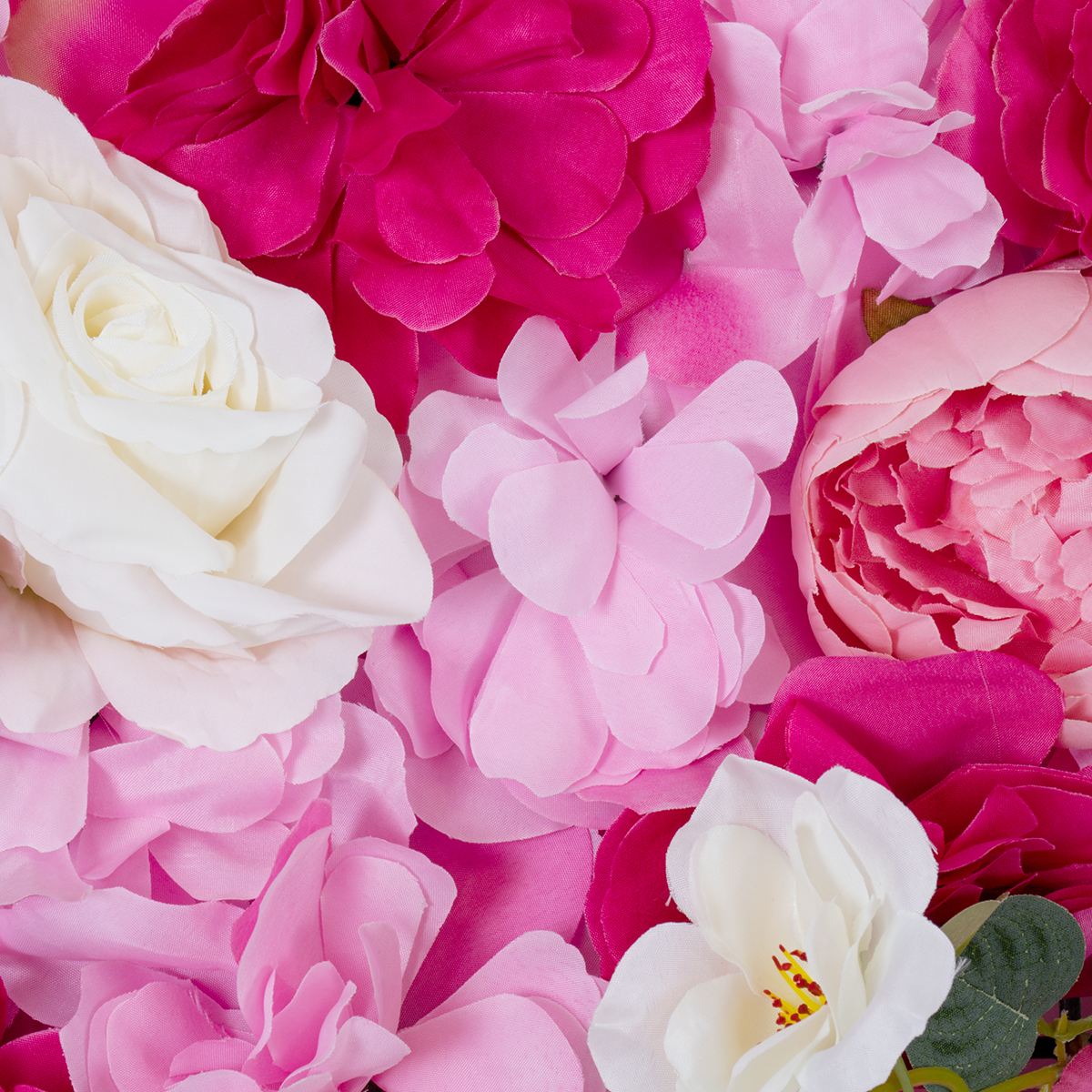 GloboStar® Artificial Garden ROSALIE 78335 Τεχνητό Διακοσμητικό Πάνελ Λουλουδιών - Κάθετος Κήπος σύνθεση Ροζαλί Μ60 x Π40 x Υ6cm