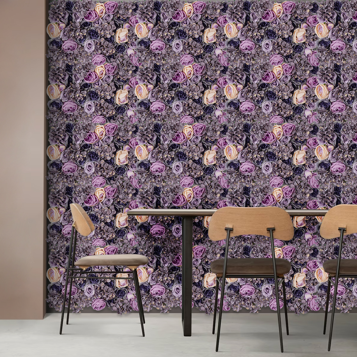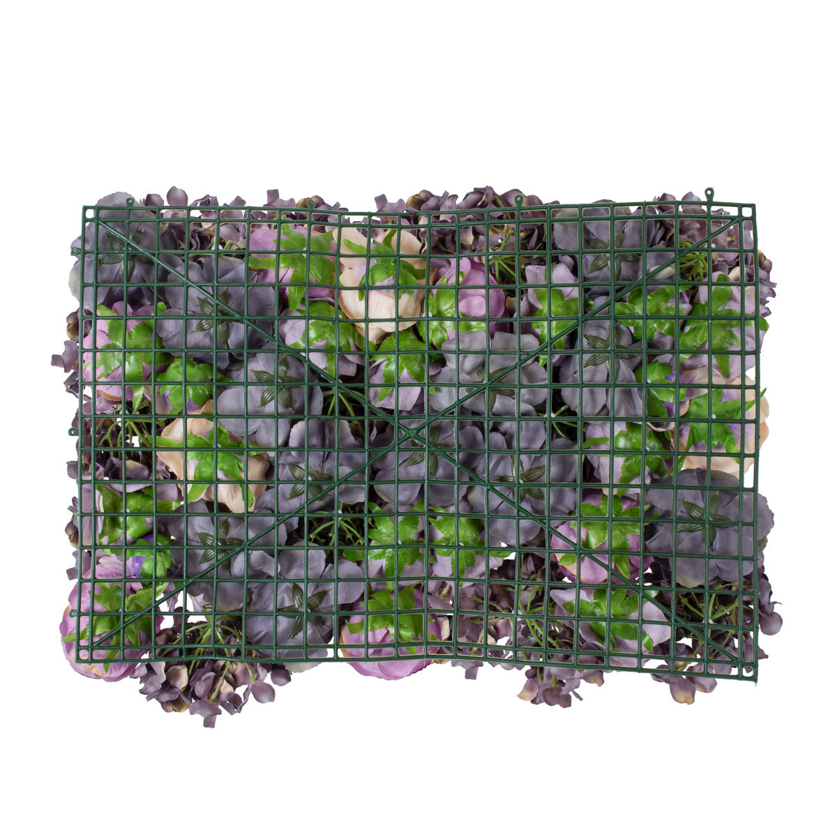 GloboStar® Artificial Garden ROSES STORY 20352 Τεχνητό Διακοσμητικό Πάνελ Λουλουδιών - Κάθετος Κήπος σύνθεση Μωβ & Ροζ Τριαντάφυλλα Μ40 x Π60 x Υ8cm