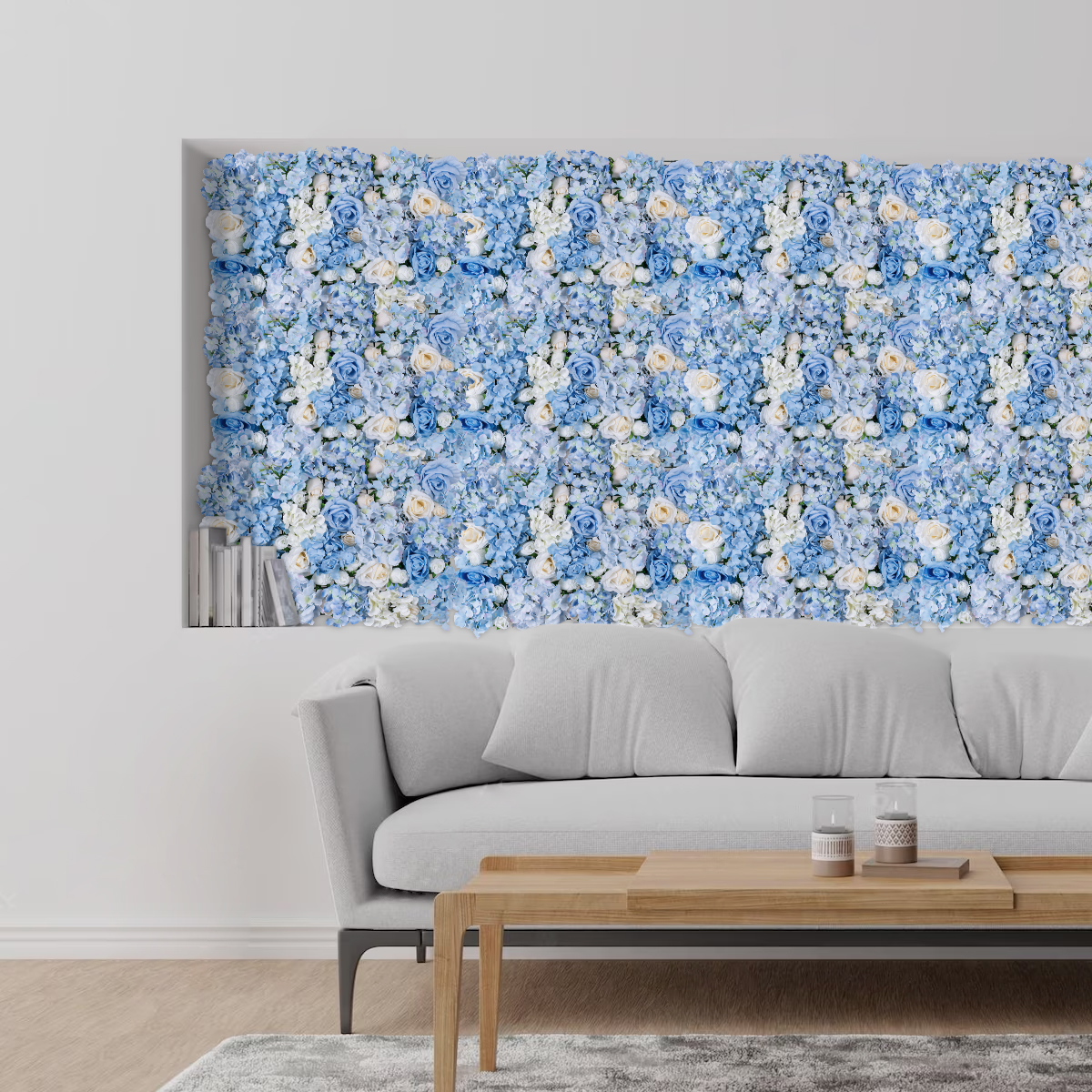 GloboStar® Artificial Garden ROSES STORY 20353 Τεχνητό Διακοσμητικό Πάνελ Λουλουδιών - Κάθετος Κήπος σύνθεση Μπλε & Μπεζ Τριαντάφυλλα Μ40 x Π60 x Υ10cm