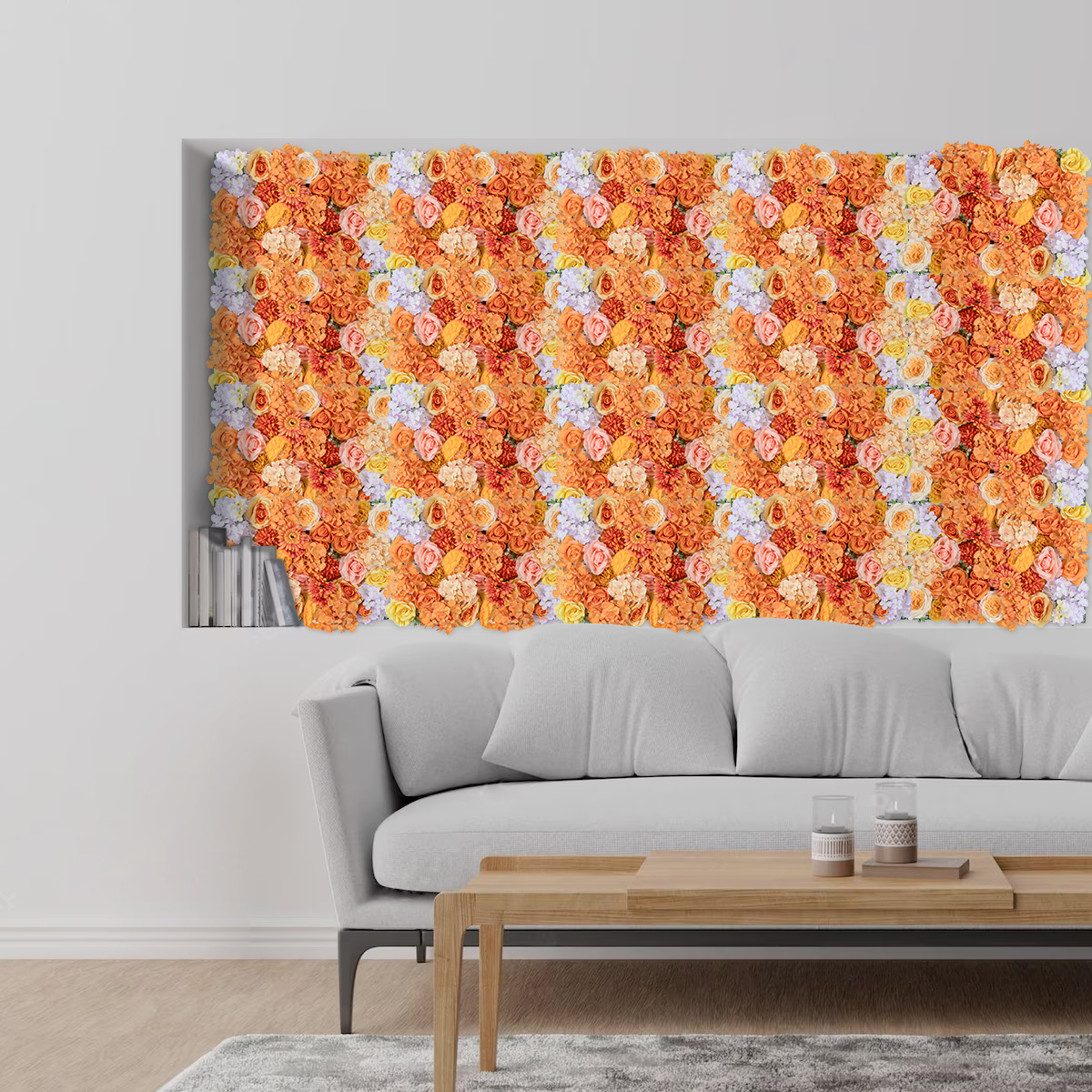 GloboStar® Artificial Garden ROSES STORY 20354 Τεχνητό Διακοσμητικό Πάνελ Λουλουδιών - Κάθετος Κήπος σύνθεση Πορτοκαλί & Ροζ Τριαντάφυλλα Μ40 x Π60 x Υ12cm