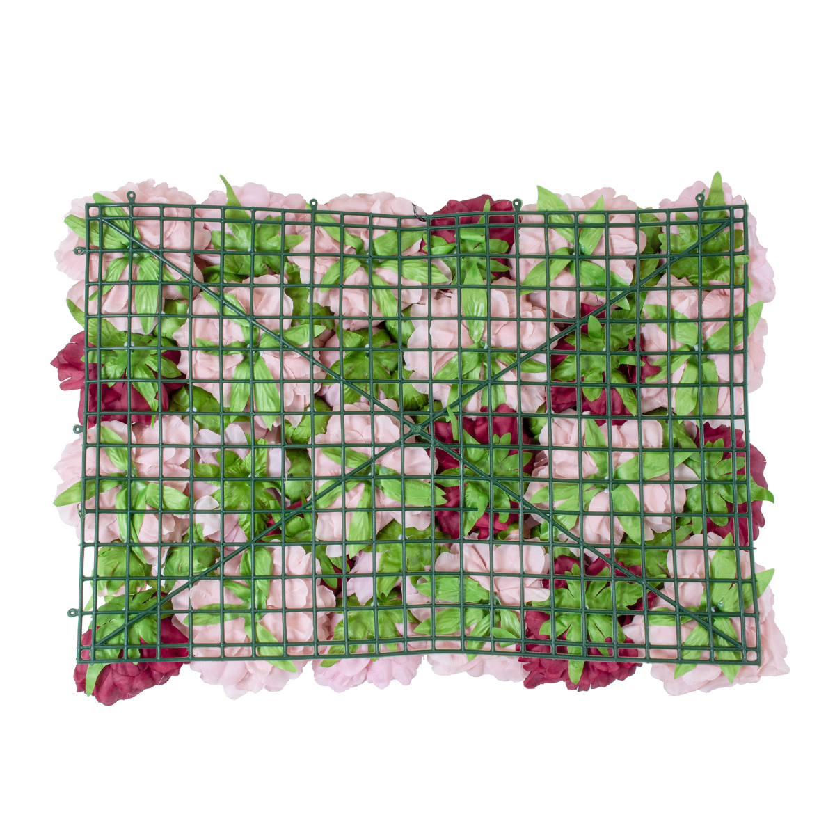 GloboStar® Artificial Garden ROSES STORY 20355 Τεχνητό Διακοσμητικό Πάνελ Λουλουδιών - Κάθετος Κήπος σύνθεση Ροζ & Βυσσινί Τριαντάφυλλα Μ40 x Π60 x Υ8cm