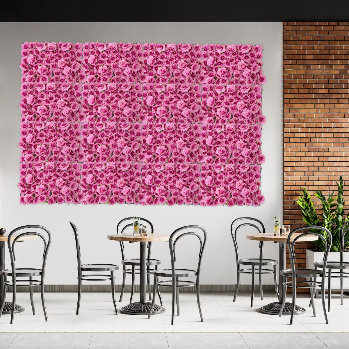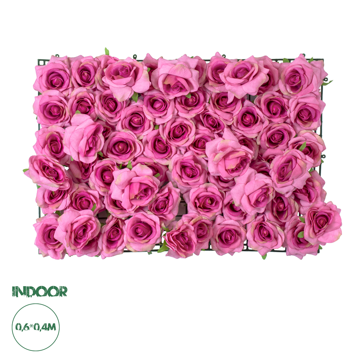 GloboStar® Artificial Garden ROSES STORY 20357 Τεχνητό Διακοσμητικό Πάνελ Λουλουδιών - Κάθετος Κήπος σύνθεση Βυσσινί Τριαντάφυλλα Μ40 x Π60 x Υ15cm