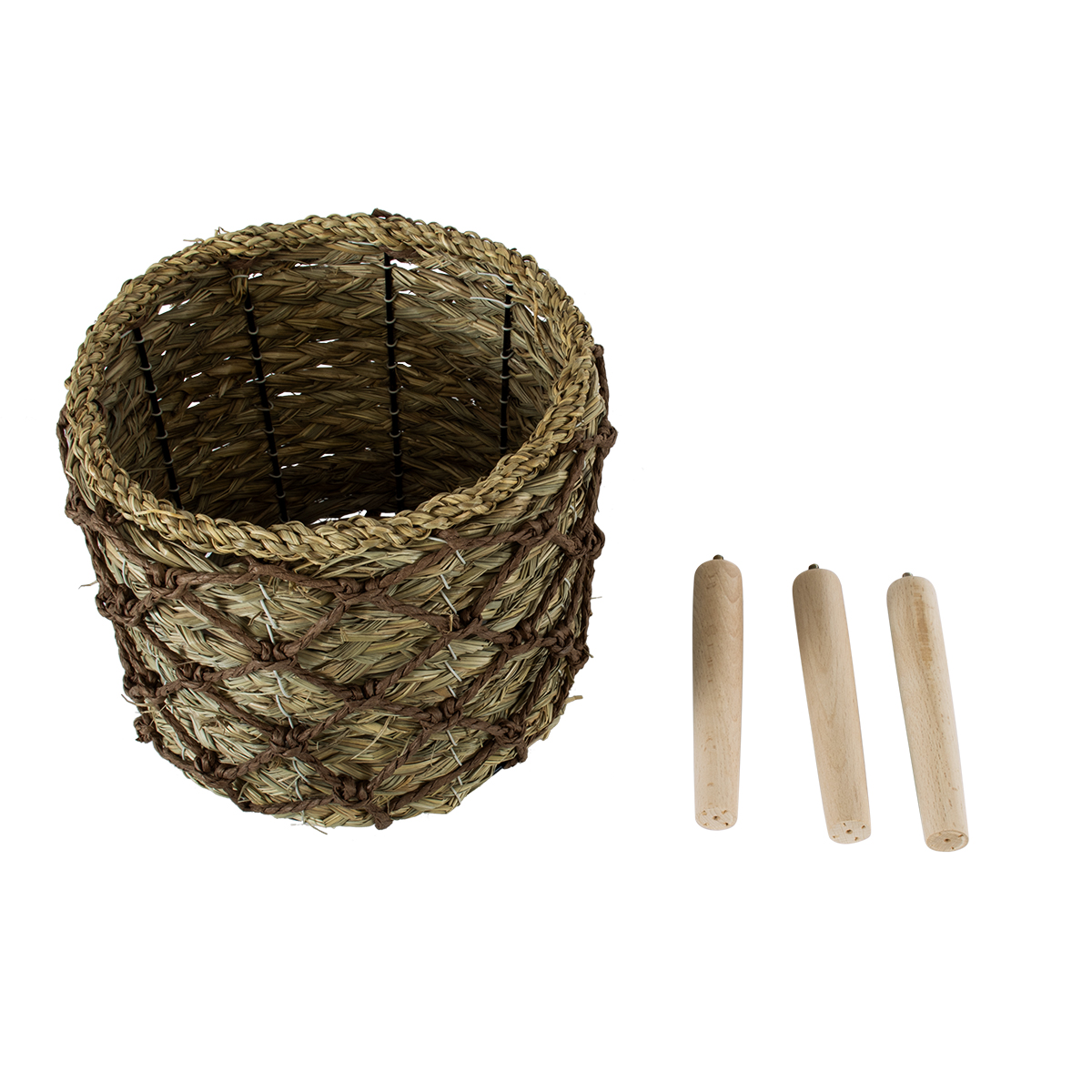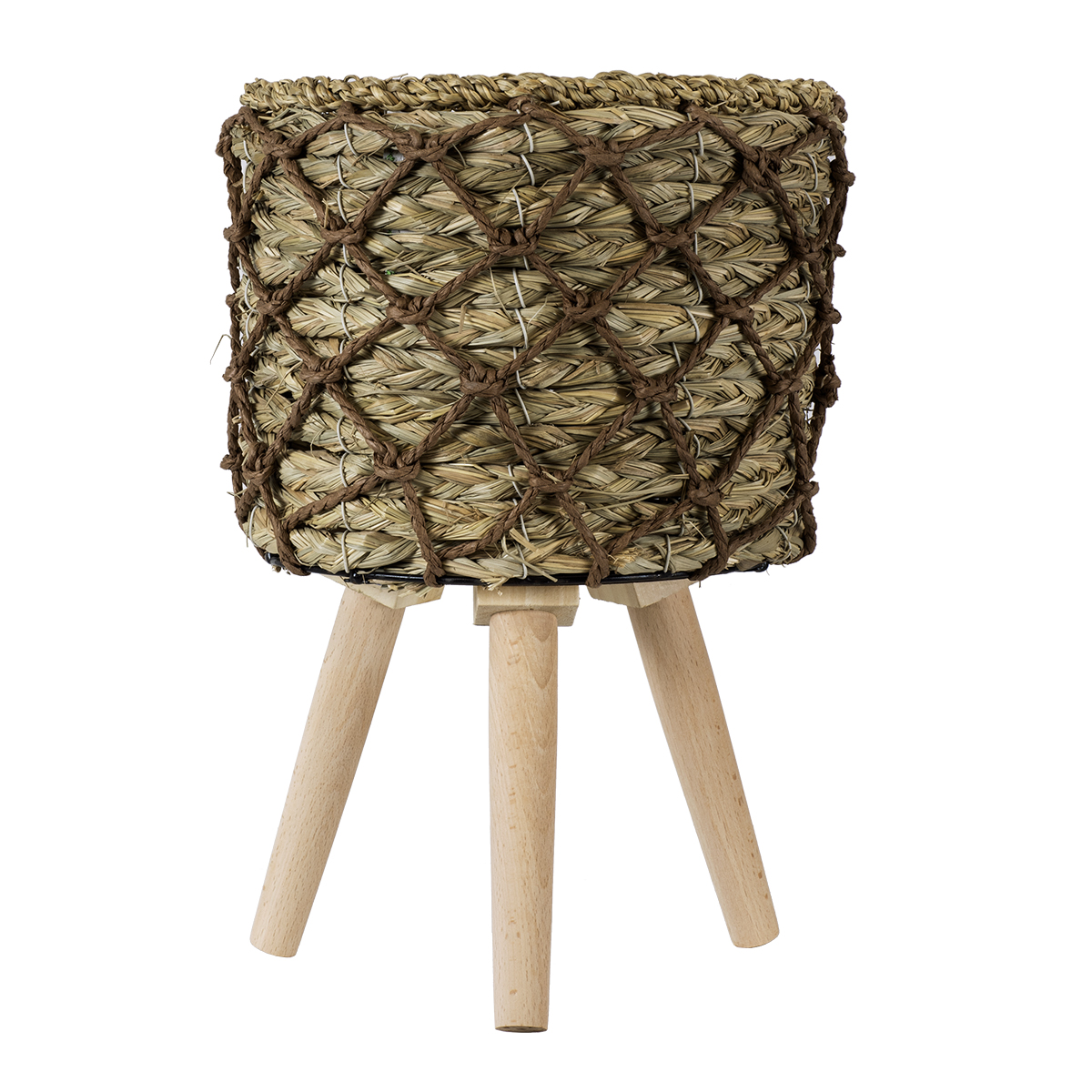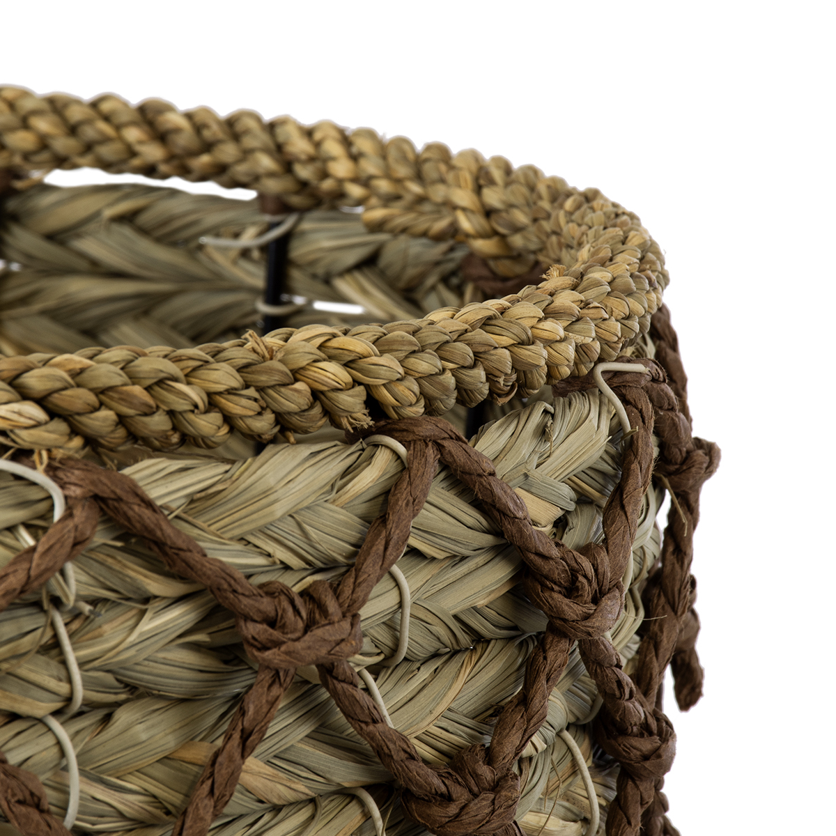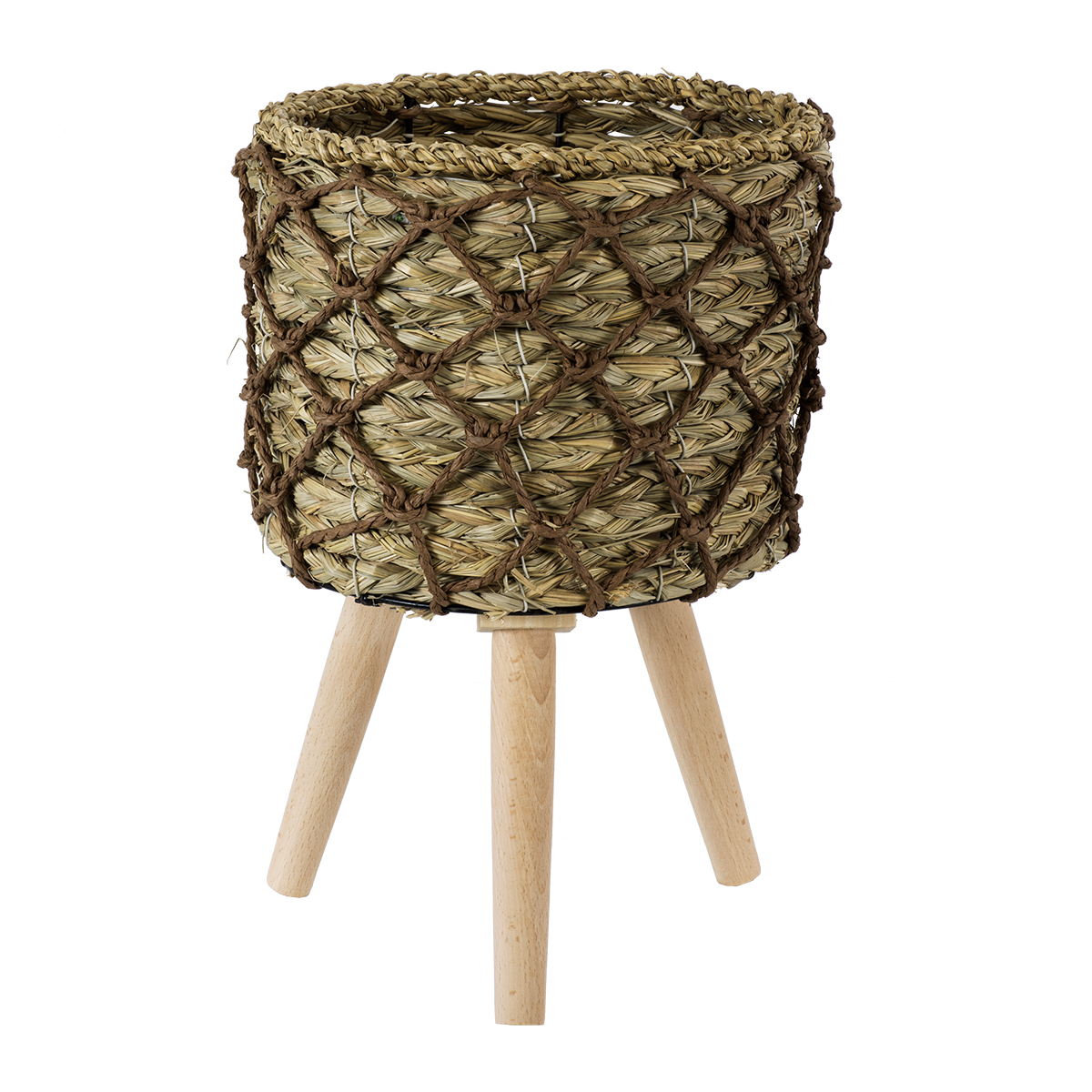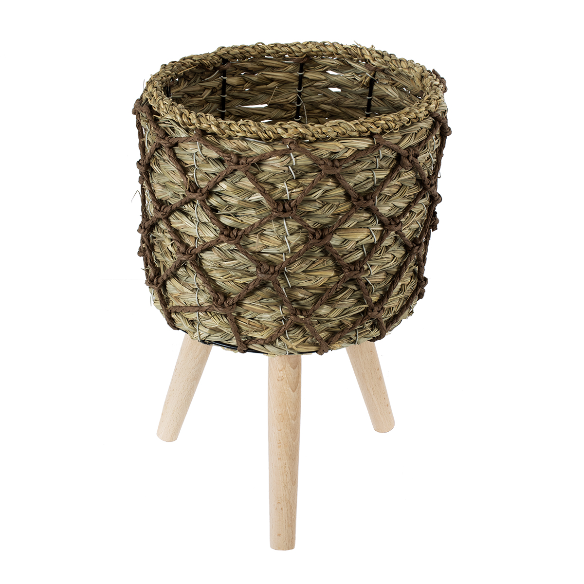 GloboStar® Artificial Garden SAMOS 20303 Διακοσμητικό Πλεκτό Καλάθι - Κασπώ Γλάστρα - Flower Pot Μπεζ με Καφέ Φ22cm x Υ34cm
