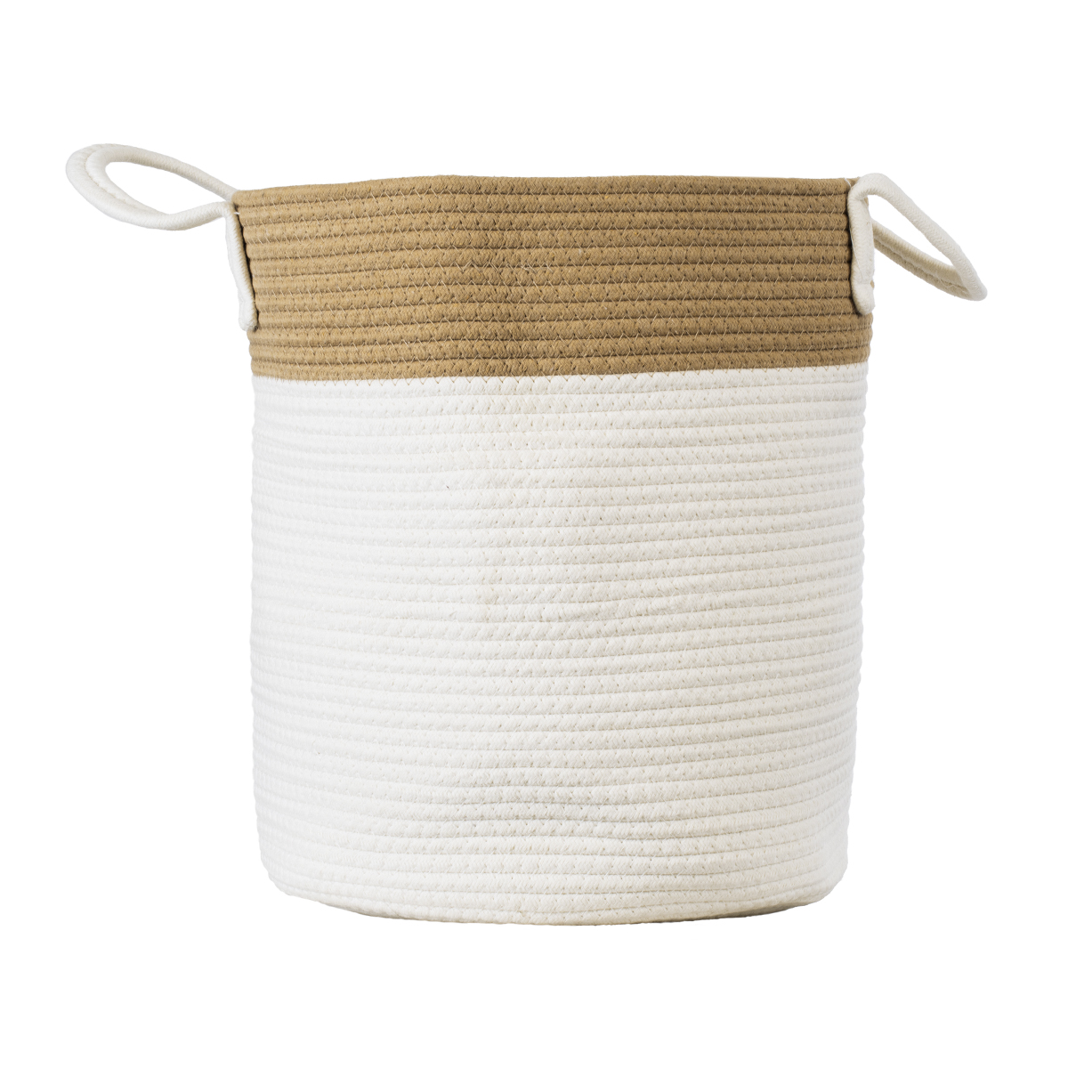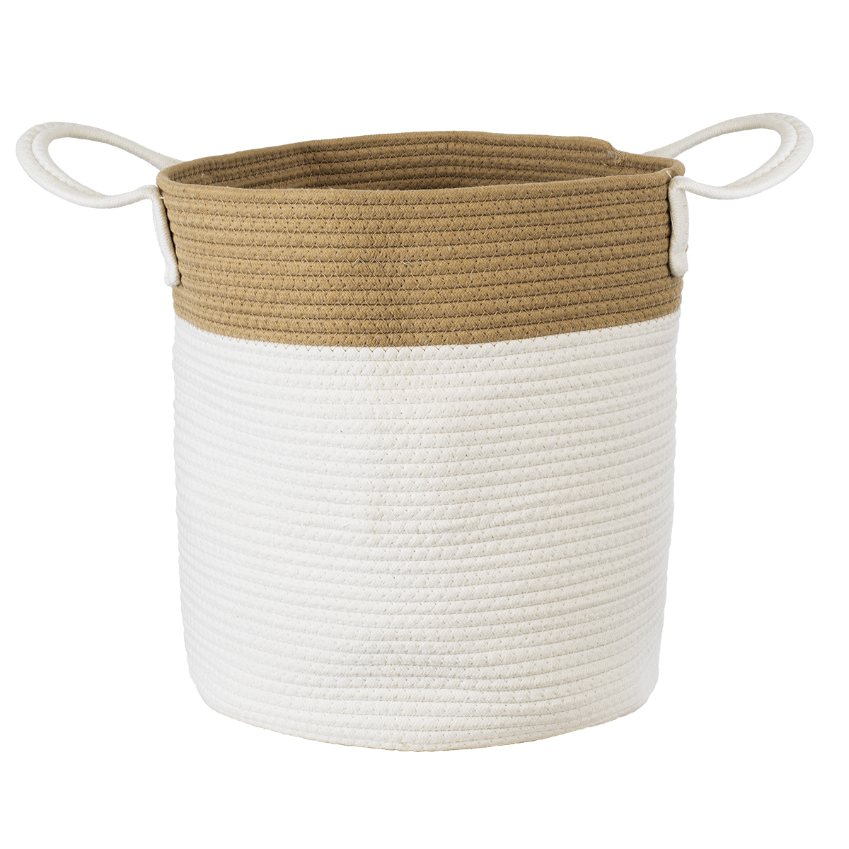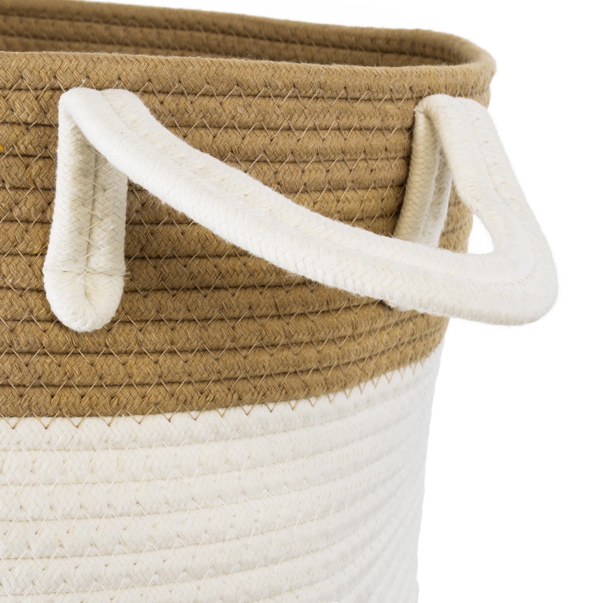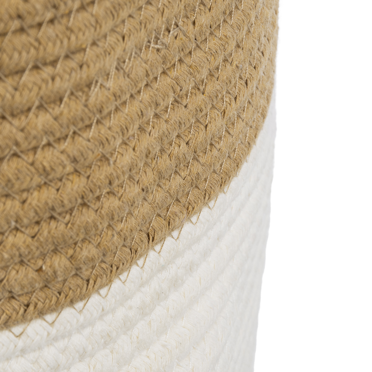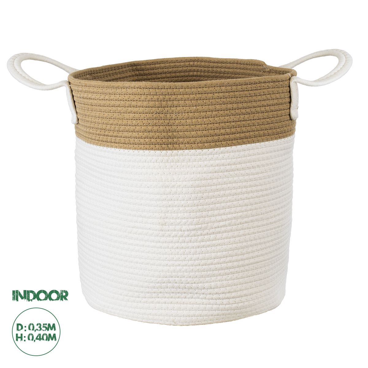 GloboStar® Artificial Garden SAMOTHRAKI 20199 Διακοσμητικό Πλεκτό Καλάθι - Κασπώ Γλάστρα - Flower Pot Μπεζ με Λευκό Π35cm x Υ40cm