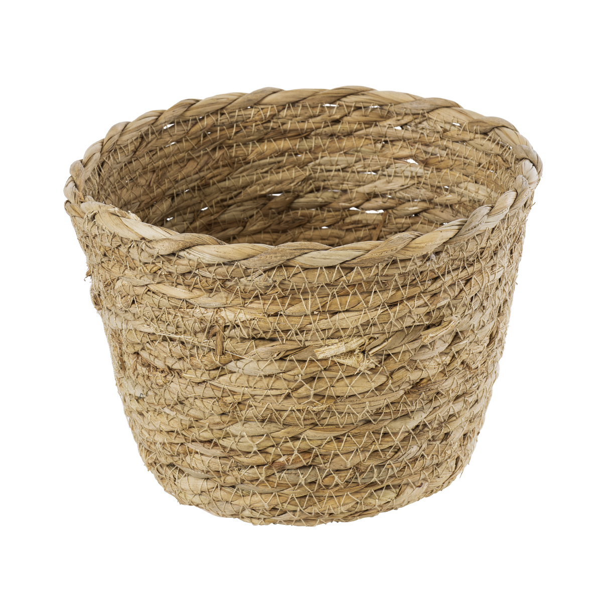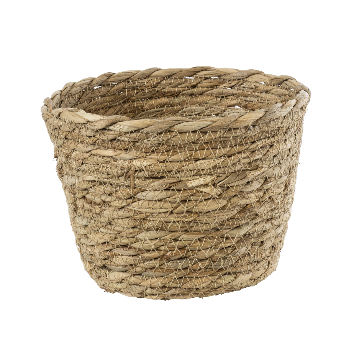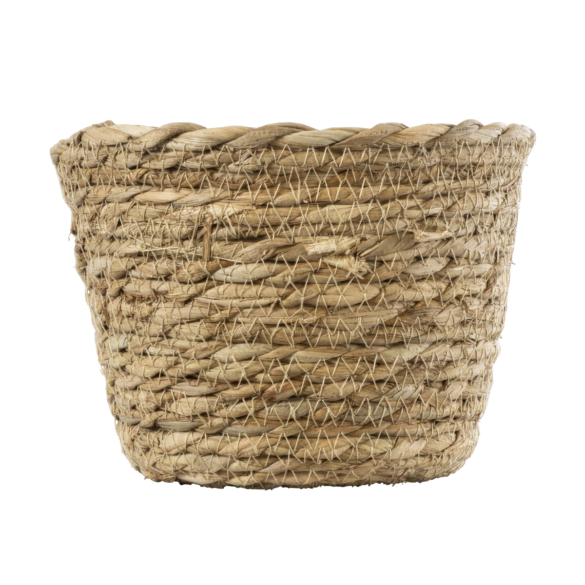 GloboStar® Artificial Garden SIFNOS 20266 Διακοσμητικό Πλεκτό Καλάθι - Κασπώ Γλάστρα - Flower Pot Μπεζ Φ18cm x Υ15cm