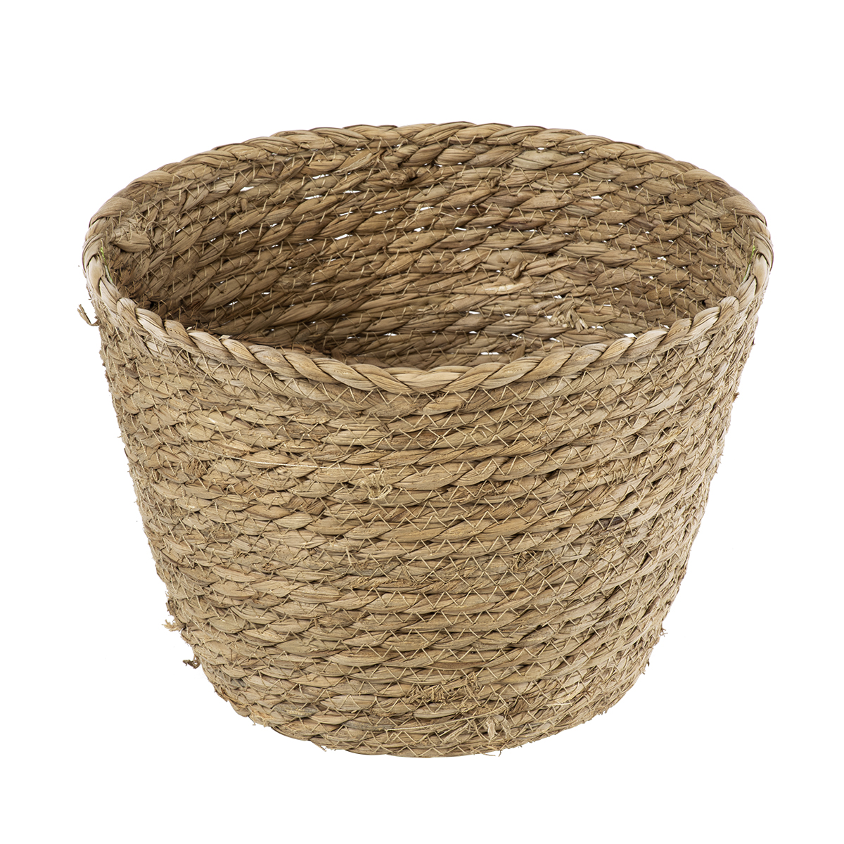 GloboStar® Artificial Garden SIFNOS 20267 Διακοσμητικό Πλεκτό Καλάθι - Κασπώ Γλάστρα - Flower Pot Μπεζ Φ22cm x Υ15cm