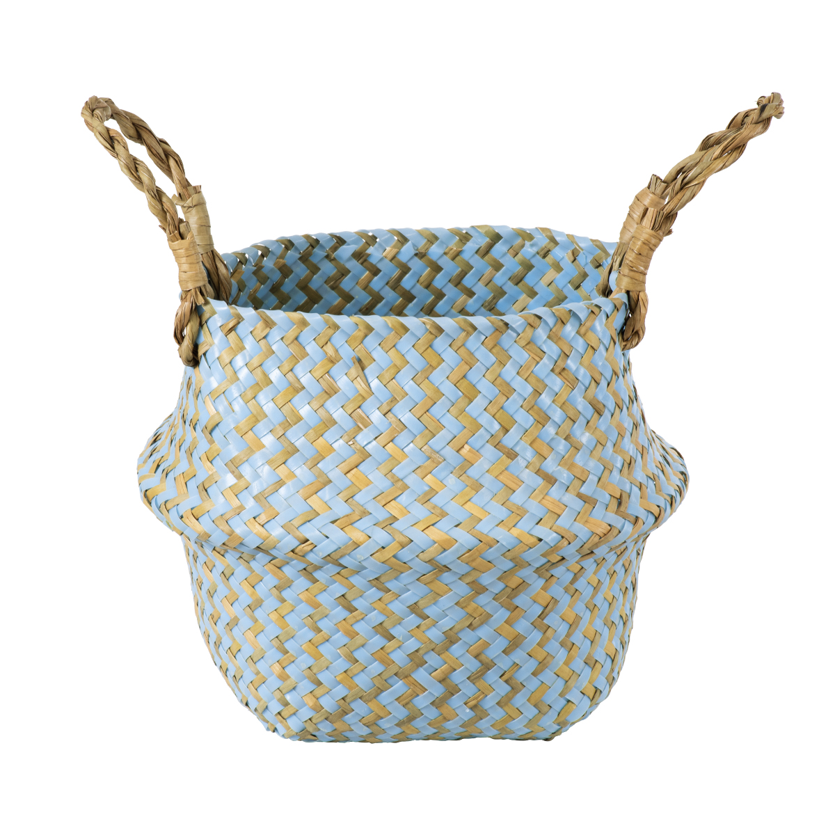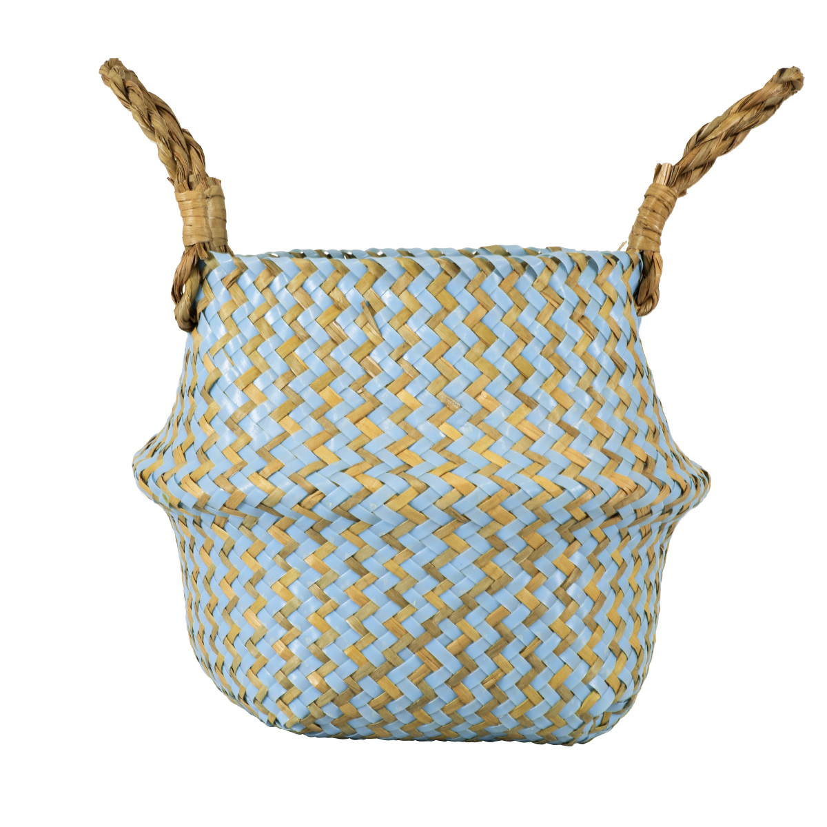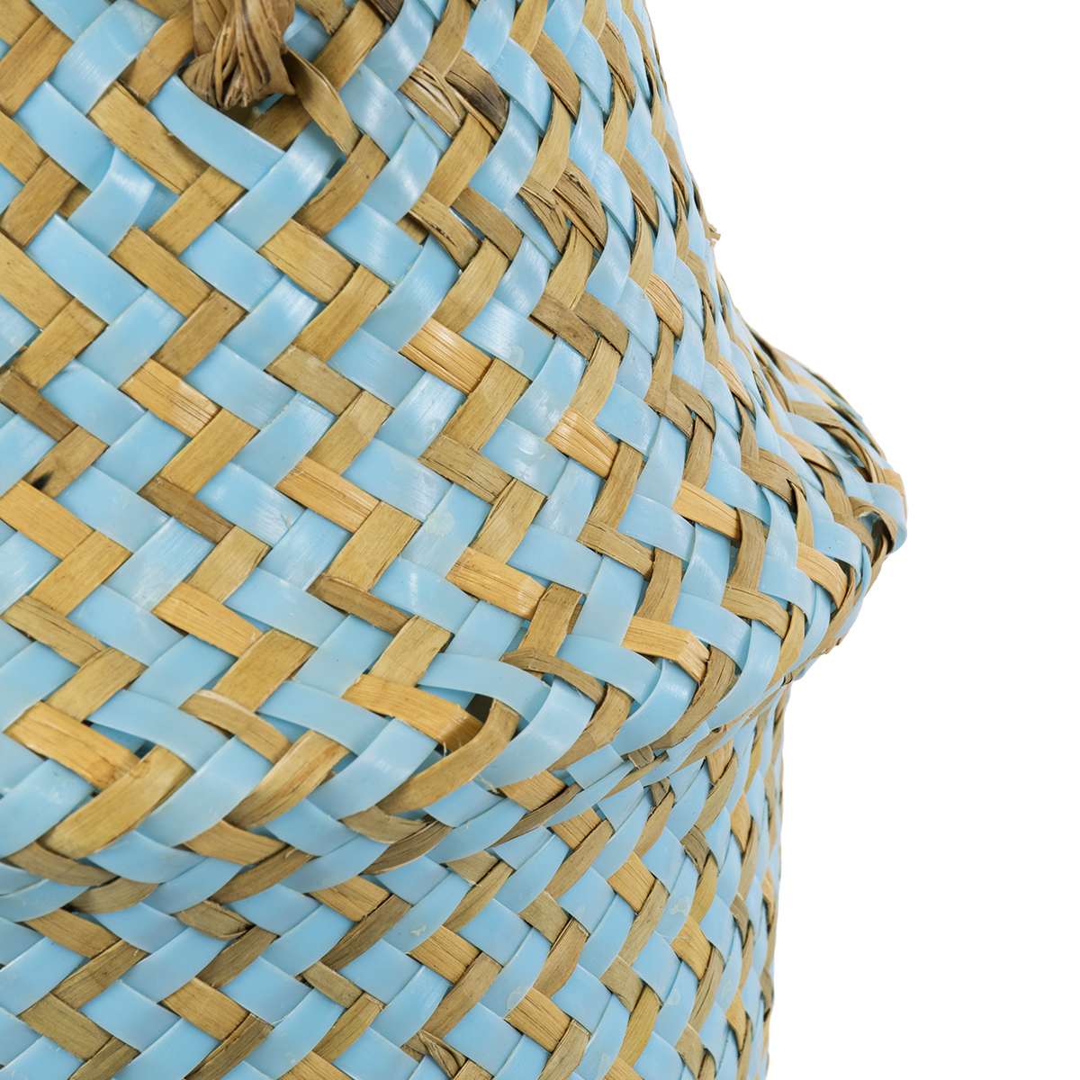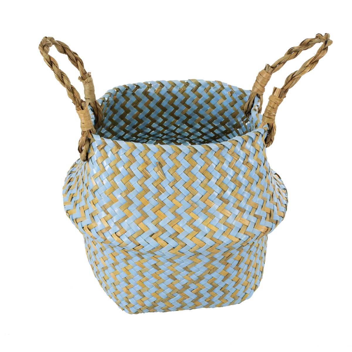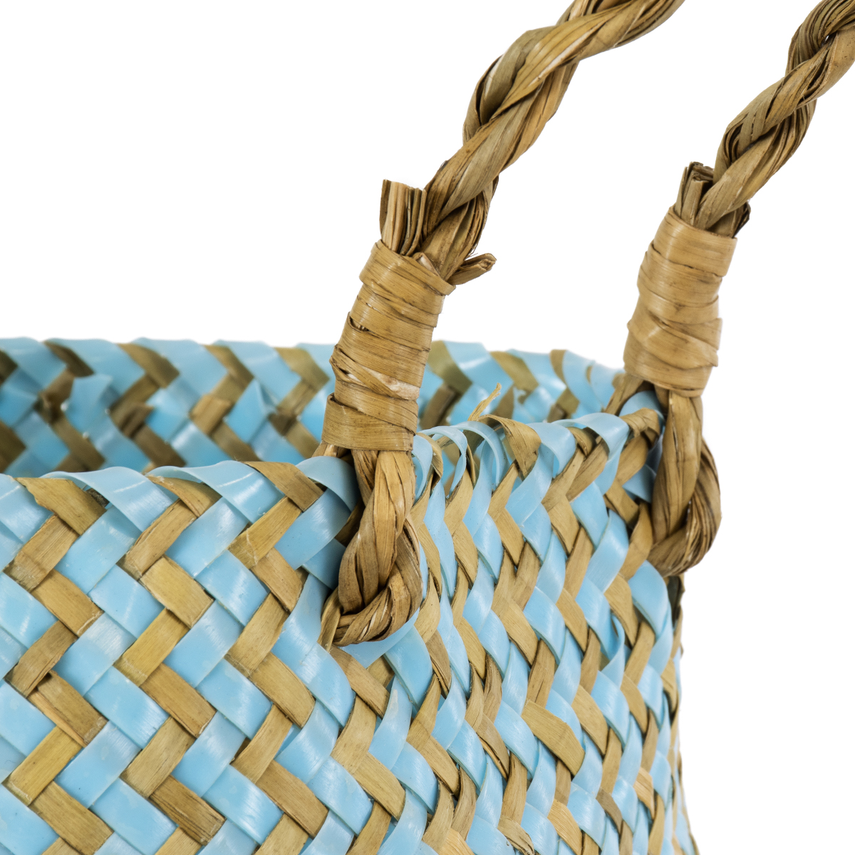 GloboStar® Artificial Garden SKYROS 20340 Διακοσμητικό Ψάθινο Καλάθι - Κασπώ Γλάστρα - Flower Pot Μπλε με Καφέ Φ18cm x Υ20cm