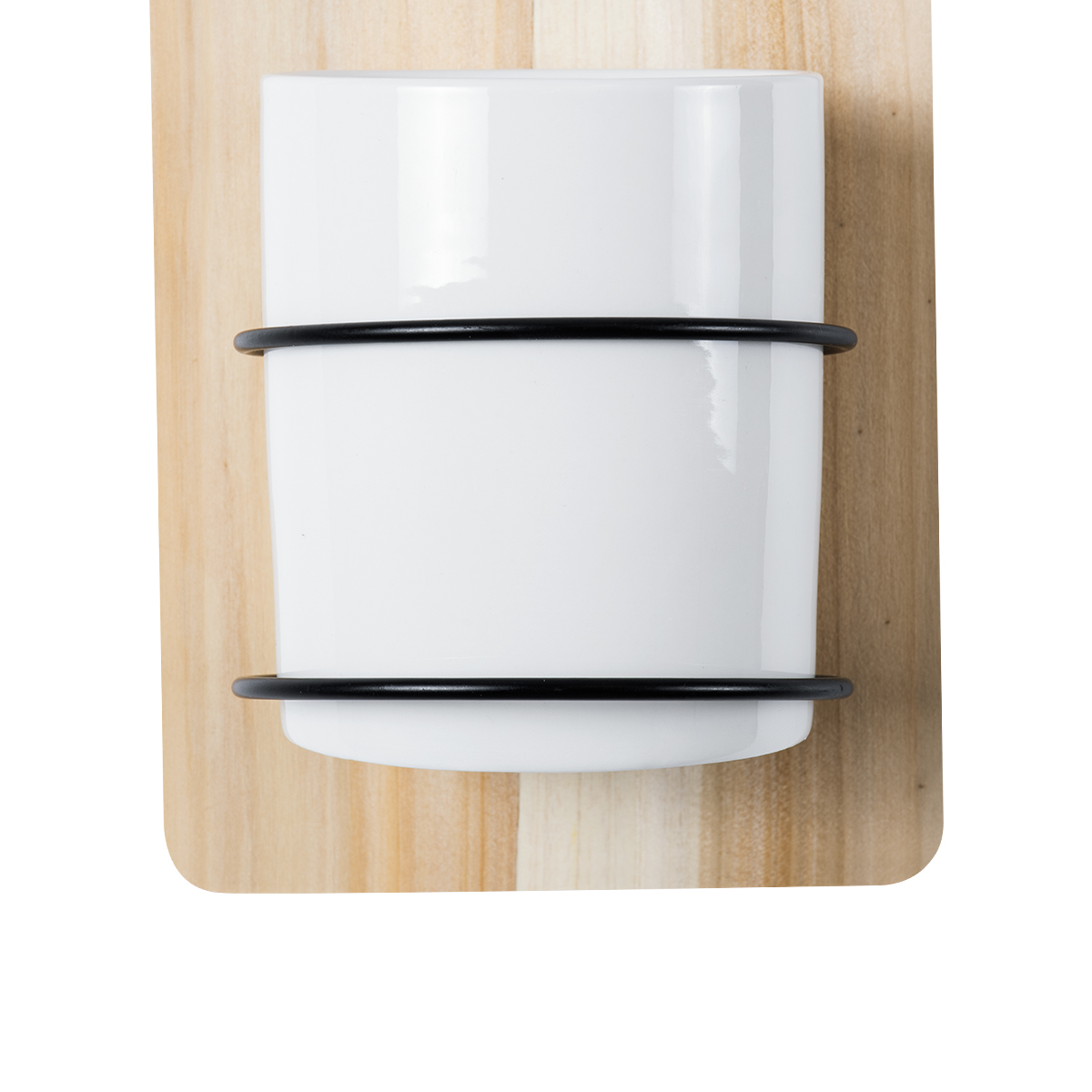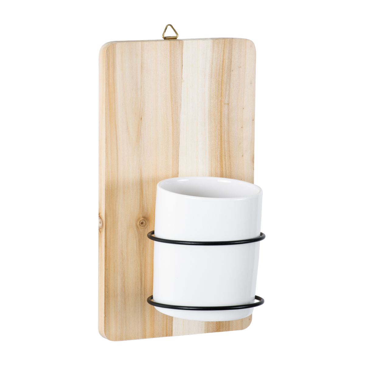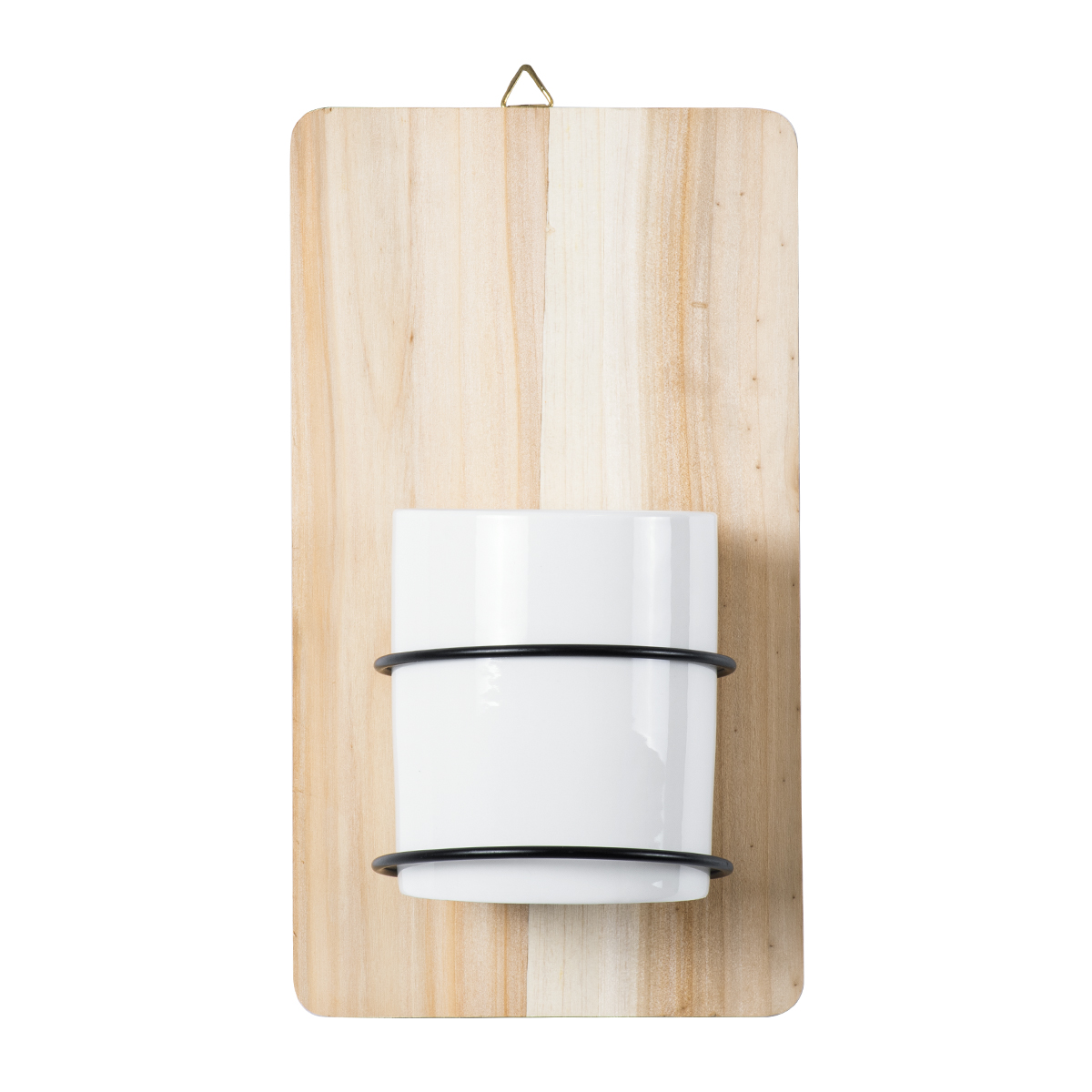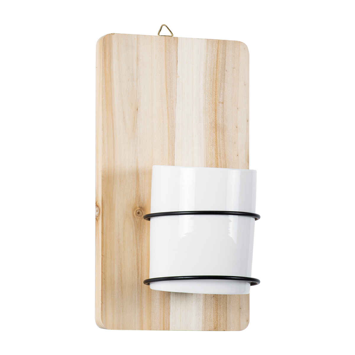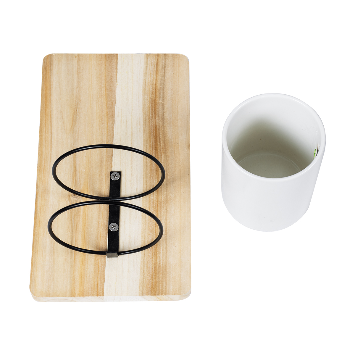 GloboStar® Artificial Garden SPETSES 20473 Επιτοίχιο Πήλινο Κεραμικό Κασπώ Γλάστρα με Ξύλινη Βάση - Flower Pot Μπεζ με Λευκό & Μαύρο Φ13cm x Υ23cm
