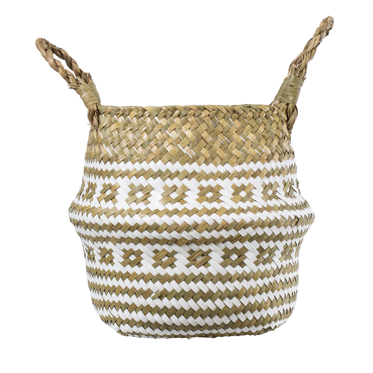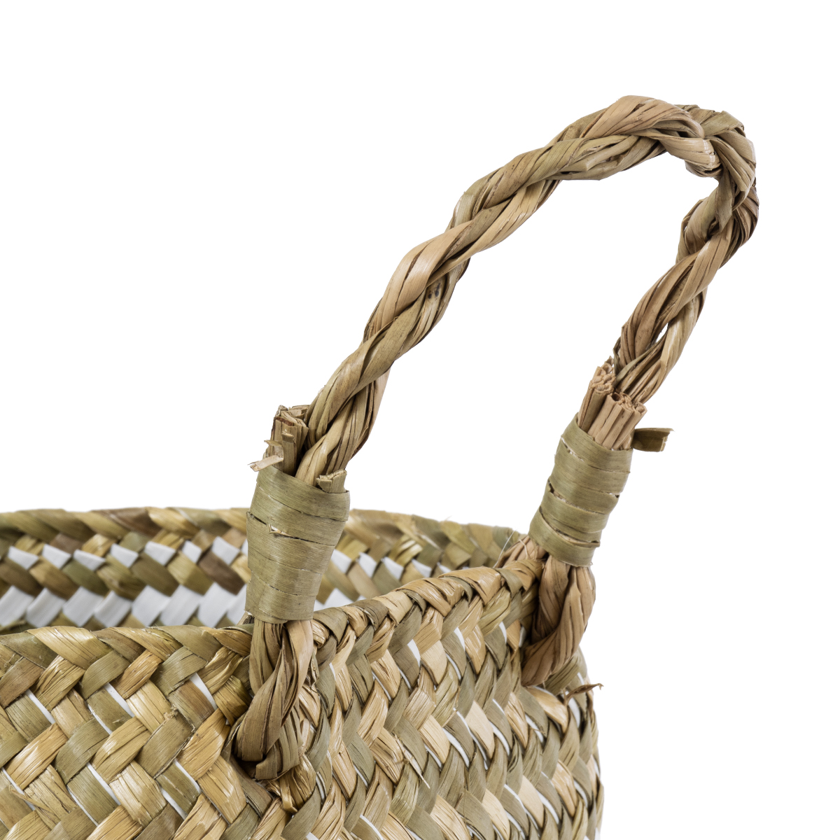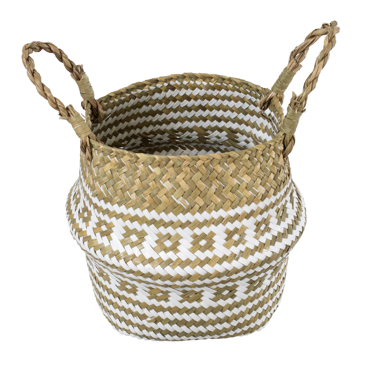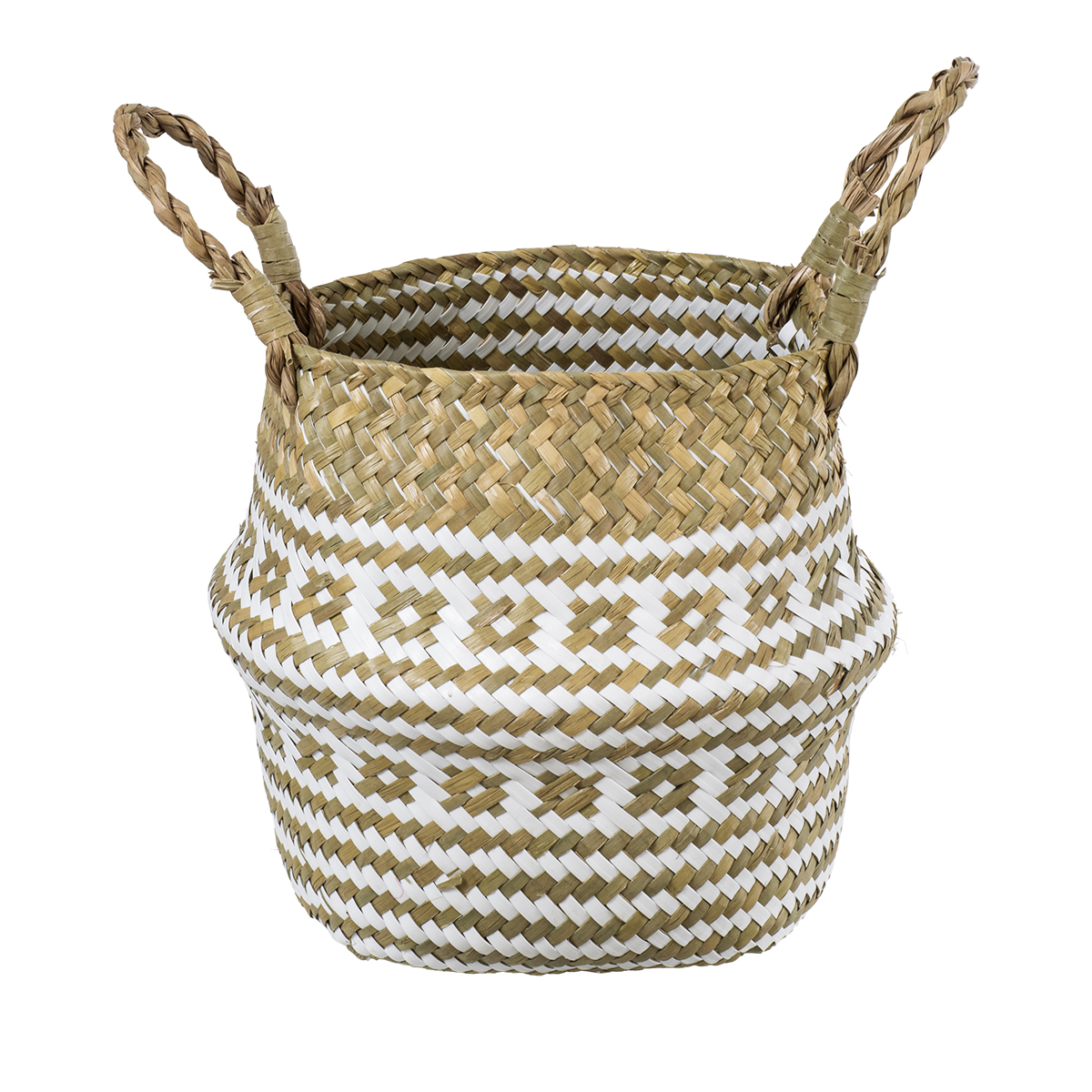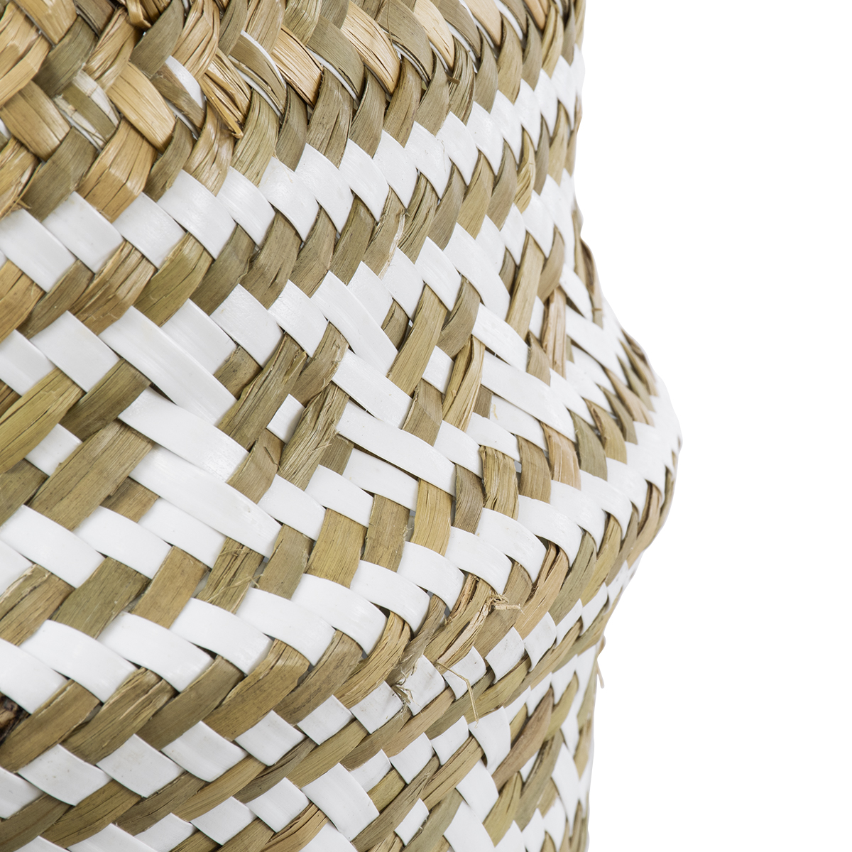 GloboStar® Artificial Garden SYMI 20338 Διακοσμητικό Ψάθινο Καλάθι - Κασπώ Γλάστρα - Flower Pot Μπεζ με Λευκό Φ18cm x Υ20cm