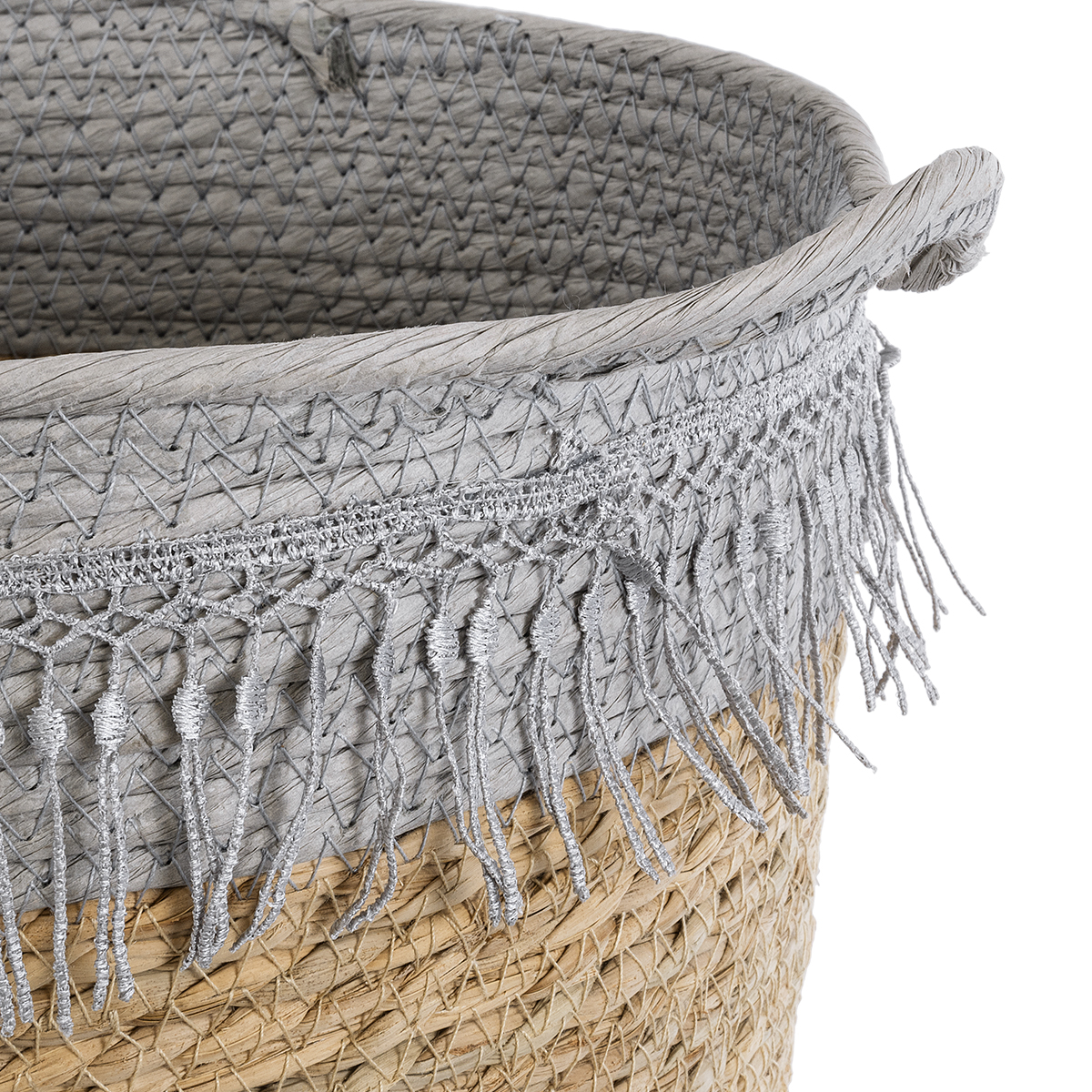 GloboStar® Artificial Garden SYROS 20571 Διακοσμητικό Πλεκτό Κασπώ Γλάστρα - Flower Pot Μπεζ με Γκρι Φ26 x Υ28cm
