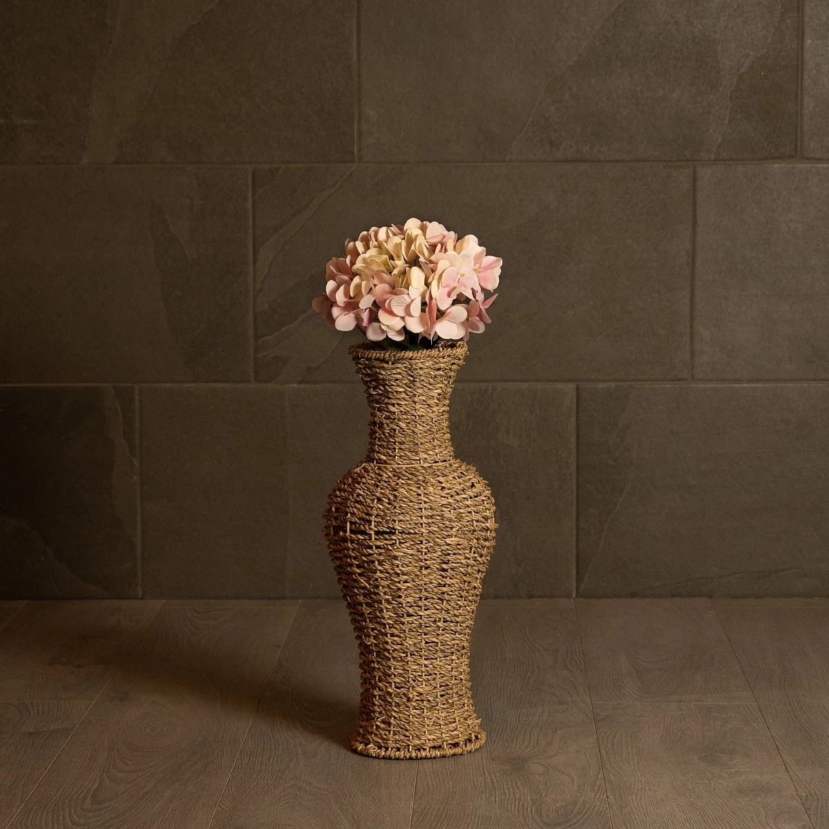 GloboStar® Artificial Garden TEXAS 21238 Διακοσμητικό Πλεκτό Καλάθι - Κασπώ Γλάστρα - Flower Pot Μπεζ Μ20 x Π20 x Υ43cm