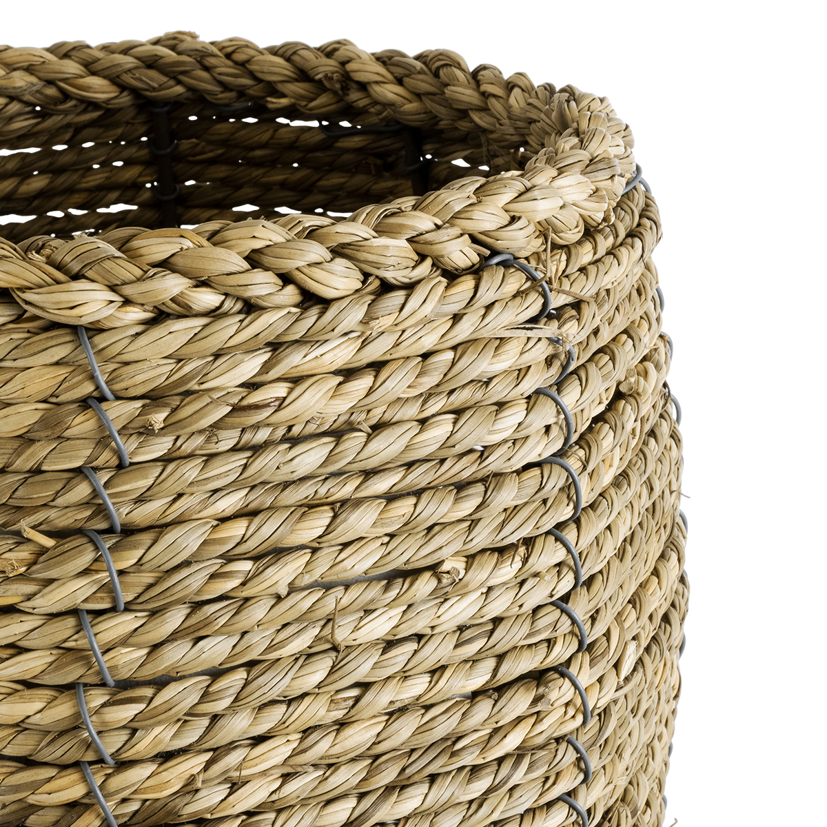 GloboStar® Artificial Garden THASSOS 20295 Διακοσμητικό Πλεκτό Καλάθι - Κασπώ Γλάστρα - Flower Pot Μπεζ Φ18 x Υ24cm