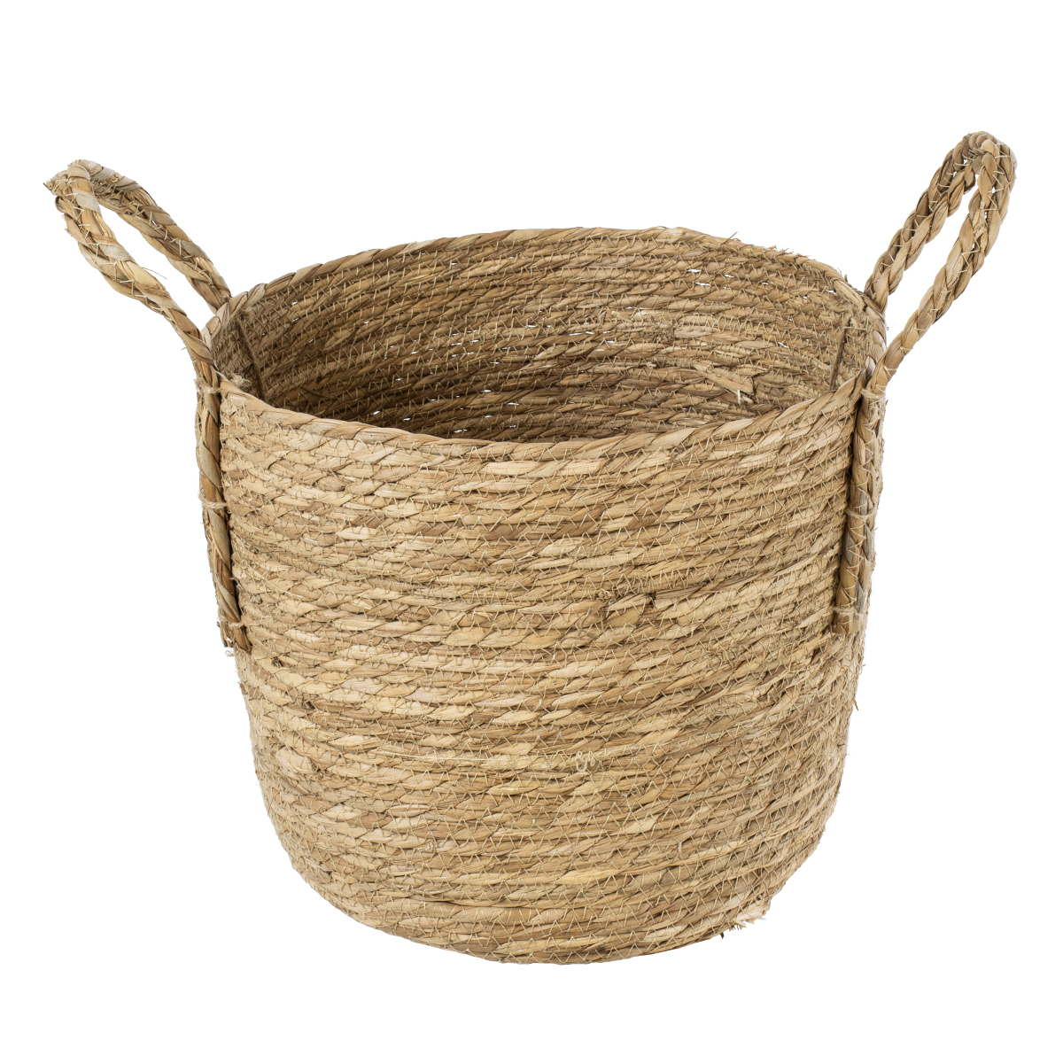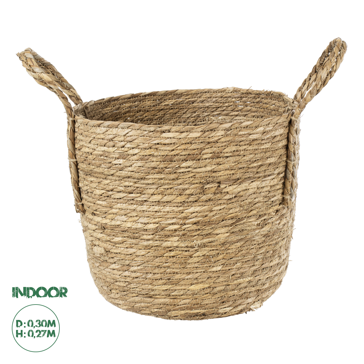 GloboStar® Artificial Garden TINOS 20291 Διακοσμητικό Πλεκτό Καλάθι - Κασπώ Γλάστρα - Flower Pot Μπεζ Φ30cm x Υ27cm