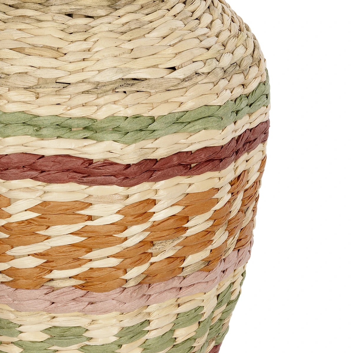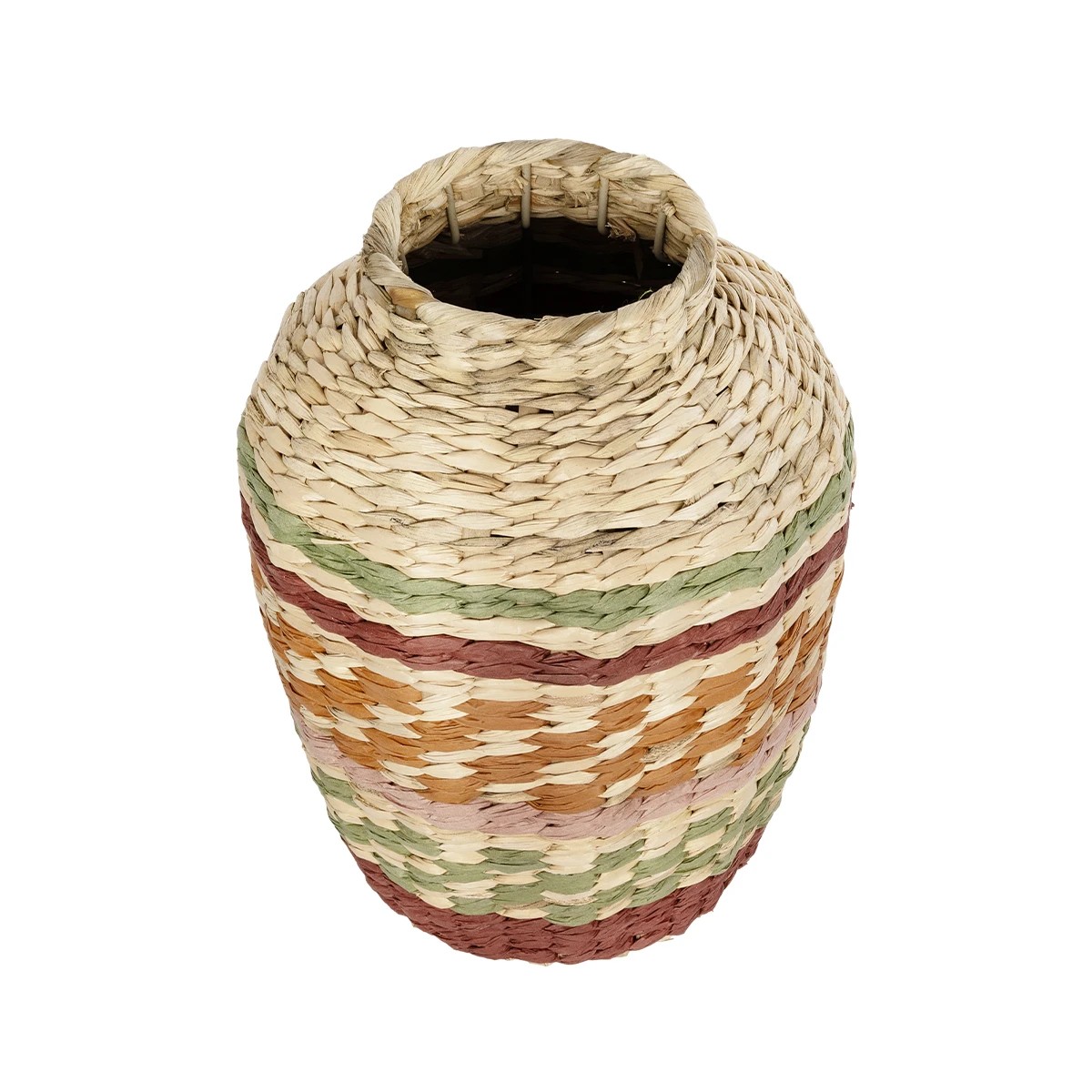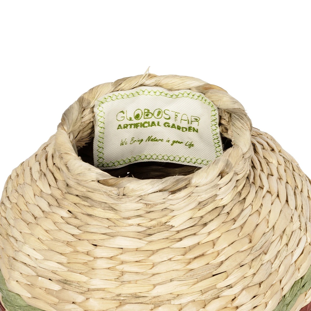 GloboStar® Artificial Garden TORONTO 21224 Διακοσμητικό Πλεκτό Καλάθι - Κασπώ Γλάστρα - Flower Pot Μπεζ με Πολύχρομο Π25 x M25 x Υ32cm