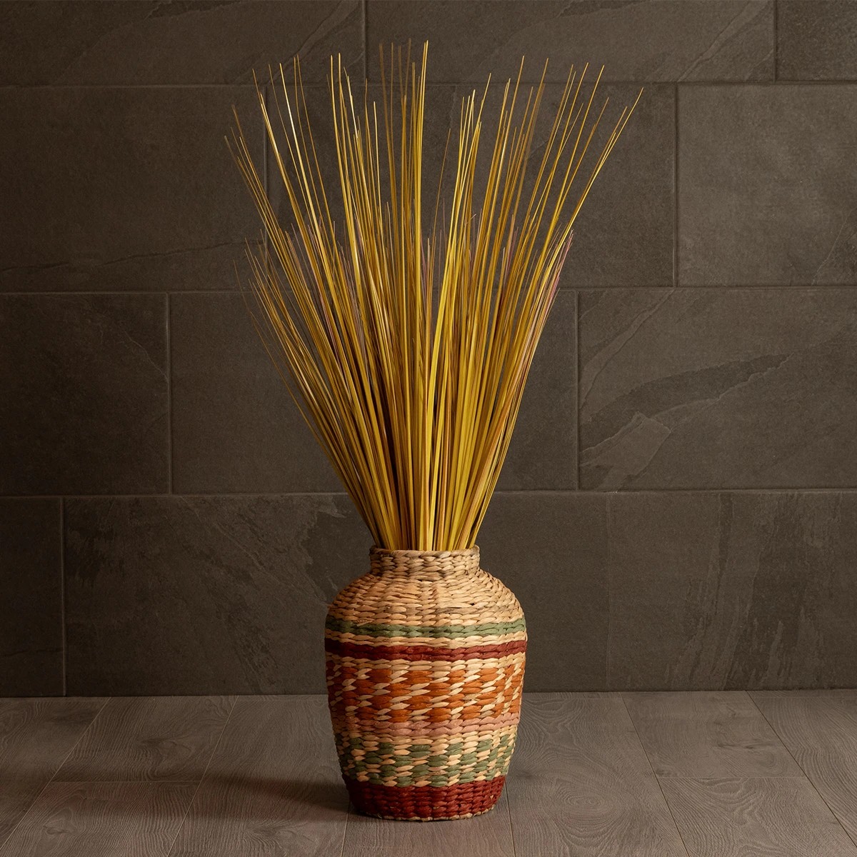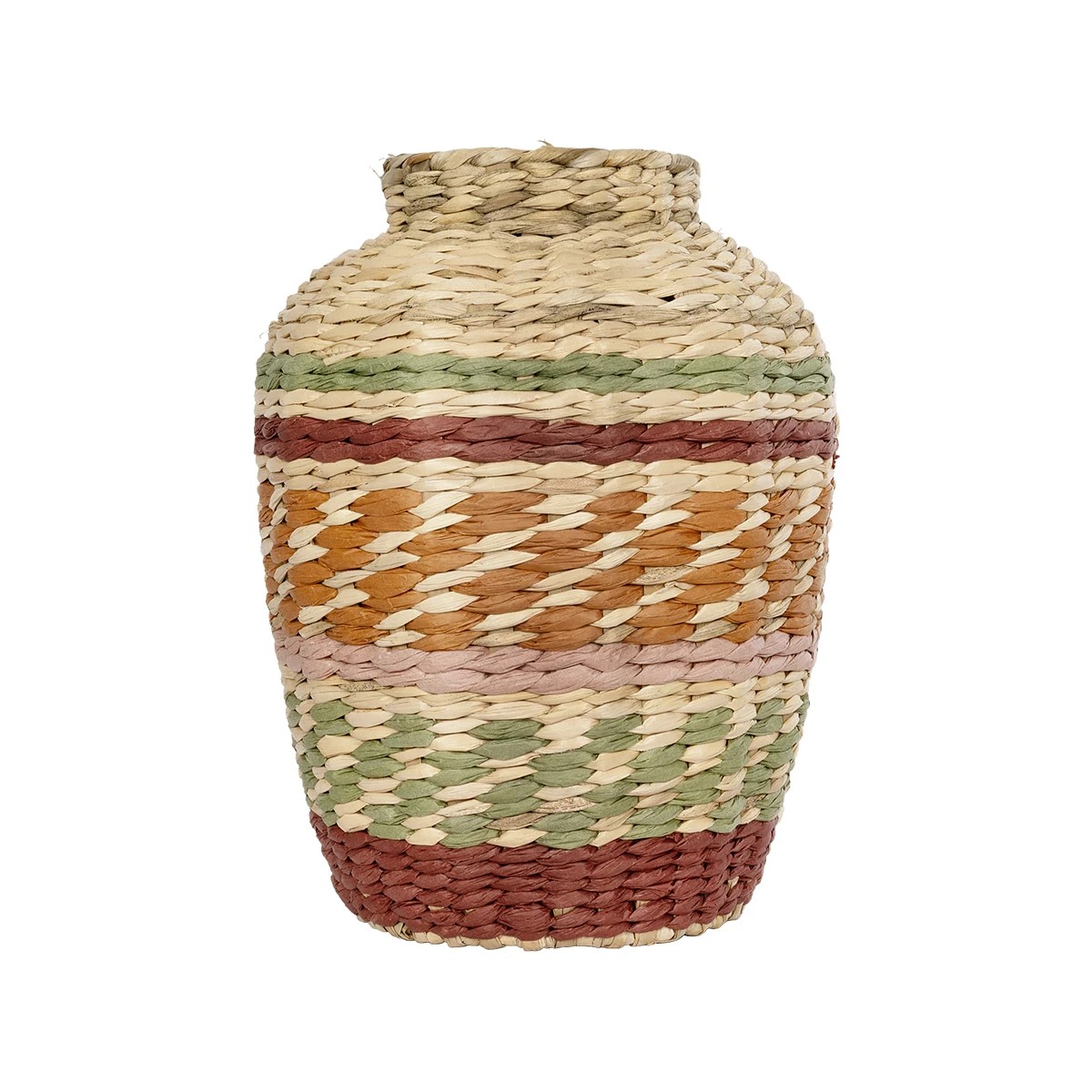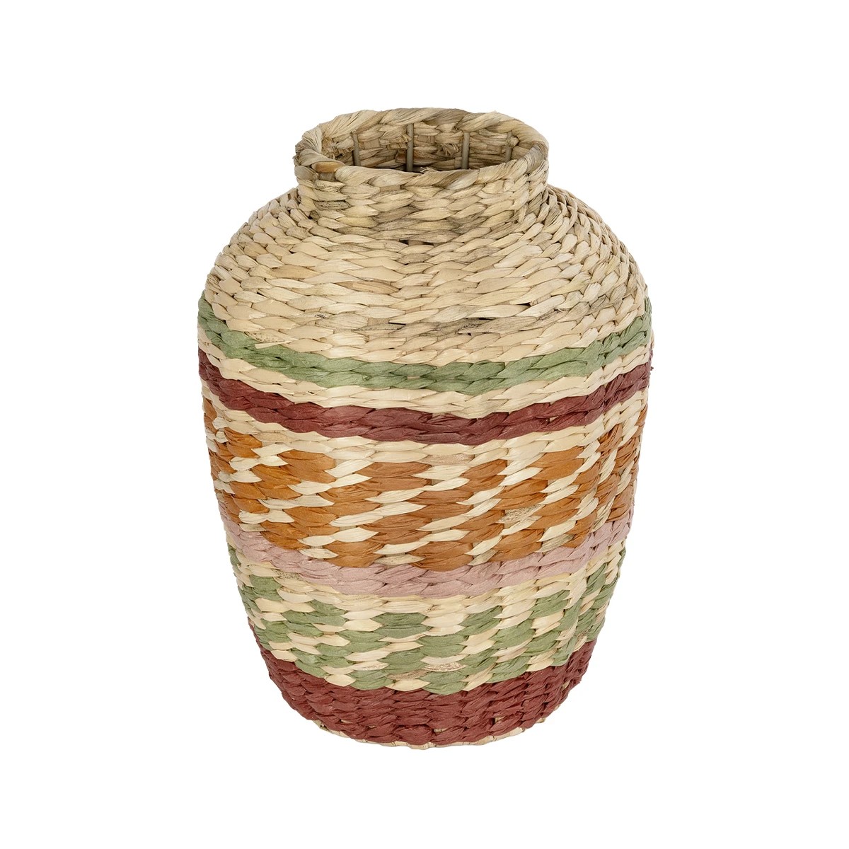 GloboStar® Artificial Garden TORONTO 21224 Διακοσμητικό Πλεκτό Καλάθι - Κασπώ Γλάστρα - Flower Pot Μπεζ με Πολύχρομο Π25 x M25 x Υ32cm