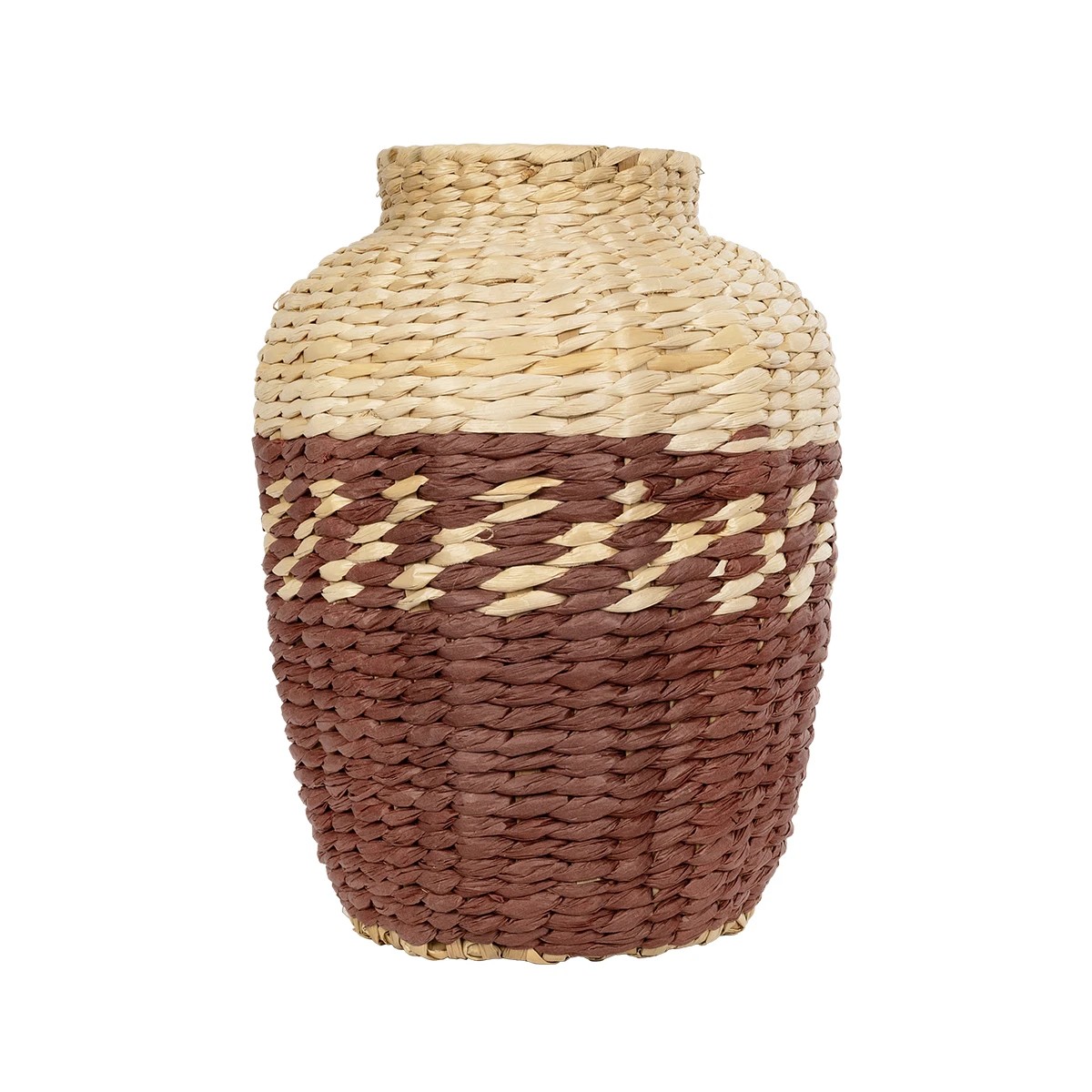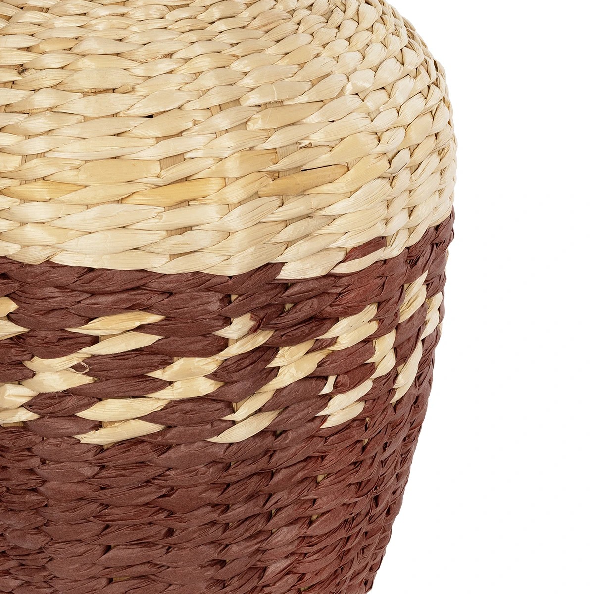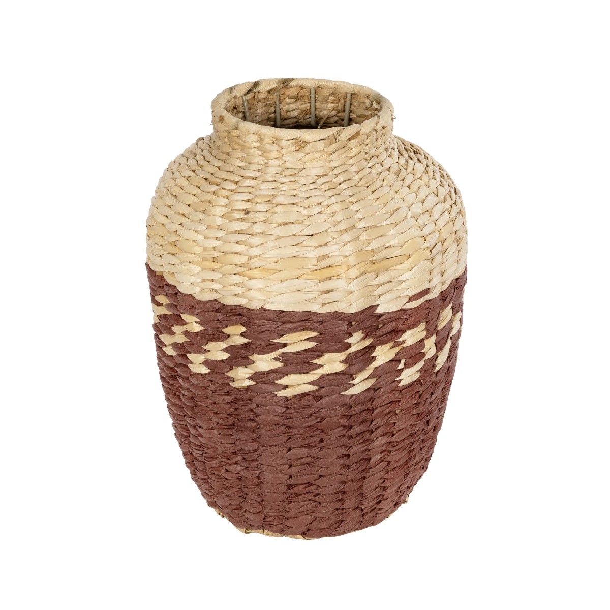 GloboStar® Artificial Garden TOULOUSE 21225 Διακοσμητικό Πλεκτό Καλάθι - Κασπώ Γλάστρα - Flower Pot Μπεζ με Κόκκινο Π25 x M25 x Υ32cm