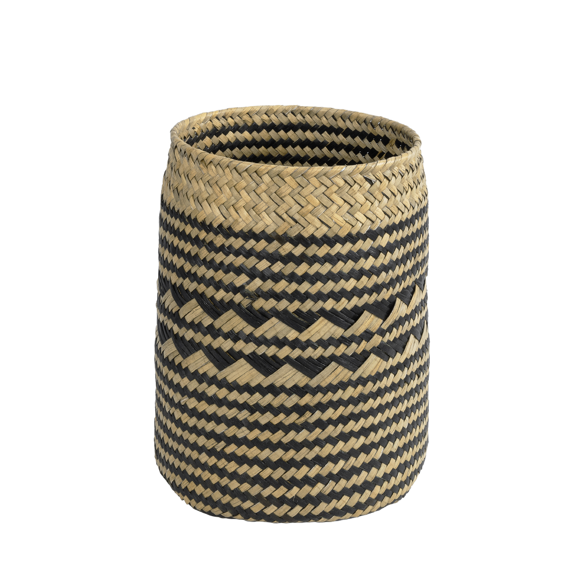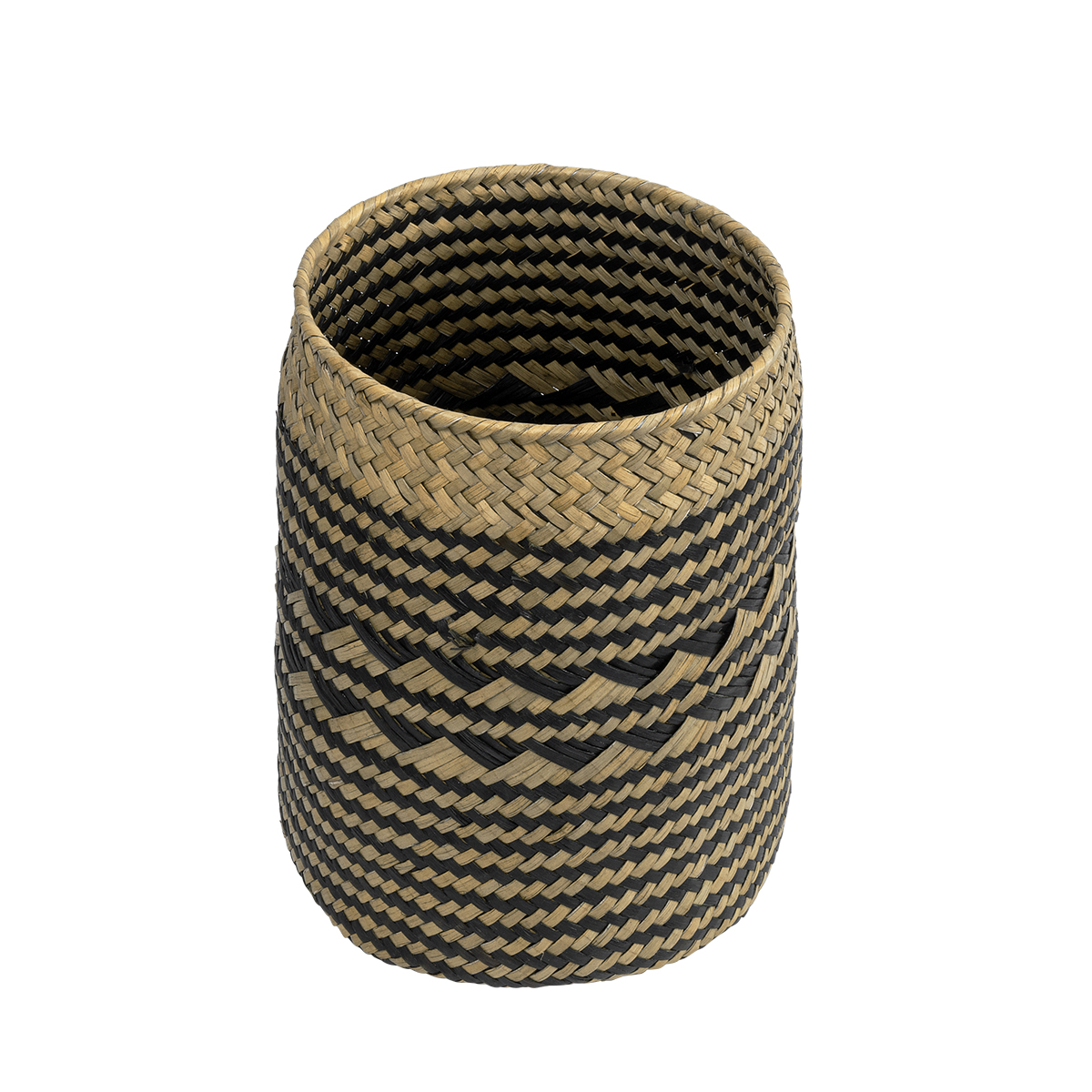 GloboStar® Artificial Garden VERMONT 20586 Διακοσμητικό Πλεκτό Καλάθι - Κασπώ Γλάστρα - Flower Pot Καφέ με Μαύρο Φ14 x Υ23cm