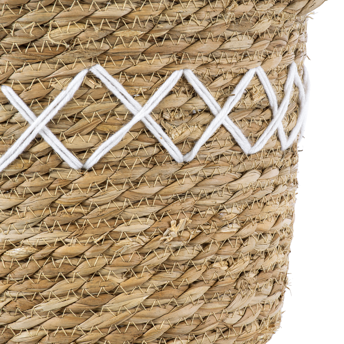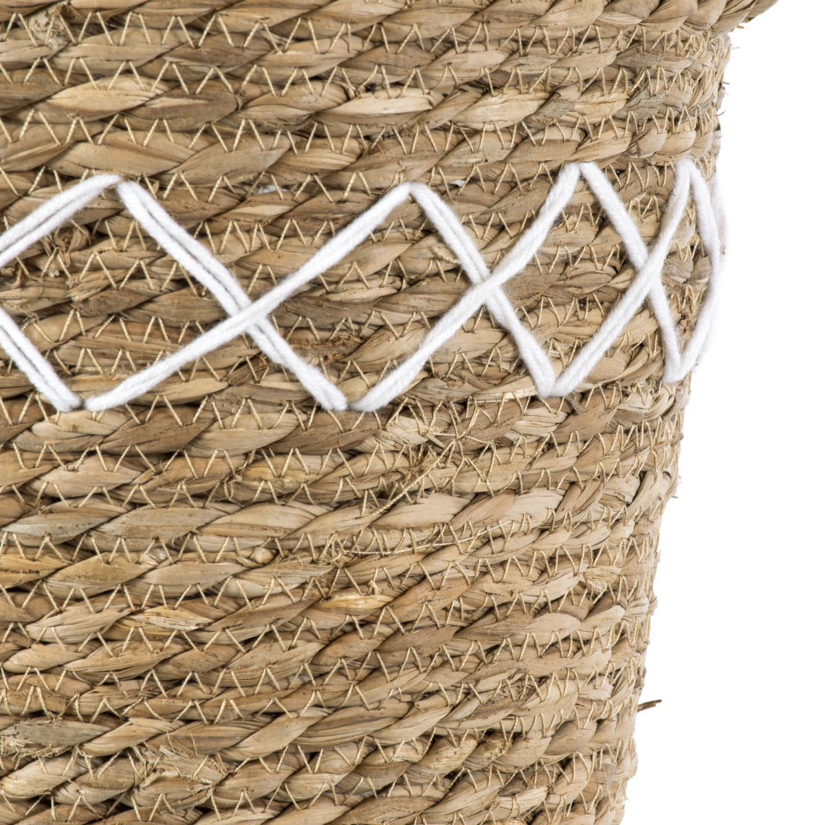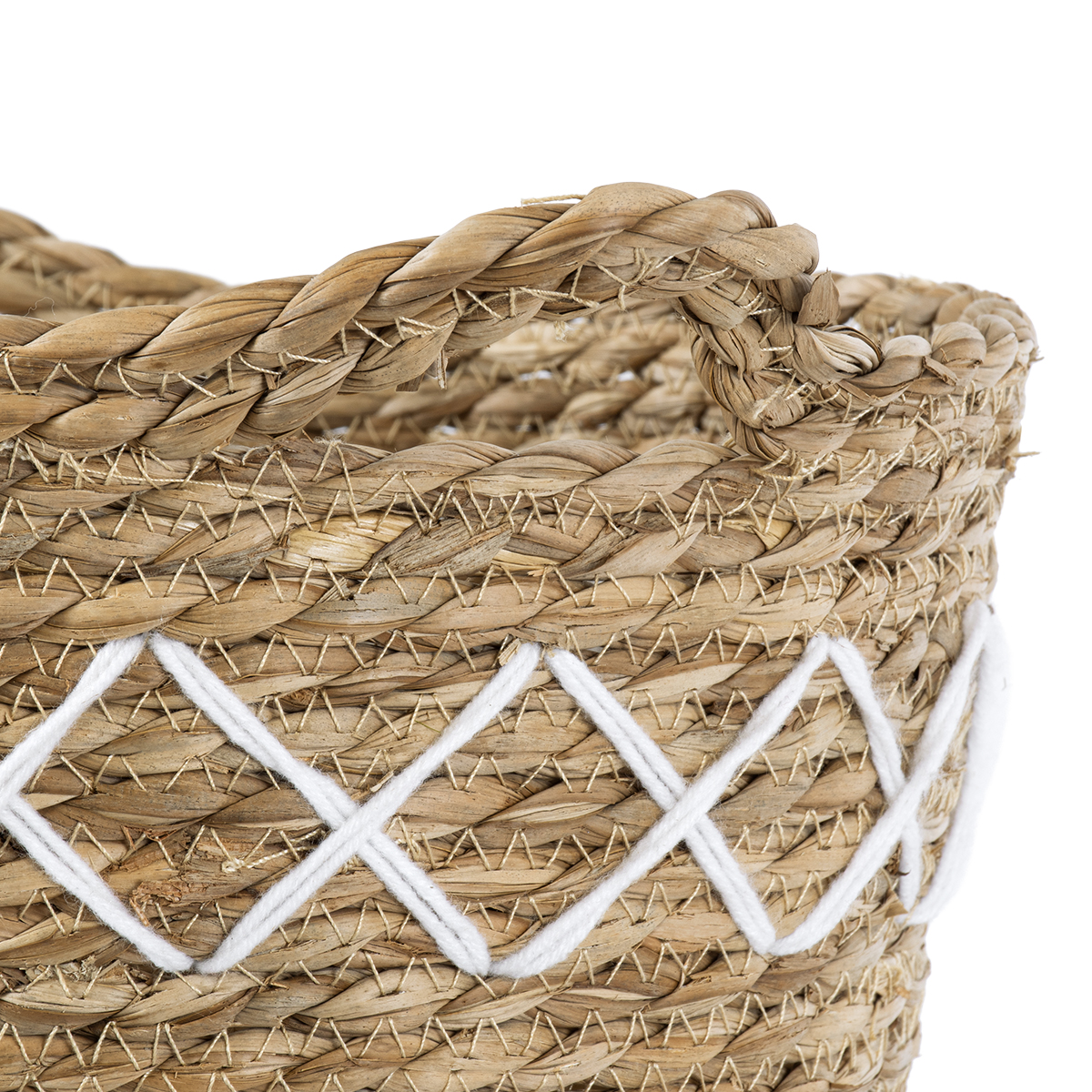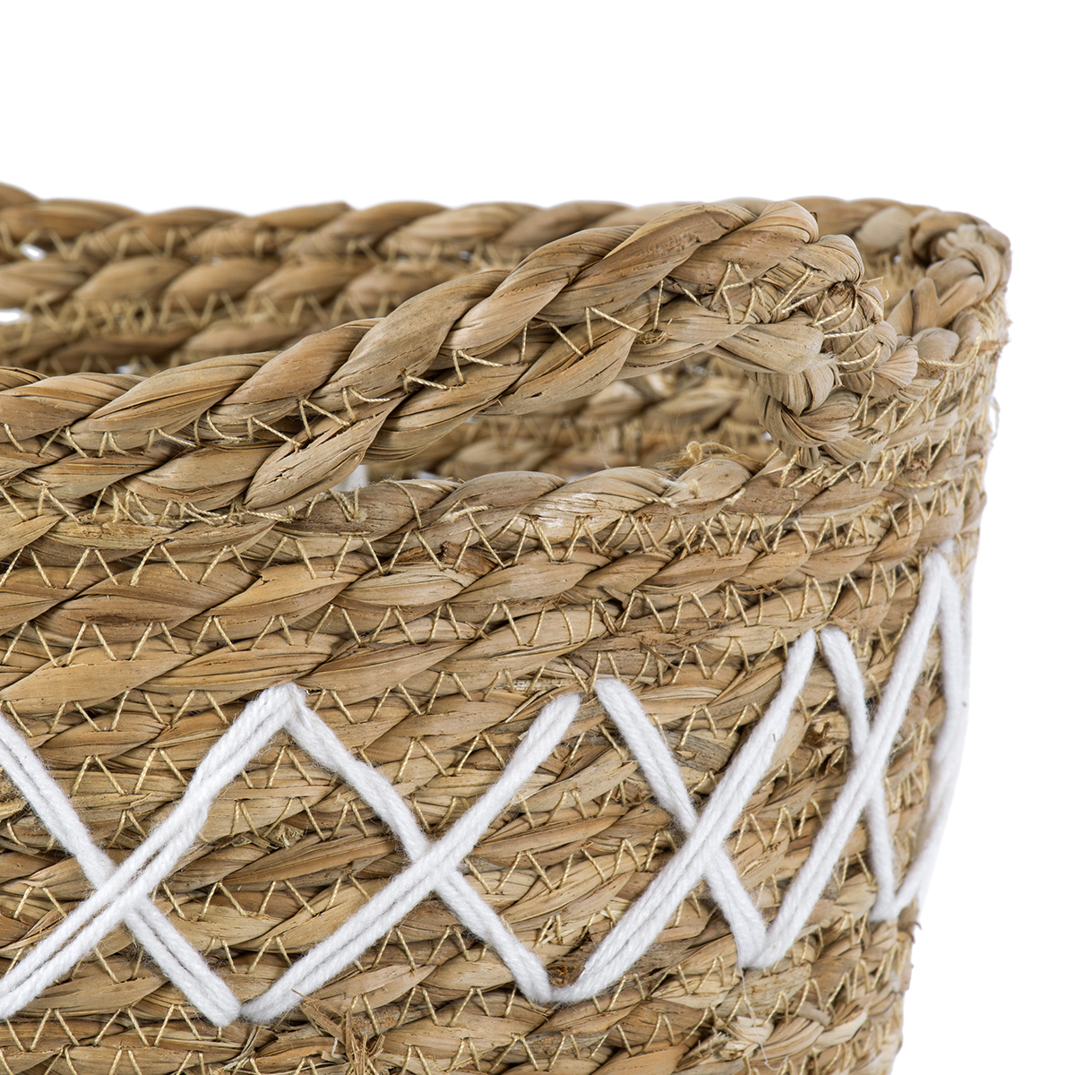 GloboStar® Artificial Garden ZAKYNTHOS 20336 ΣΕΤ 3 Διακοσμητικά Πλεκτά Καλάθια - Κασπώ Γλάστρες - Flower Pots Μπεζ με Μακραμέ A:Φ24cm x Υ20cm B:Φ28cm x Υ24cm C:Φ32cm x Υ28cm