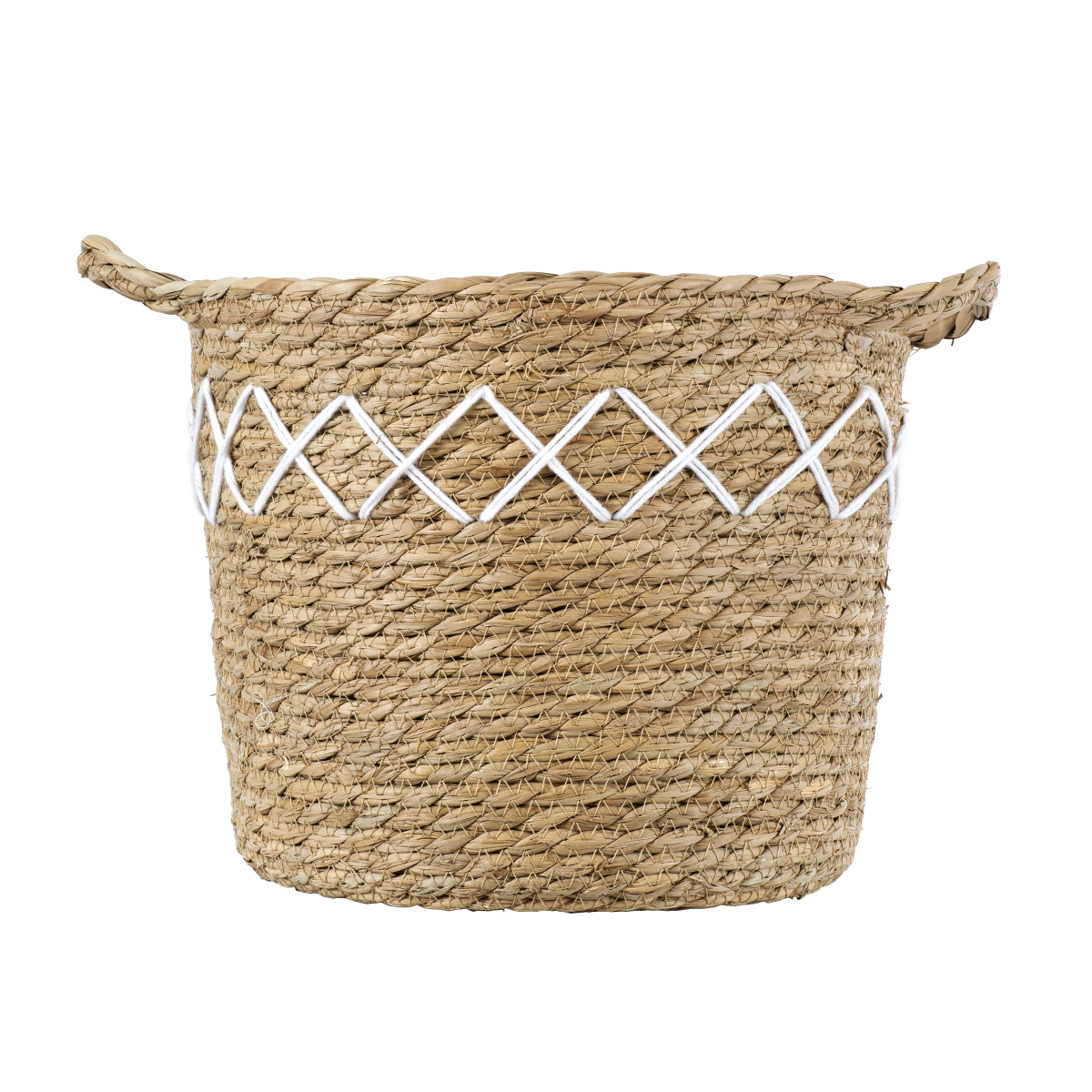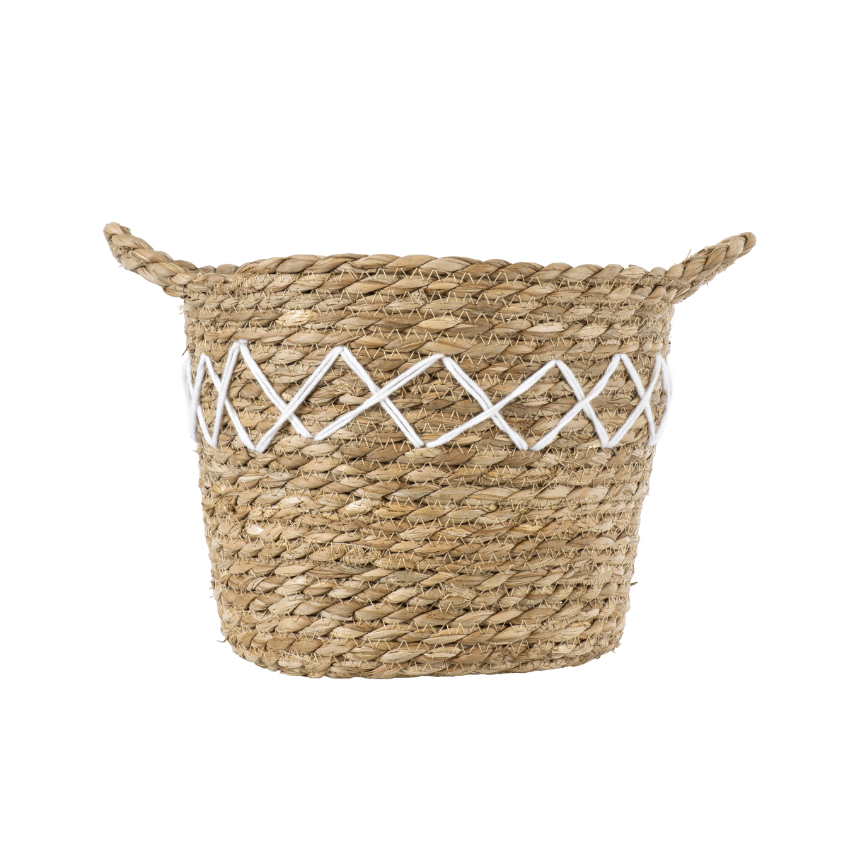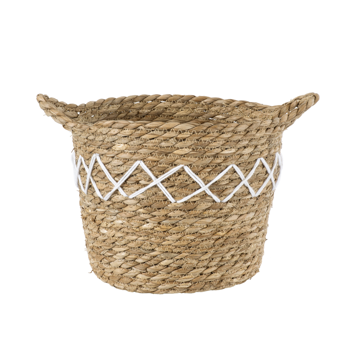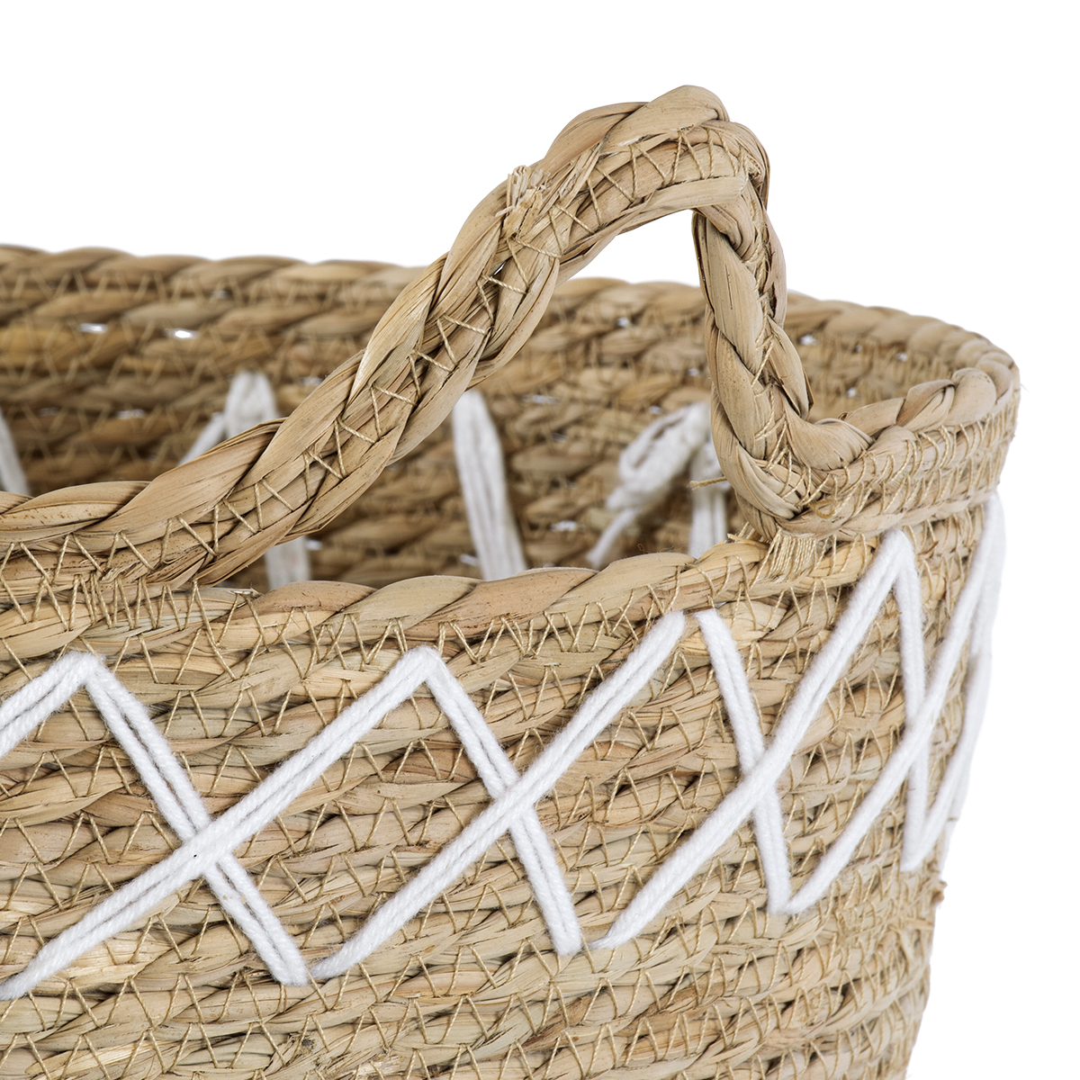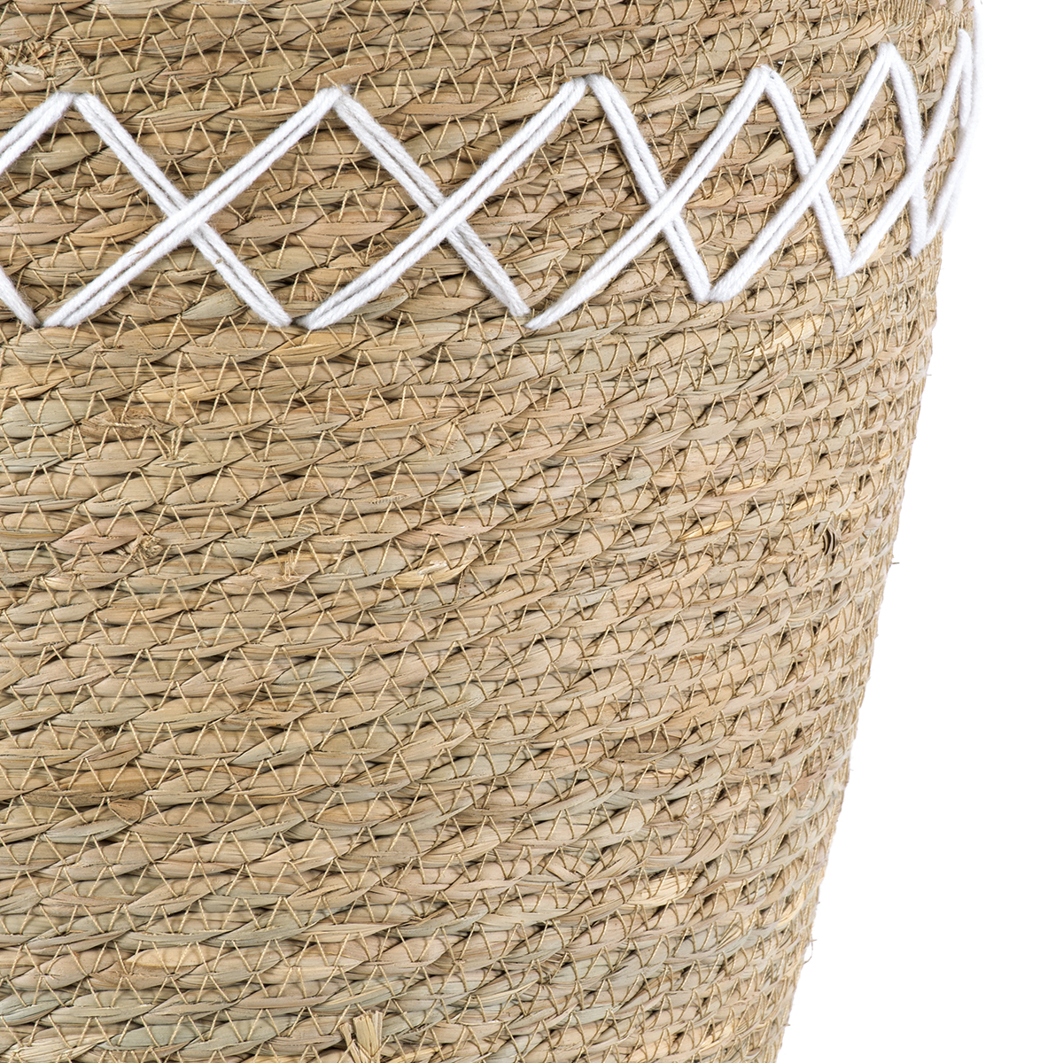 GloboStar® Artificial Garden ZAKYNTHOS 20336 ΣΕΤ 3 Διακοσμητικά Πλεκτά Καλάθια - Κασπώ Γλάστρες - Flower Pots Μπεζ με Μακραμέ A:Φ24cm x Υ20cm B:Φ28cm x Υ24cm C:Φ32cm x Υ28cm