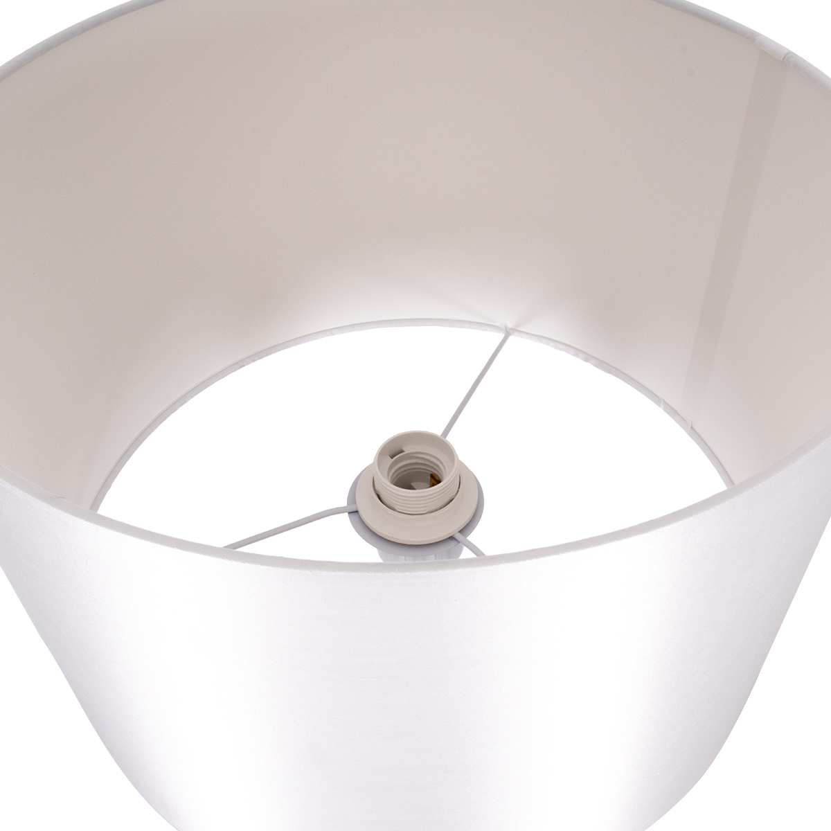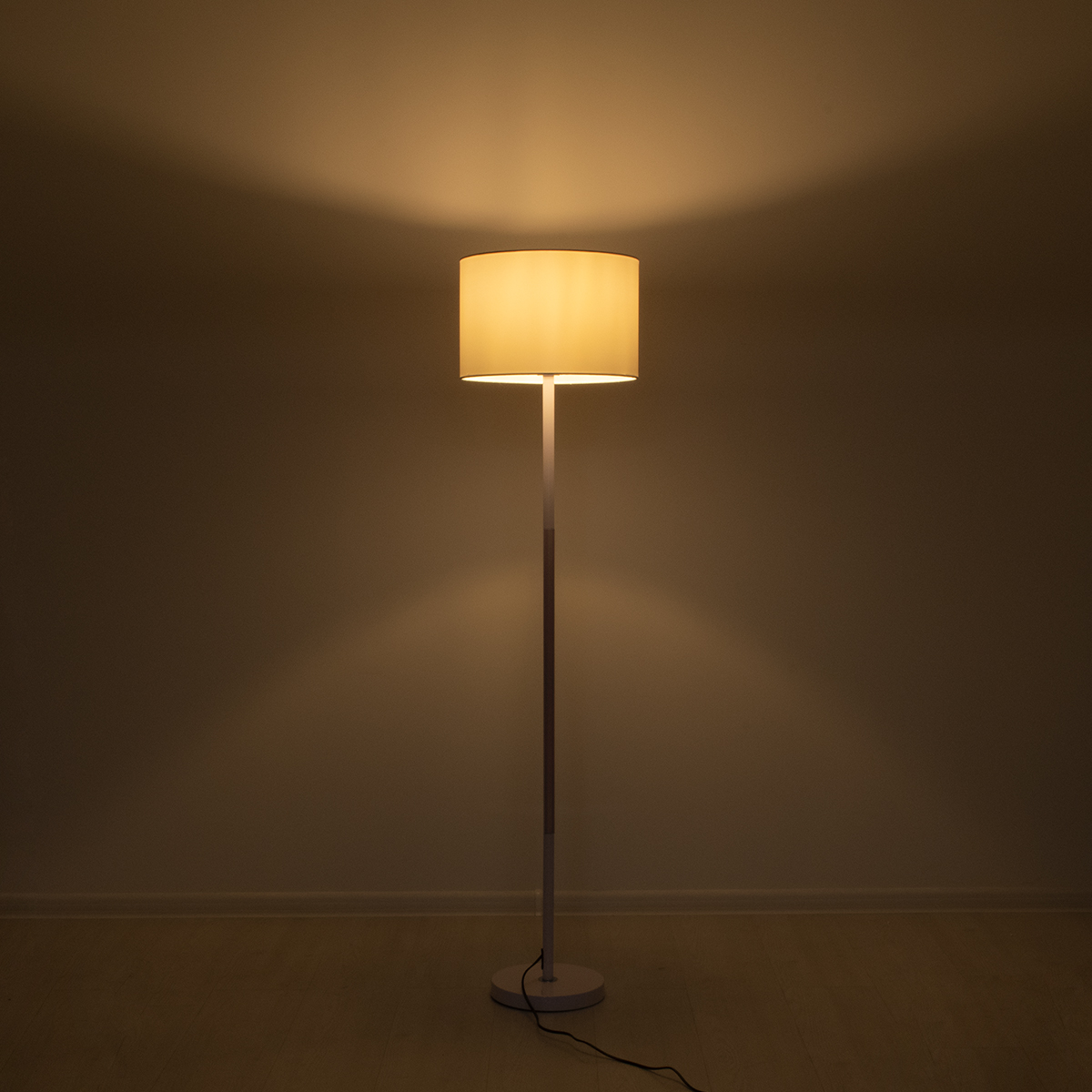 GloboStar® ASHLEY 00826 Μοντέρνο Επιδαπέδιο Φωτιστικό Μονόφωτο 1 x E27 IP20 Λευκό Μέταλλο, Λευκό Ύφασμα & Μπεζ Ξύλο - Μ40 x Π40 x Υ145cm
