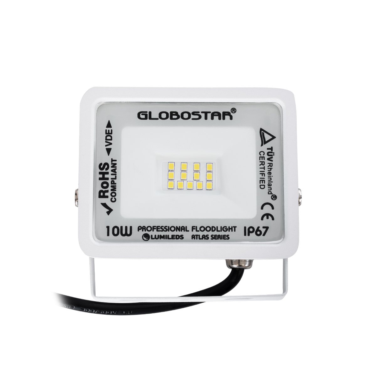 GLOBOSTAR® ATLAS 61405 Προβολέας LED 10W 1200lm 120° AC 220-240V Αδιάβροχο IP67 Φυσικό Λευκό 4500K - Lumileds SMD Chip - TÜV Rheinland Certified - Λευκό Ματ - Μ10 x Π2 x Υ8cm - 5 Χρόνια Εγγύηση