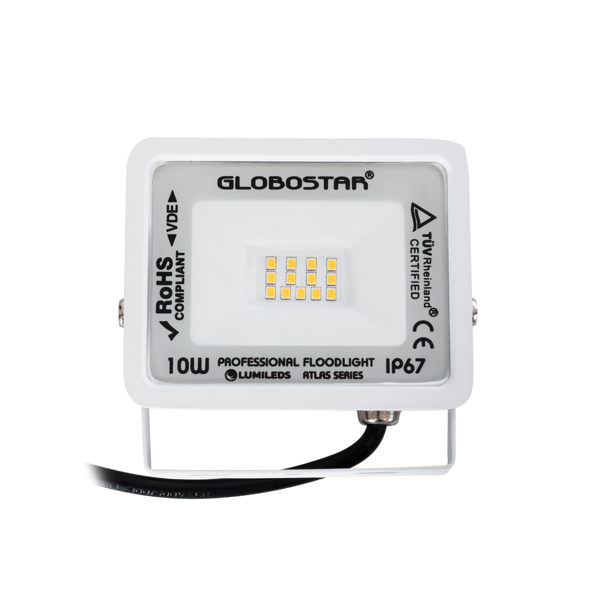 GLOBOSTAR® ATLAS 61406 Προβολέας LED 10W 1150lm 120° AC 220-240V Αδιάβροχο IP67 Θερμό Λευκό 2700K - Lumileds SMD Chip - TÜV Rheinland Certified - Λευκό Ματ - Μ10 x Π2 x Υ8cm - 5 Χρόνια Εγγύηση