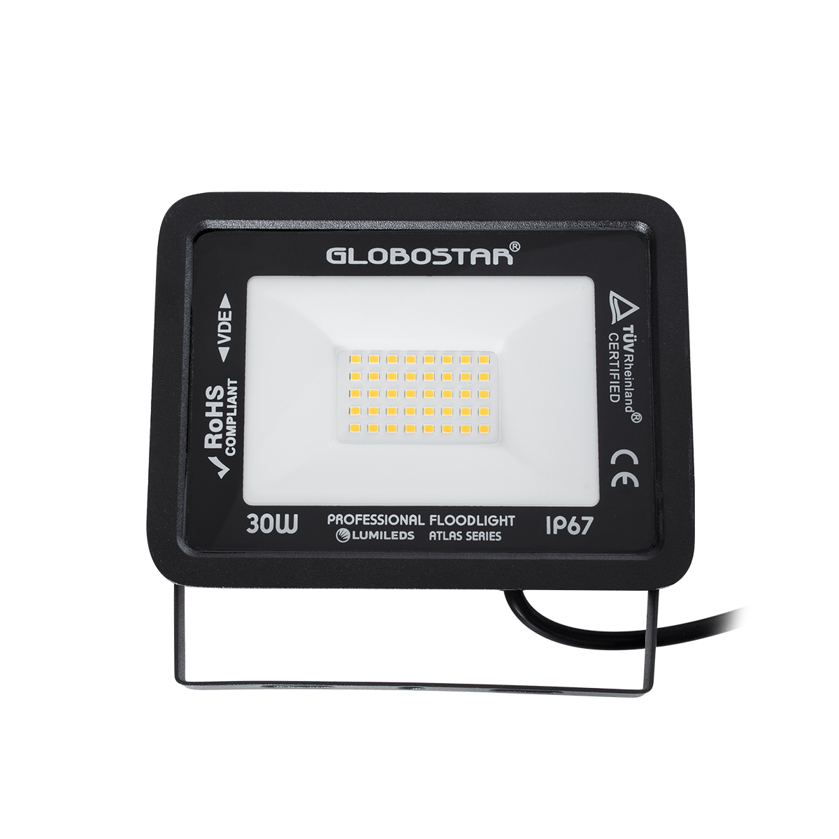 GLOBOSTAR® ATLAS 61418 Προβολέας LED 30W 3450lm 120° AC 220-240V Αδιάβροχο IP67 Θερμό Λευκό 2700K - Lumileds SMD Chip - TÜV Rheinland Certified - Μαύρο Ματ - Μ16 x Π2.5 x Υ12.5cm - 5 Χρόνια Εγγύηση