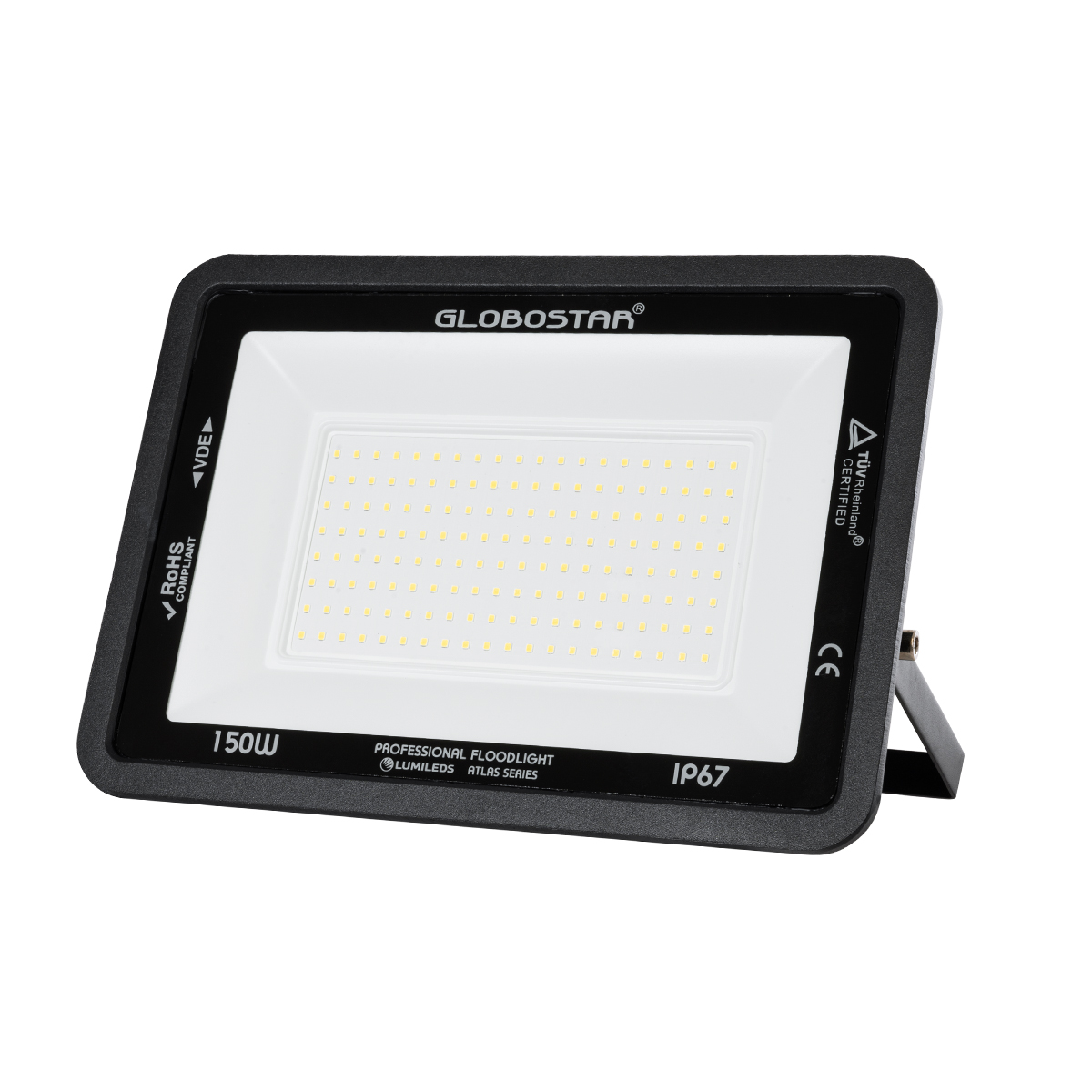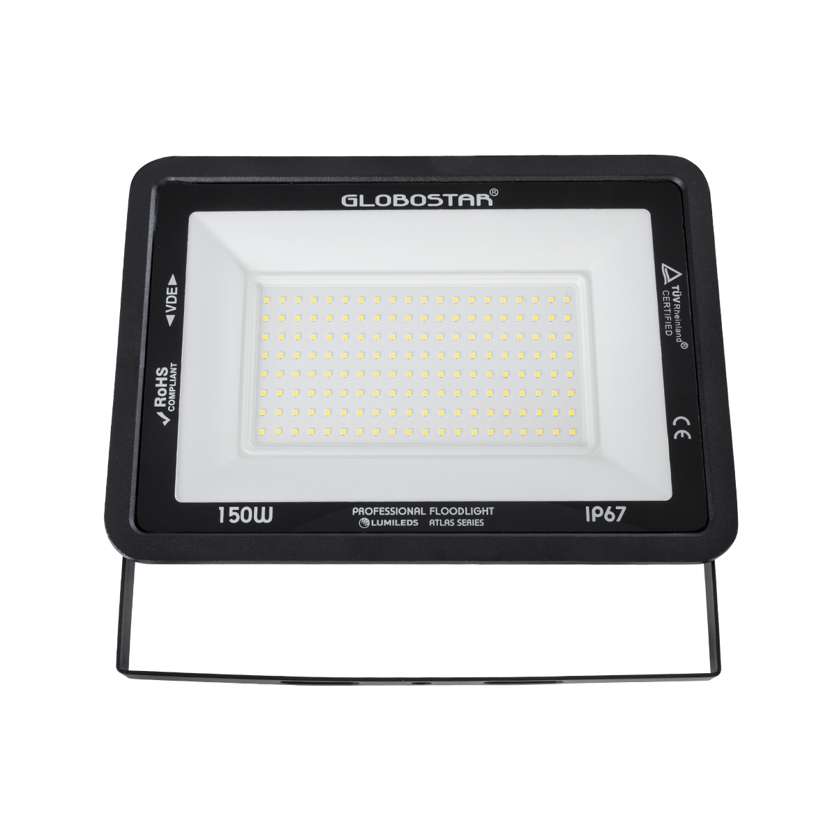 GLOBOSTAR® ATLAS 61429 Προβολέας LED 150W 18000lm 120° AC 220-240V Αδιάβροχο IP67 Φυσικό Λευκό Ματ 4500K - Lumileds SMD Chip - TÜV Rheinland Certified - Μαύρο Ματ - Μ32 x Π4 x Υ23cm - 5 Χρόνια Εγγύηση