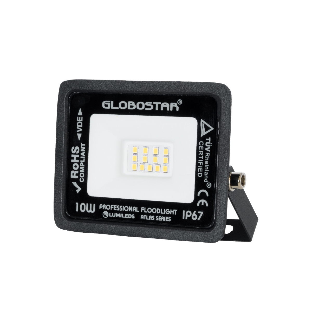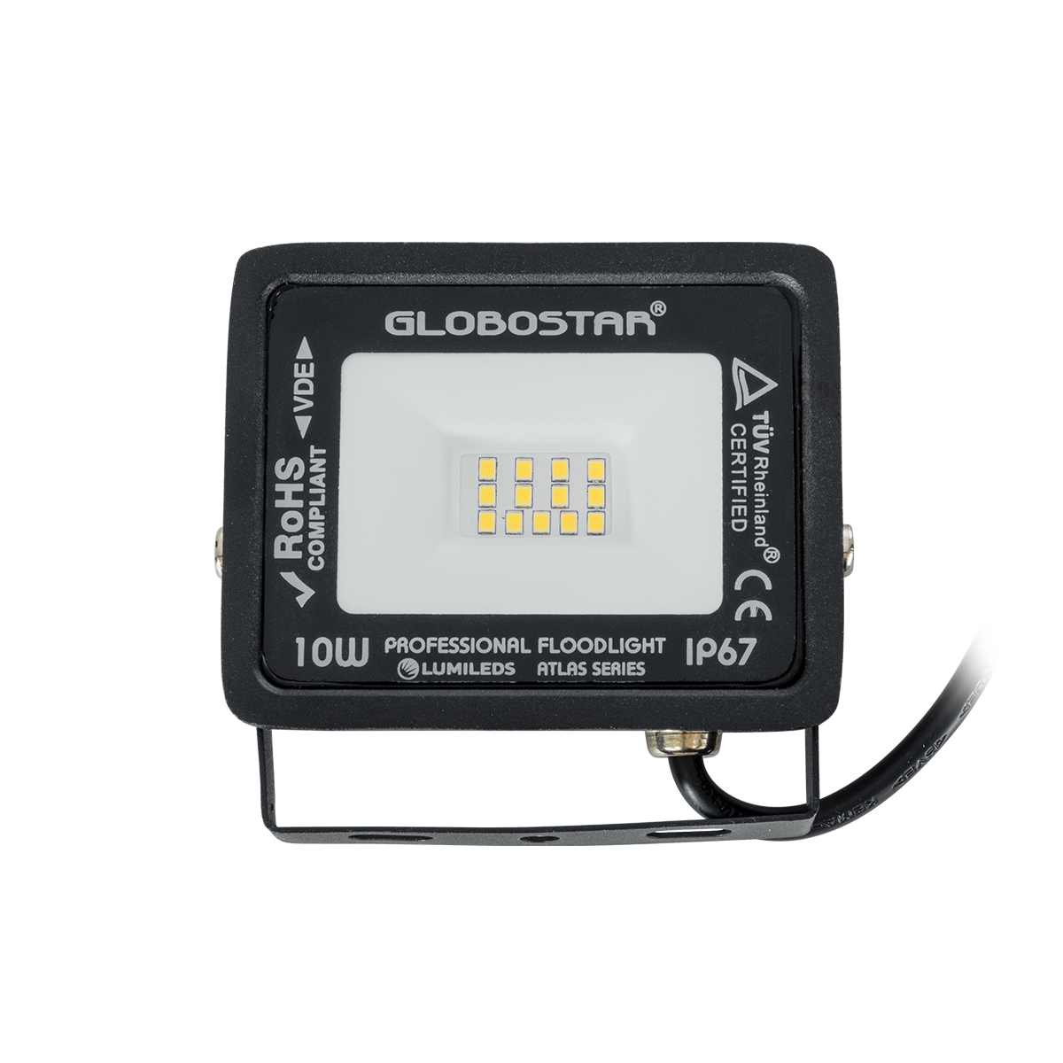 GLOBOSTAR® ATLAS 61517 Προβολέας LED 10W 1150lm 120° AC 220-240V Αδιάβροχο IP67 Θερμό Λευκό 2700K - Lumileds SMD Chip - TÜV Rheinland Certified - Μαύρο Ματ - Μ10 x Π2 x Υ8cm - 5 Χρόνια Εγγύηση