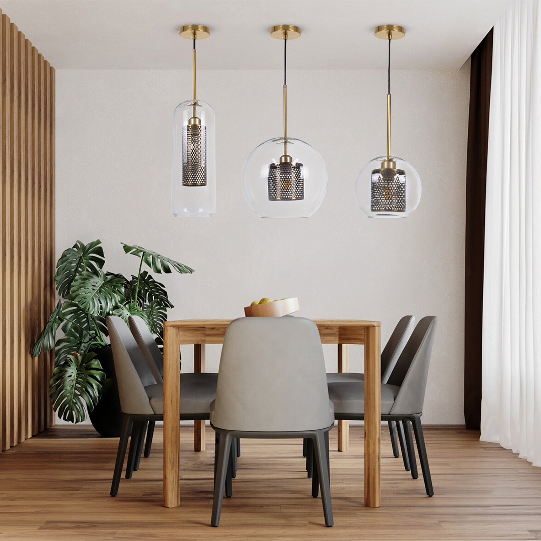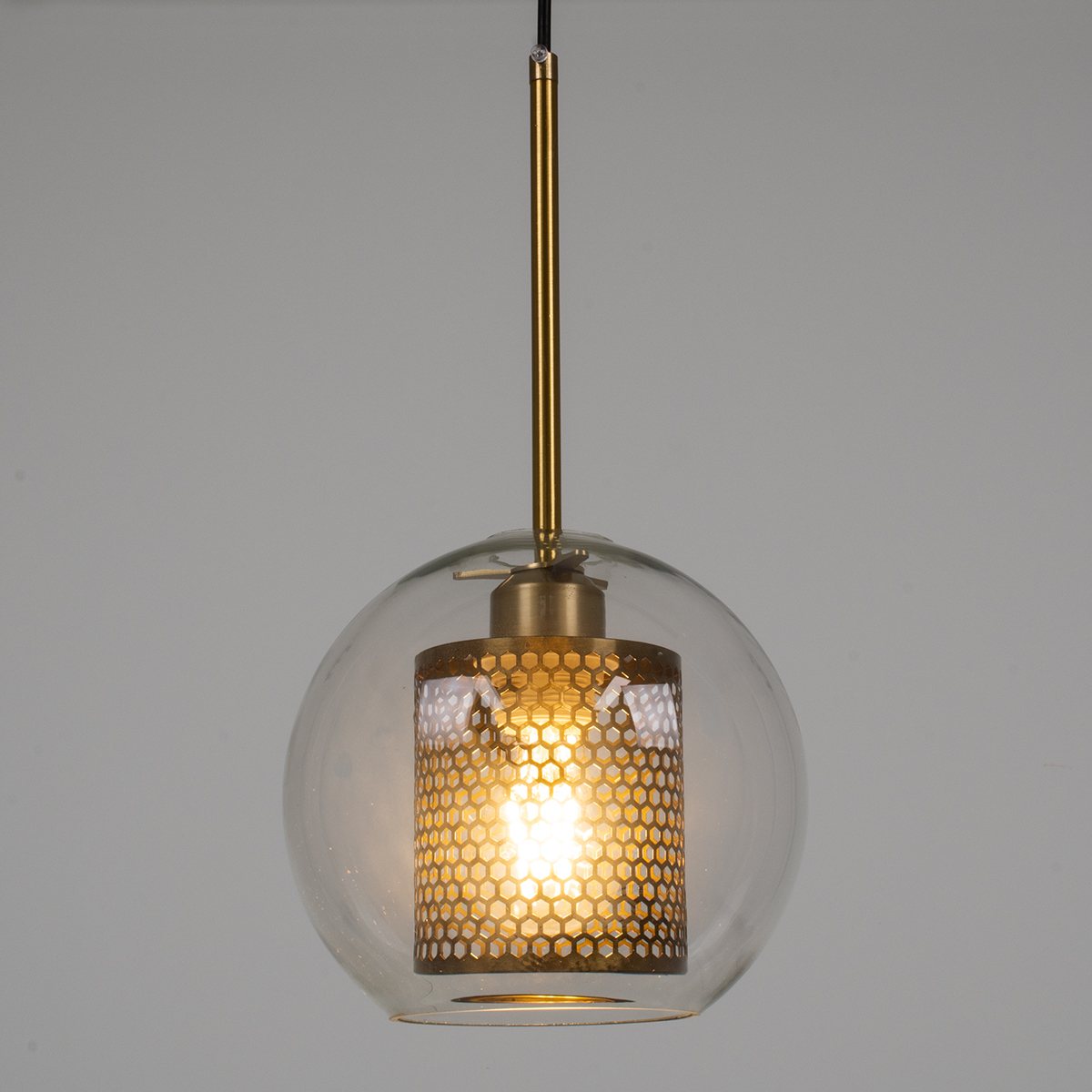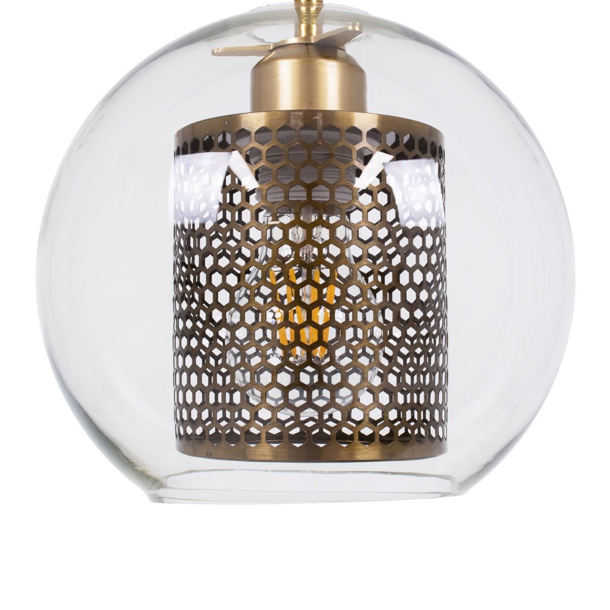 GLOBOSTAR® AVERY 00739 Μοντέρνο Κρεμαστό Φωτιστικό Οροφής με Ντουί 1 x E27 AC 220-240V IP20 - Διάφανο & Χρυσό - Μ18 x Π18 x Υ38cm