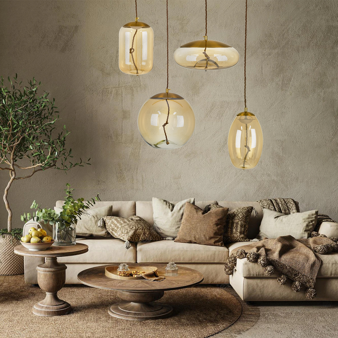 GLOBOSTAR® ΑΧΤΟΝ 00754 Μοντέρνο Κρεμαστό Φωτιστικό Οροφής LED 7W 500lm 180° AC 220-240V IP20 Θερμό Λευκό 2700K - Sanan SMD Chip - Μελί & Χρυσό - Μ17 x Π17 x Υ18cm - 2 Χρόνια Εγγύηση