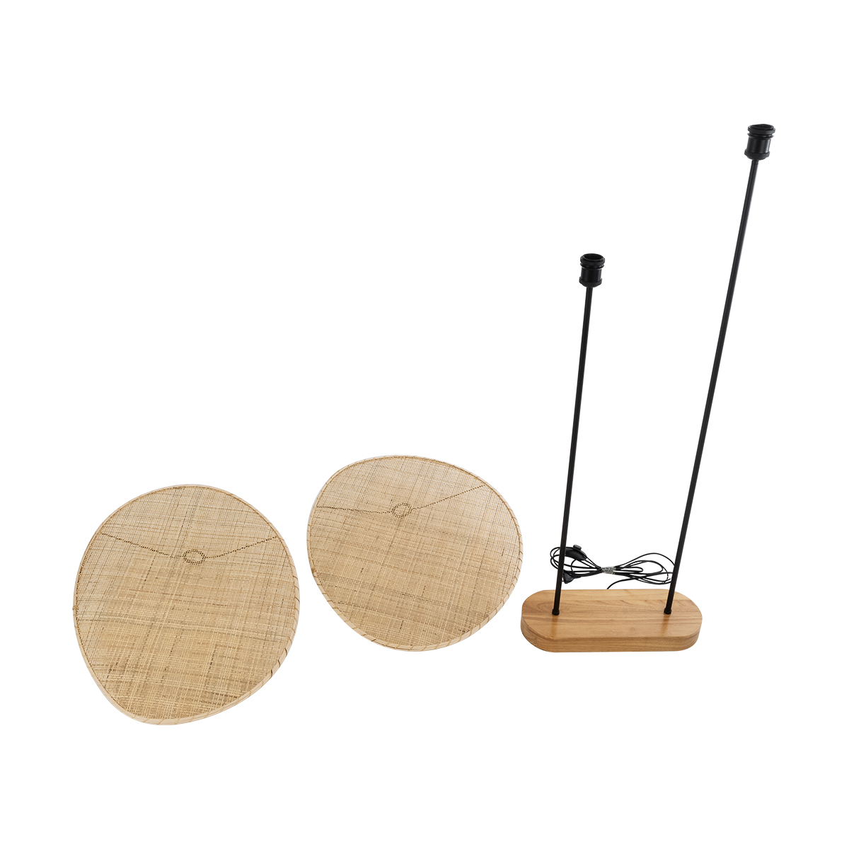 GloboStar® AZUL 02232 Boho Επιδαπέδιο Φωτιστικό Διφωτο 2 x E27 IP20 Μπεζ Ξύλο με Μαύρο Μέταλλο - Μ90 x Π17 x Υ170cm