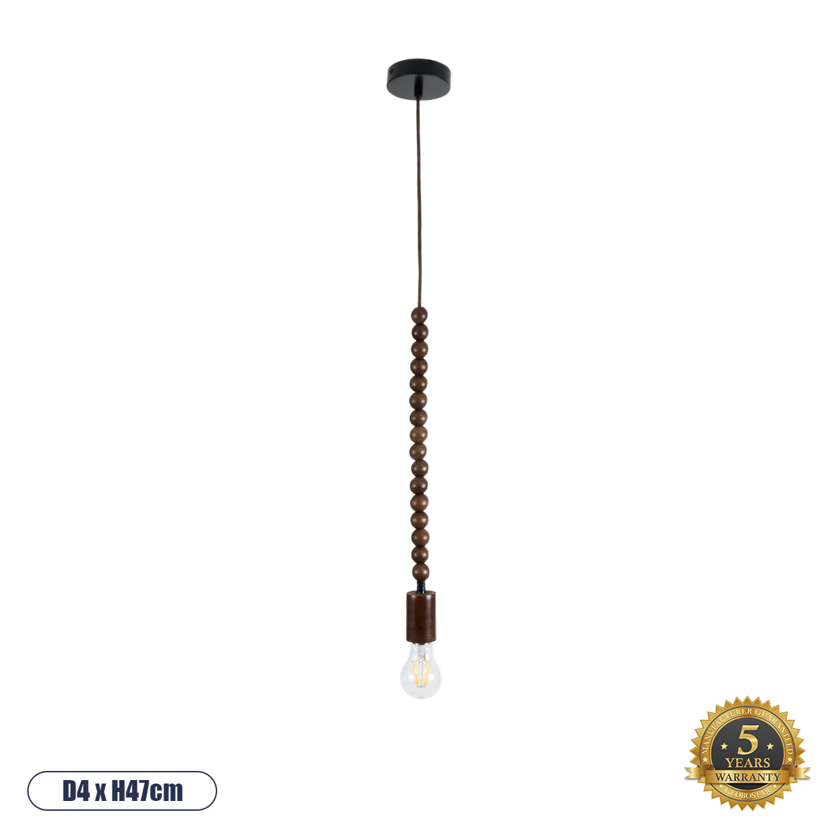 GLOBOSTAR® BEADS 00694 Vintage Κρεμαστό Φωτιστικό Οροφής με Ντουί 1 x E27 AC 220-240V IP20 - Καφέ - Μ4 x Π4 x Υ47cm