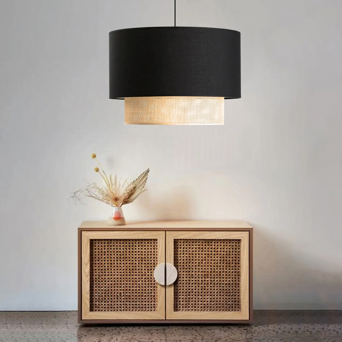 GLOBOSTAR® BIGGIE 204-0098 Μοντέρνο Κρεμαστό Φωτιστικό Οροφής με Ντουί 1 x E27 AC 220-240V IP20 - Μαύρο & Μπεζ - Μ30 x Π30 x Υ26cm