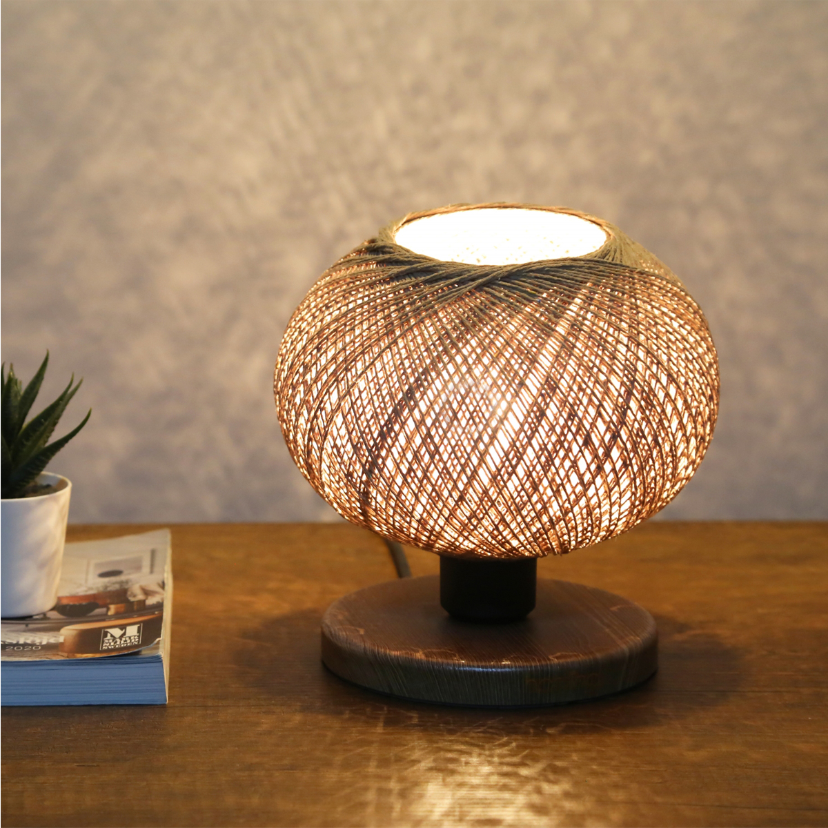 GloboStar® BOWL 204-0087 Μοντέρνο Eπιτραπέζιο Φωτιστικό Πορτατίφ Μονόφωτο 1 x E27 IP20 Καφέ Ξύλο με Μπεζ Σνοινί - Μ19 x Π19 x Υ22cm