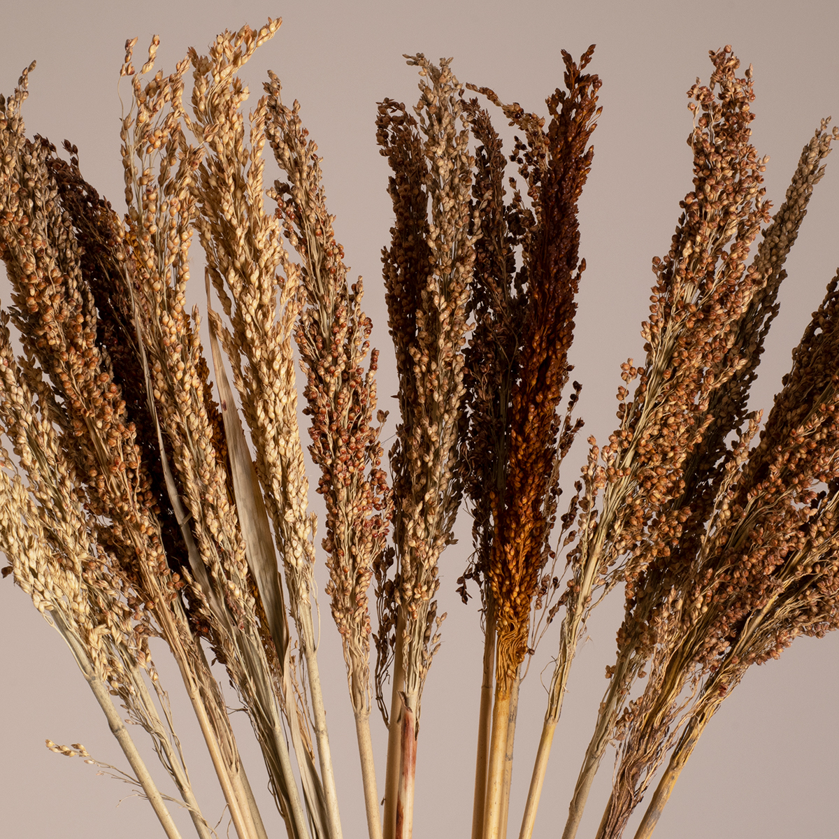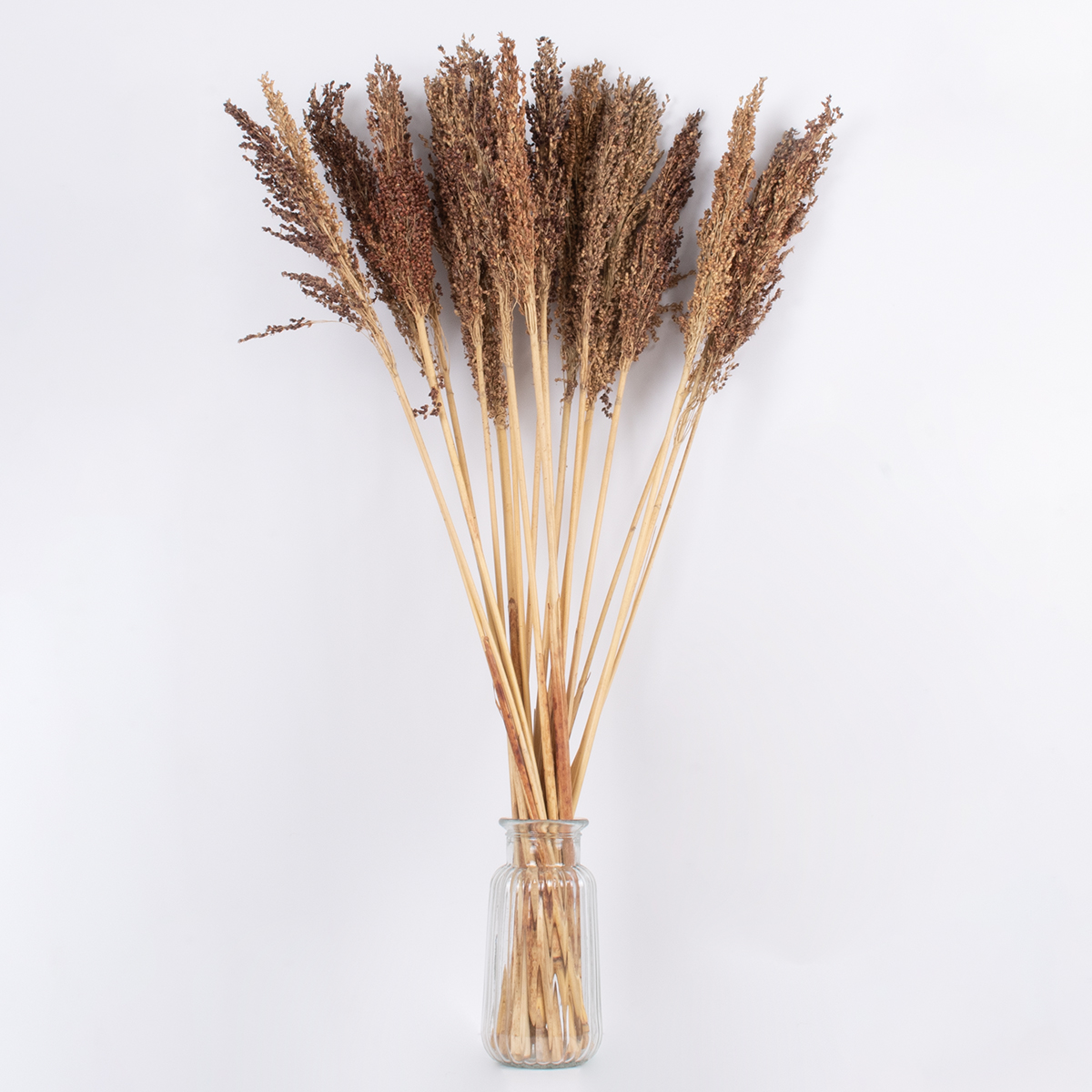 GloboStar® BROOMCORN 36555 Αποξηραμένο Φυτό Γλυκό Σόργο - Μπουκέτο Διακοσμητικών Κλαδιών Καφέ Υ100cm - Σετ 20 τμχ