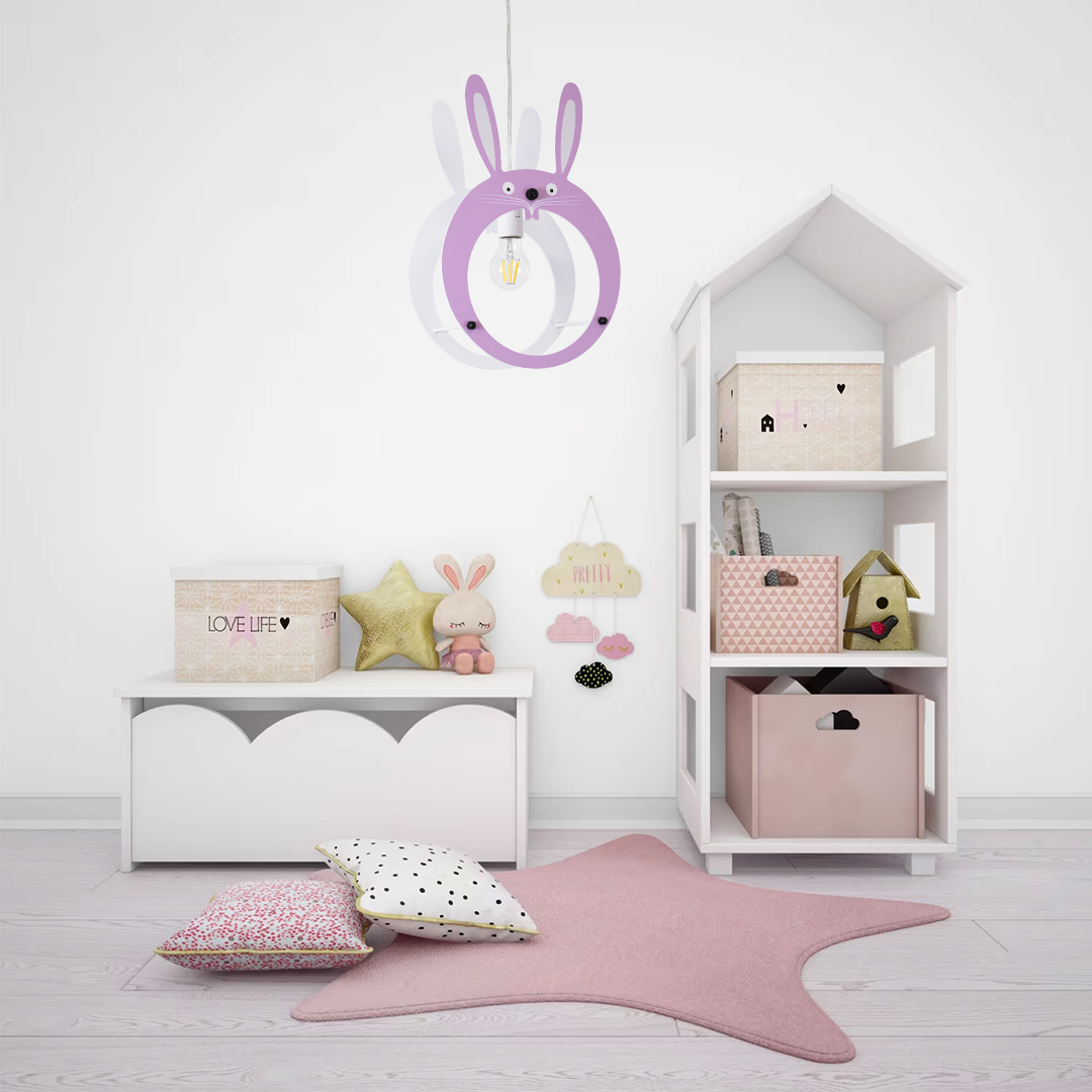 GLOBOSTAR® BUNNY 61577 Παιδικό Κρεμαστό Φωτιστικό Οροφής με Ντουί 1 x E27 AC 220-240V IP20 - Ροζ & Λευκό - Μ27.2 x Π15.5 x Υ40cm