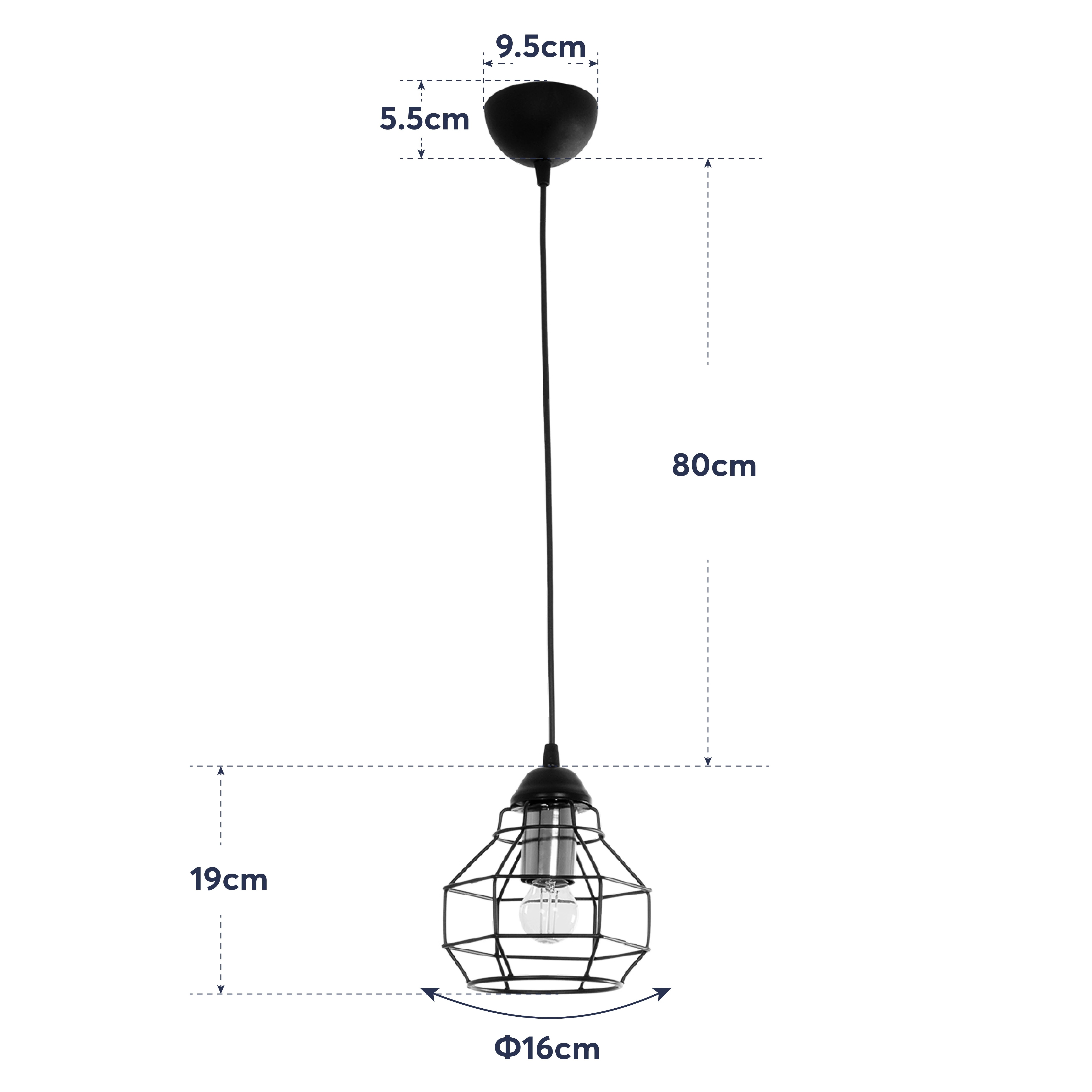 GLOBOSTAR® BUR 204-0180 Μοντέρνο Κρεμαστό Φωτιστικό Οροφής Μονόφωτο 1 x E27 AC 220-240V IP20 Μαύρο - Μ16 x Π16 x Υ19cm