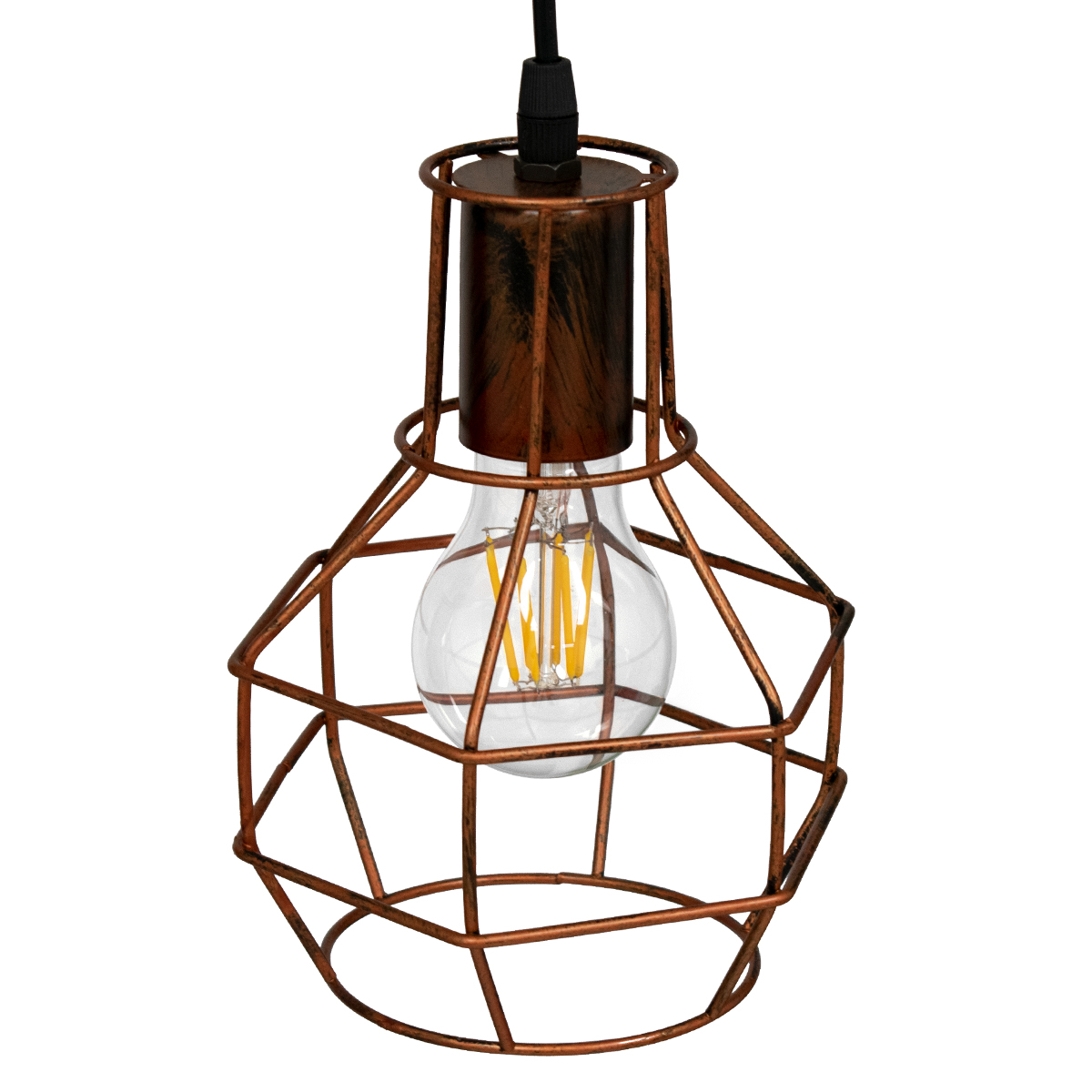 GLOBOSTAR® CAGE 00866 Vintage Κρεμαστό Φωτιστικό Οροφής με Ντουί 1 x E27 AC 220-240V IP20 - Χάλκινο - Μ15 x Π15 x Υ22cm