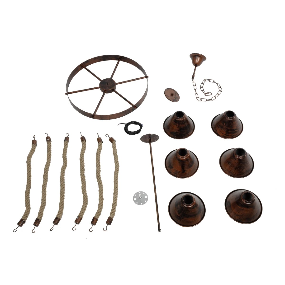 GLOBOSTAR® CAMELOT 10001191 Vintage Κρεμαστό Φωτιστικό Οροφής με Ντουί 6 x E27 AC 220-240V IP20 - Χάλκινο & Μπεζ - Μ95 x Π95 x Υ65cm