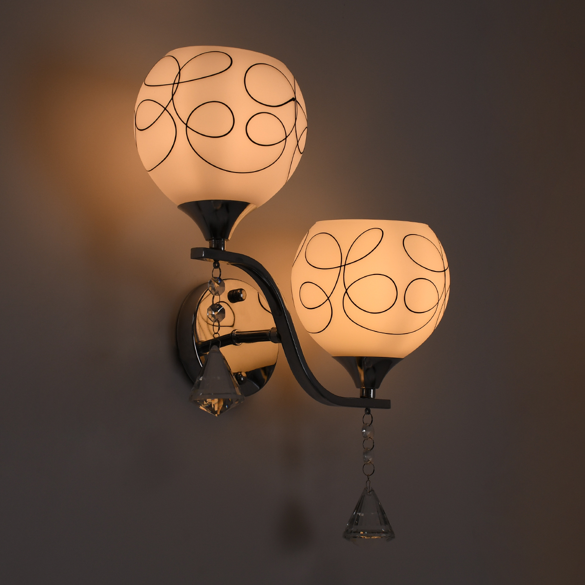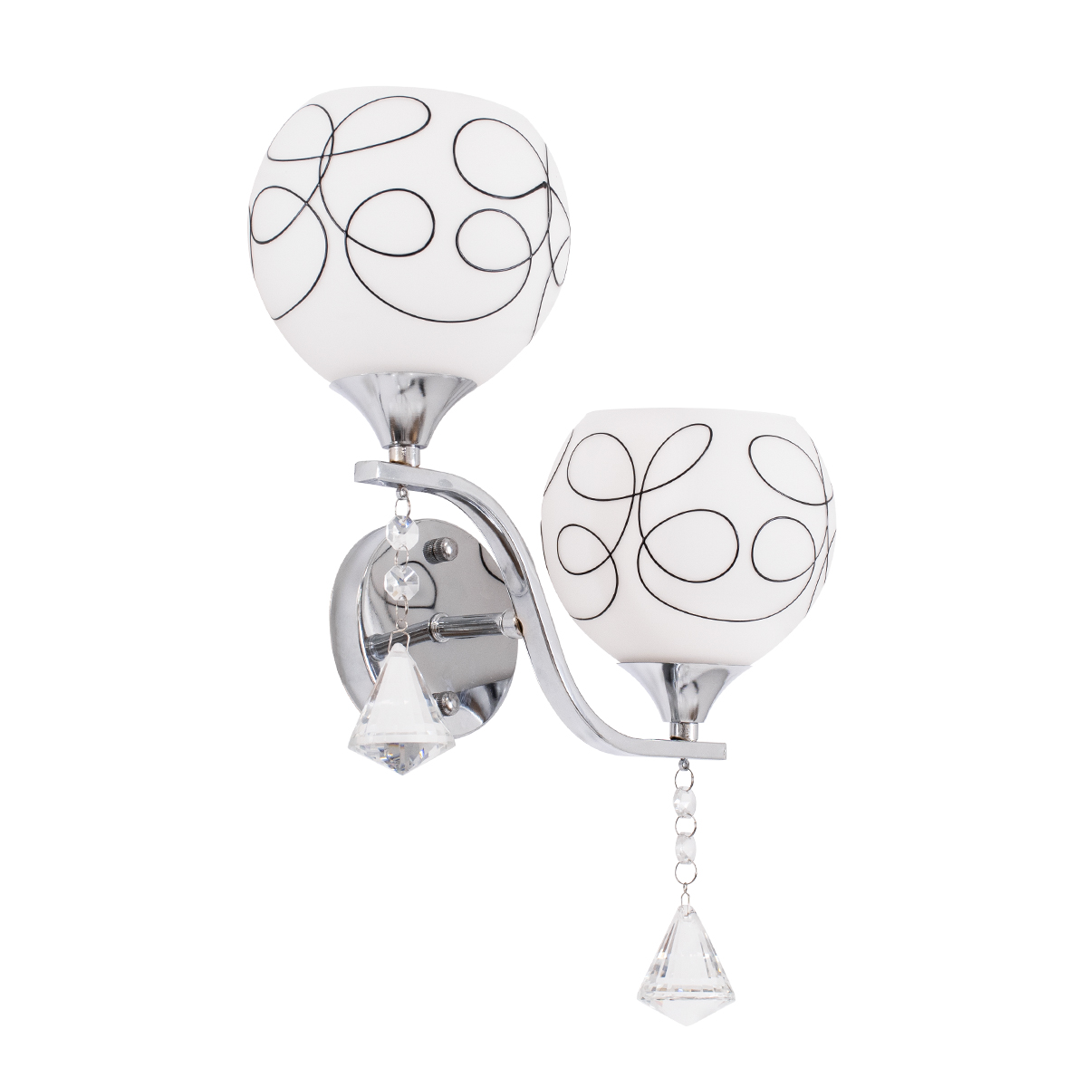 GLOBOSTAR® CANTER 00635 Μοντέρνο Φωτιστικό Τοίχου - Απλίκα με Ντουί 2 x E27 AC 220-240V IP20 - Ασημί & Λευκό - Μ32 x Π15 x Υ40cm