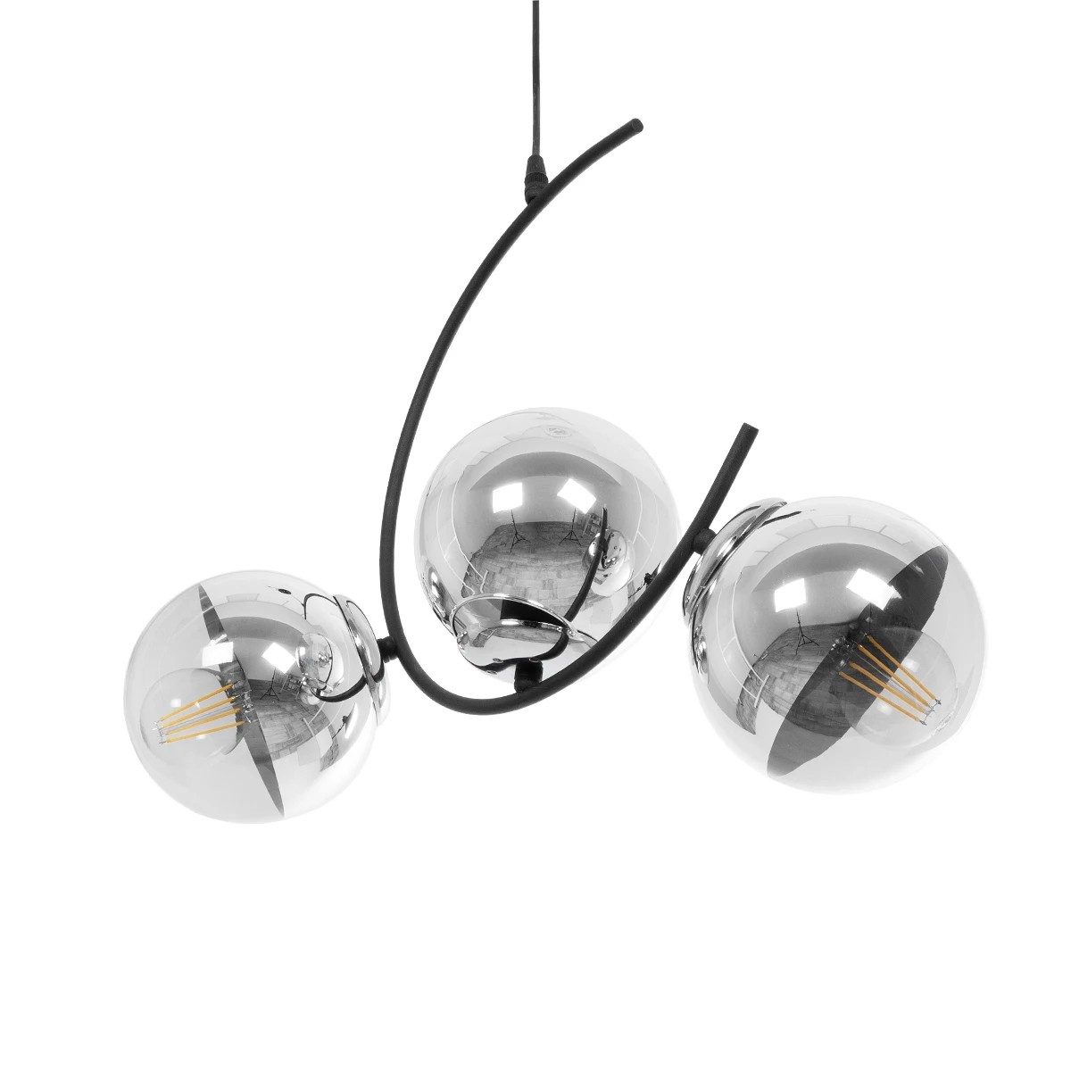 GLOBOSTAR® CITY 202-0041 Μοντέρνο Κρεμαστό Φωτιστικό Οροφής με Ντουί 3 x E27 AC 220-240V IP20 - Μαύρο & Ασημί - Μ60 x Π35 x Υ50cm