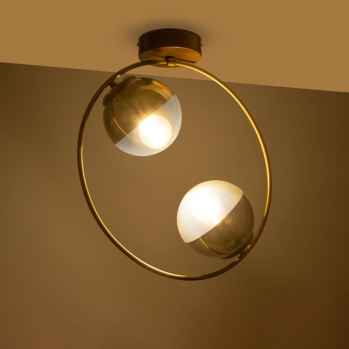 GLOBOSTAR® CITY 202-0046 Μοντέρνο Φωτιστικό Οροφής με Ντουί 2 x E27 AC 220-240V IP20 - Διάφανο & Χρυσό - Μ45 x Π15 x Υ55cm